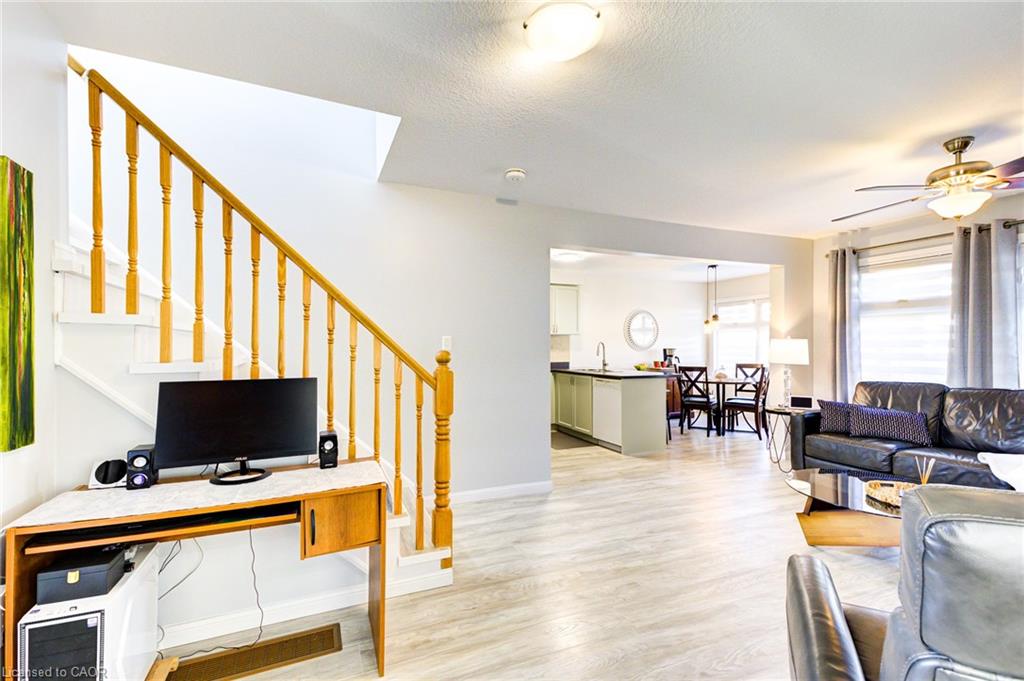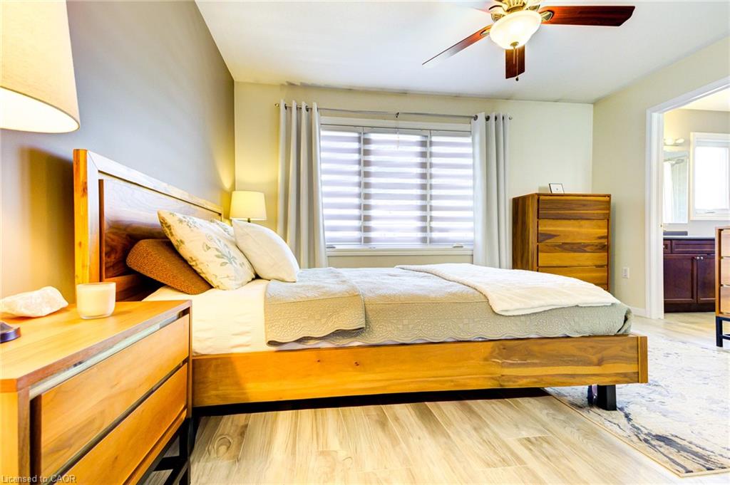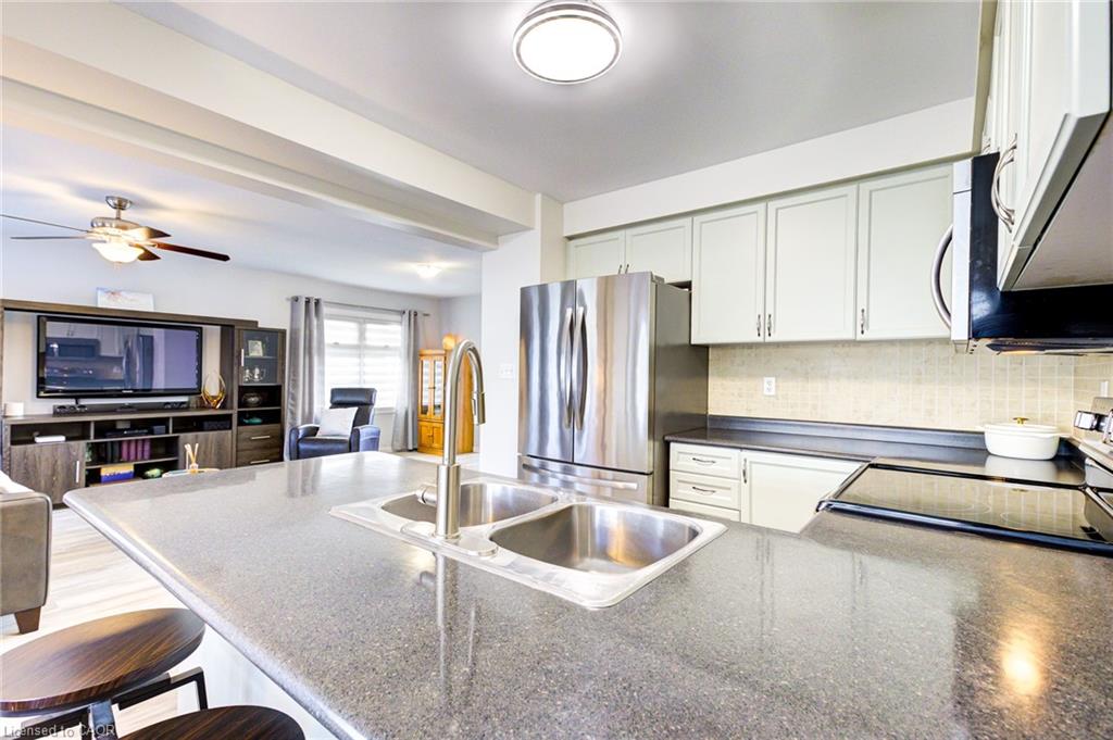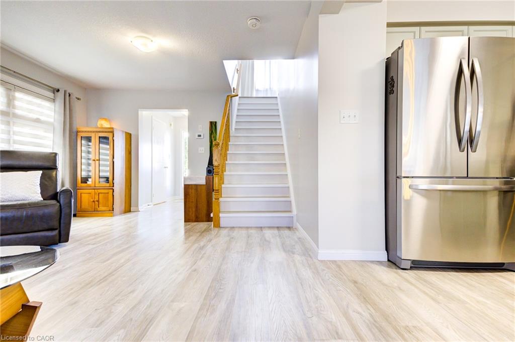 Located in one of Cambridge’s most sought after neighborhoods, this fabulous; fully finished semi-detach is perfect for the first time buyer and growing family alike. Bright and airy, you’ll enjoying entertaining friends and family in the large open living room that overlooks the kitchen with breakfast bar and dining area. Upstairs you’ll find three spacious bedrooms and two baths, with the primary bedroom boasting a 4pcs en-suite and walk-in closet. Needing extra living space? The fully finished lower level offers a large cozy rec room, office/games room and a laundry area with plenty of storage. Enjoy morning coffee or an evening cocktail on the stone patio overlooking the fully fenced yard with shed and gazebo. Freshly painted, carpet free and offering over 1800sqft of finished living space; this beautiful home also features 6 appliances, roof (2019), all main + second floor windows (2020), c/air, custom blinds and newer flooring through-out. Situated in a family friendly neighborhood only minutes to schools, shopping, parks, places of worship, nature trails and HWY 401. Be sure to add 59 Garth Massey Drive to your must see list today.
