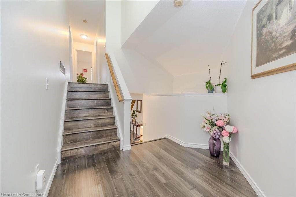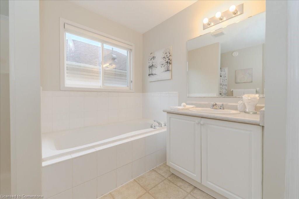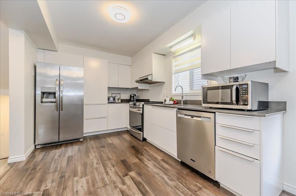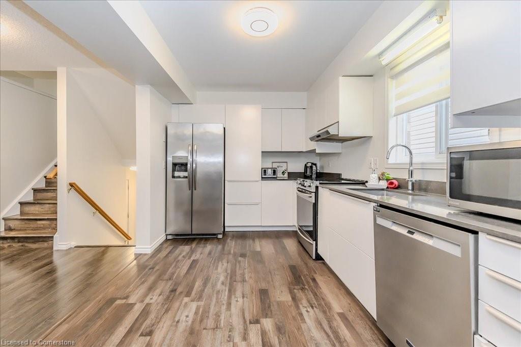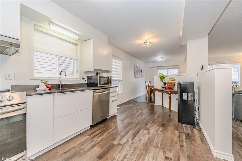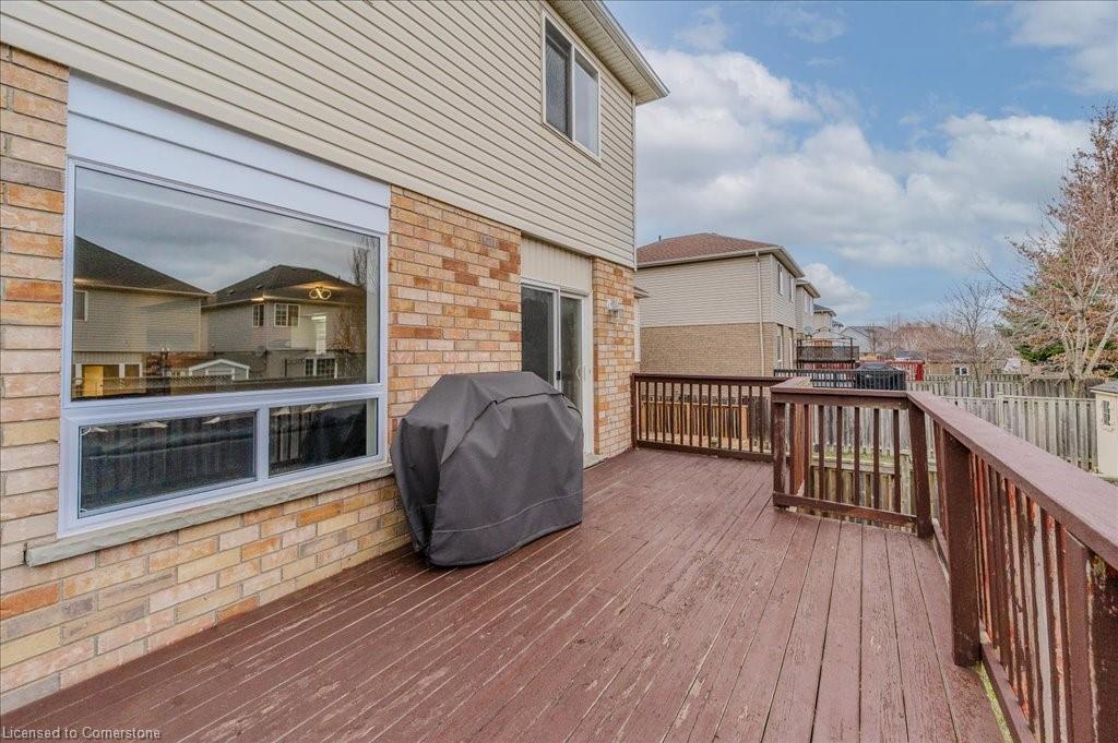 Located in a desirable Hespeler neighborhood with four bedrooms above grade plus a finished basement! A stunning detached with a double-wide driveway and 1.5 car garage that offers all the extra space families are looking for. The main level has an updated kitchen in 2023 with soft-close drawers and cabinets, quartz counters, and stainless steel appliances. There’s also a large living room, dining area, plus glass sliders to a good-sized deck and fenced yard. The second level is split with a front wing that has the primary bedroom with bright windows, double closets, laminate flooring, and a private ensuite that has a soaker tub and walk-in shower. The rear wing has three additional bedrooms plus a four-piece bathroom. This is a great layout up here as all the bedrooms are large and there is tremendous privacy to the primary. The basement is finished with 9 ft ceilings, a fifth bedroom, a fourth bathroom, a large rec room, and laundry room. This elevation was considered a lookout lot so there are three large windows downstairs. The home is just across the street from the pathway to Woodland Park P.S, minutes from Hespeler Memorial Arena and easy access to the 401! Roof shingles (2023), furnace (2020), water softener (2023), some windows (2024).