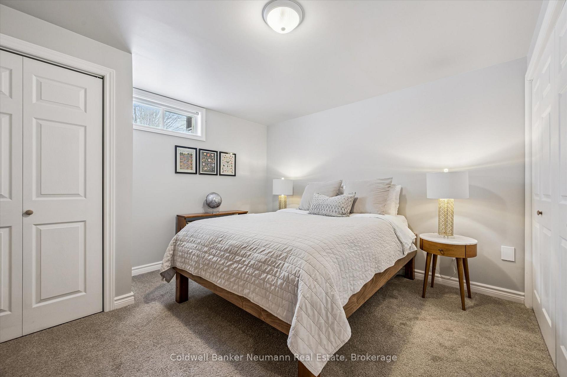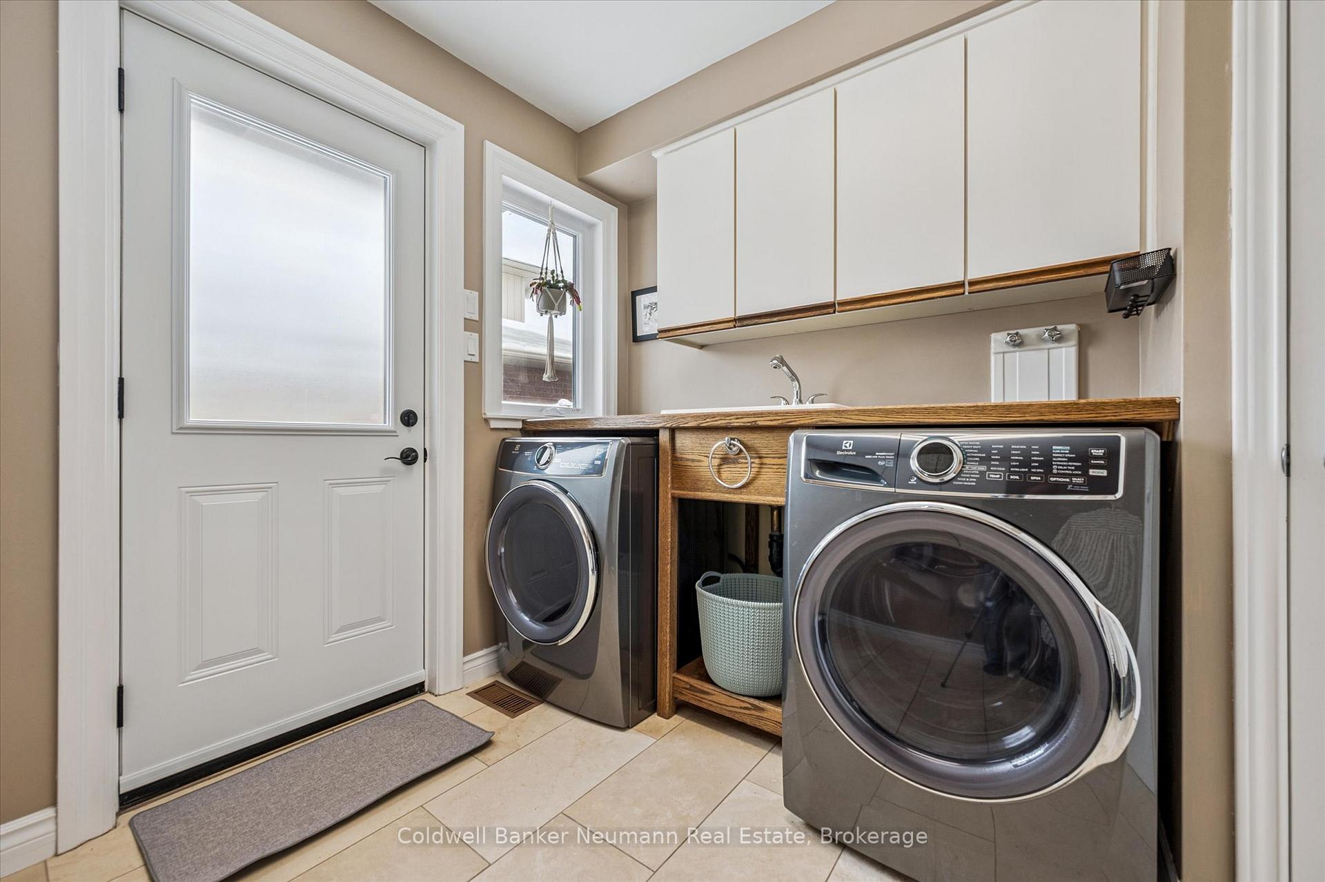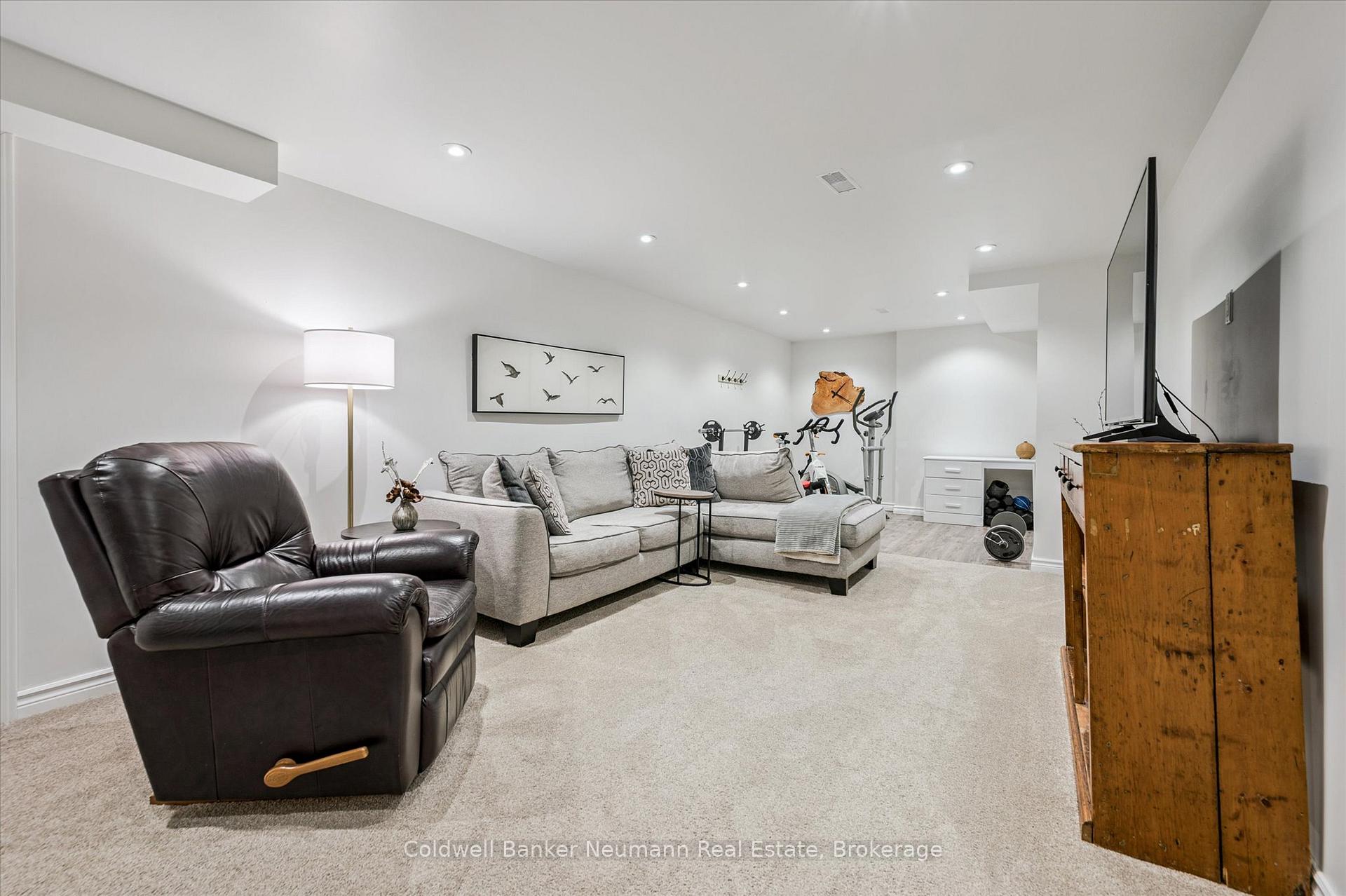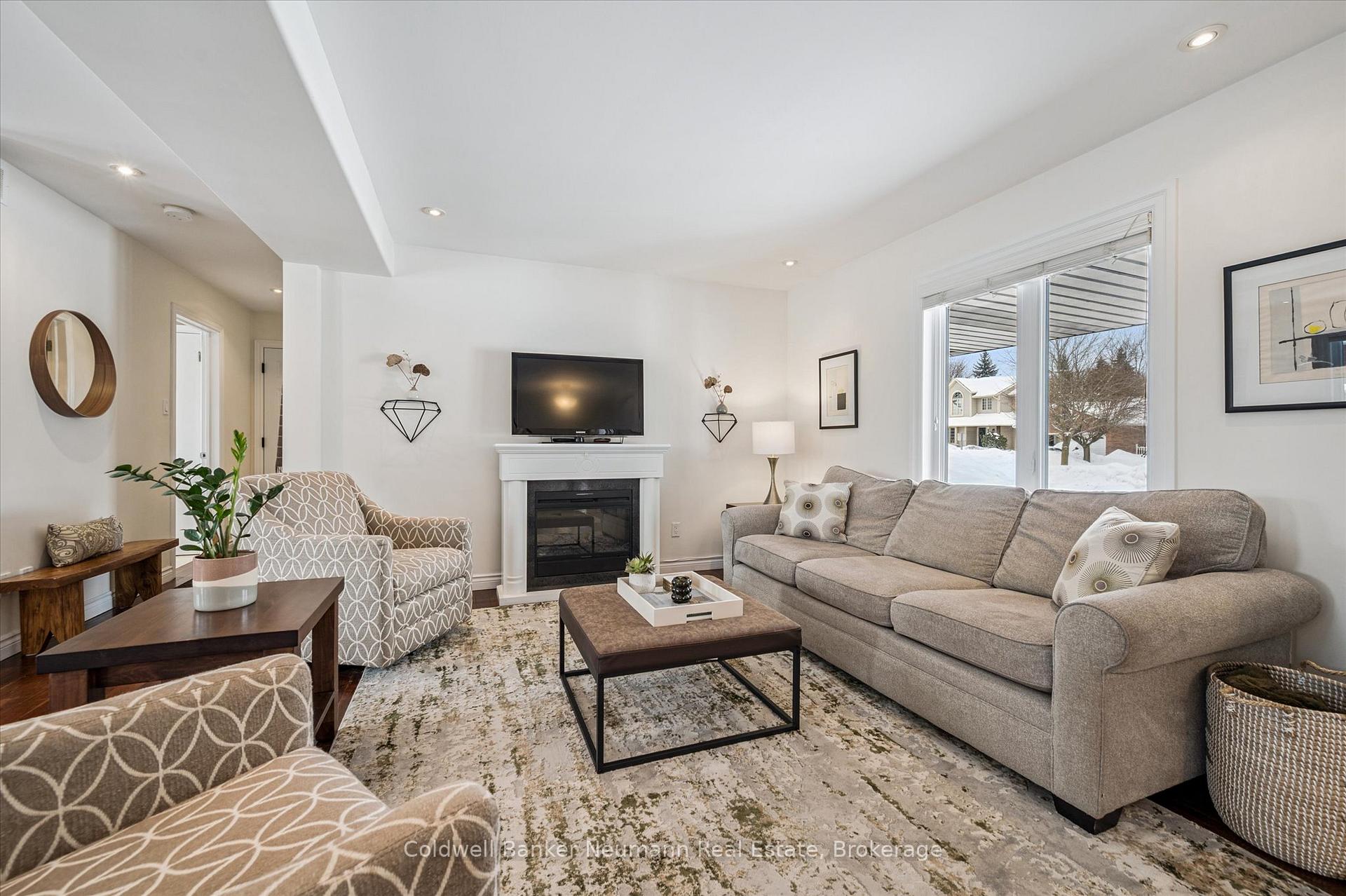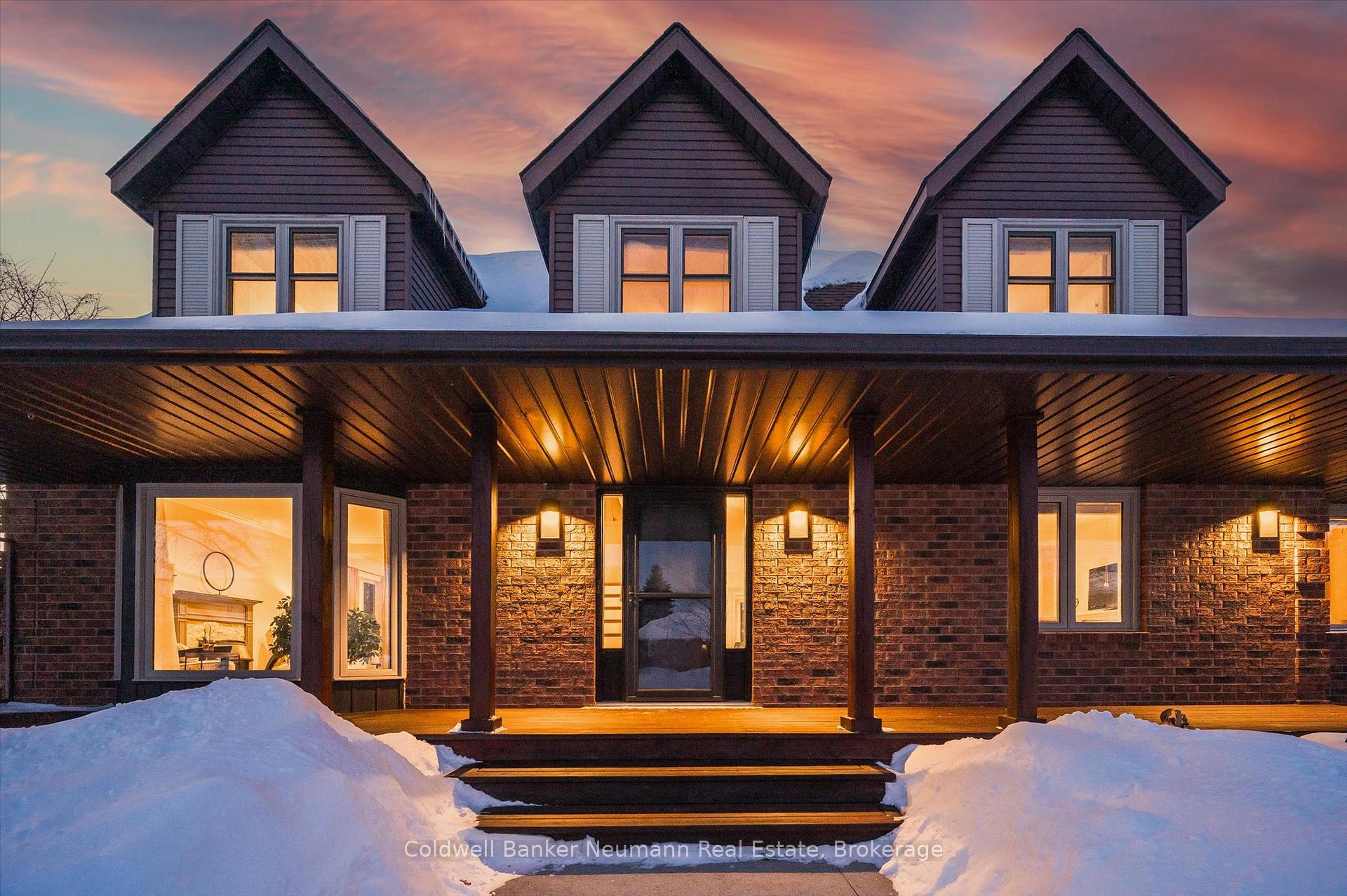 Welcome to this meticulously maintained two-storey home on a fully fenced corner lot in beautiful Elora. Offering approximately 3,700 sq ft of finished living space across three levels, this charming brick home with Cape Cod dormers and a covered front porch is ideal for families and professionals seeking space and convenience. A bright foyer opens to a thoughtfully designed main floor featuring a family room with a gas fireplace and large windows, a formal dining room with direct kitchen access, and a well-appointed kitchen with stainless steel appliances, granite countertops, and a generous peninsula with breakfast bar. A bay-window breakfast nook overlooks the backyard, while a front living room offers views of the front yard and front porch. The functional mudroom leading to the double car garage includes laundry and a three-piece bath.Upstairs there are three bedrooms, including a spacious primary suite with a 4-piece ensuite. Two additional bedrooms share a beautifully finished 4-piece bath, plus a charming reading nook at the top of the stairs.The partially finished lower level adds a family room, gym, and fourth bedroom. Enjoy the fully fenced backyard with direct access from the kitchen-perfect for entertaining. With parking for six (4 driveway, 2 garage) and a prime location beside Drimmie Park, in a sought-after school district and minutes to downtown Elora, this home offers outstanding lifestyle appeal with easy commuter access.