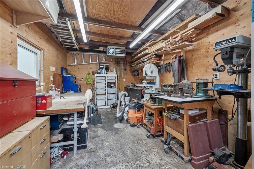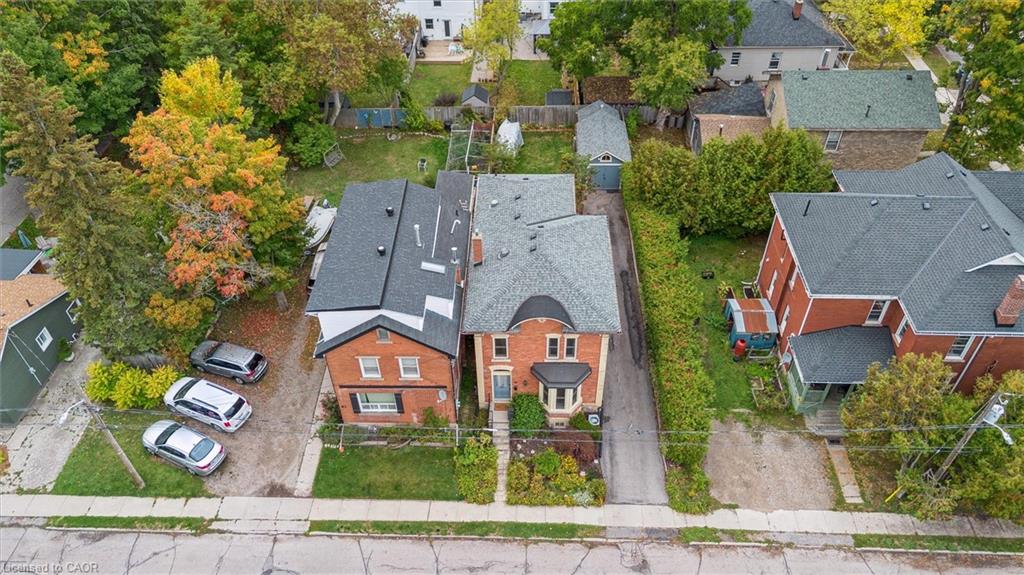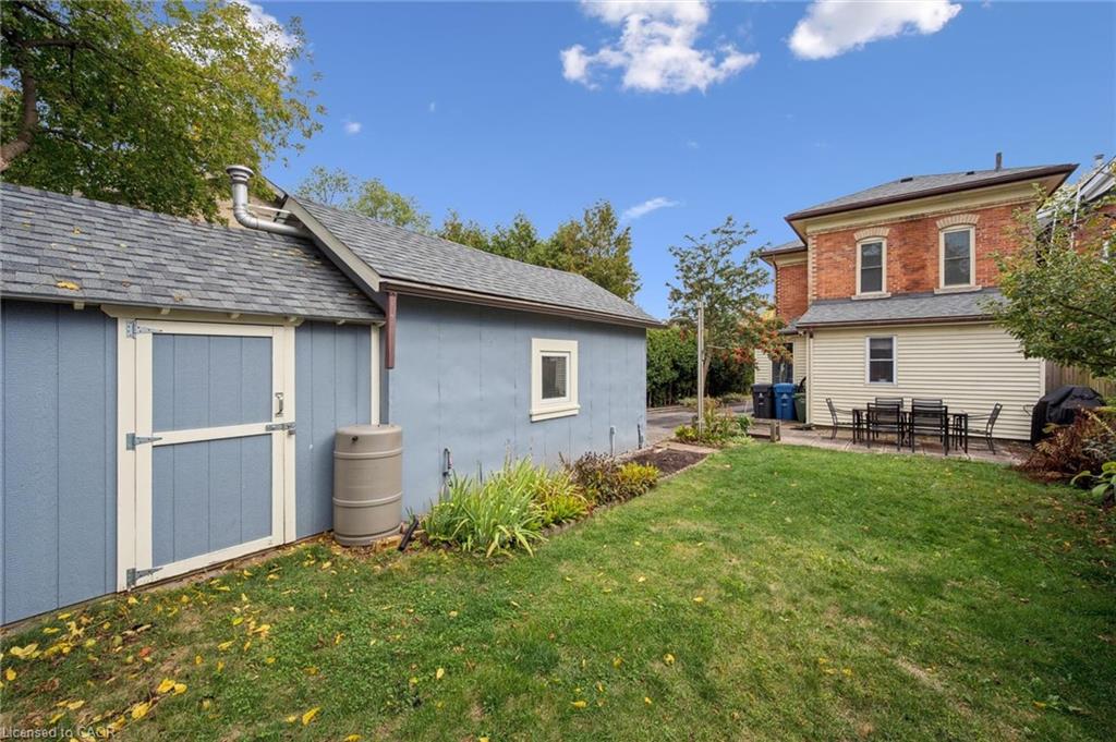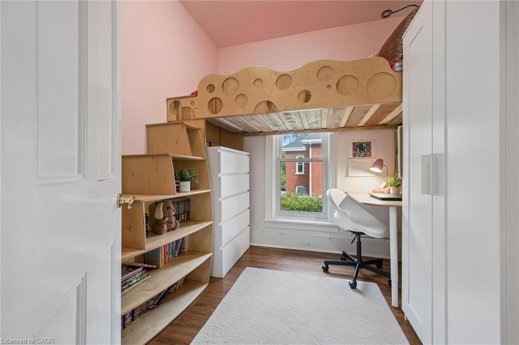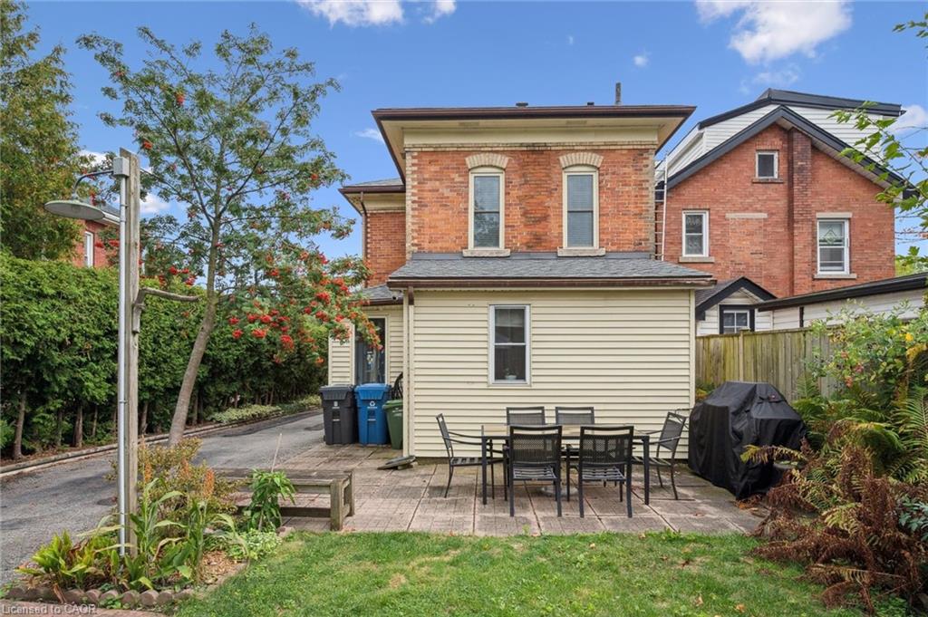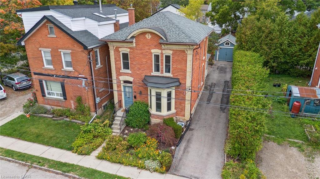Welcome to 59 Kent Street, where timeless character meets thoughtful updates in one of Guelphs most vibrant neighbourhoods! This 4-bedroom home is brimming with historic charm, showcasing 9′ ceilings, original plaster mouldings, and a formal staircase with a carved cherry handrail. Beyond its curb appeal, the home blends classic architecture with the comfort and efficiency of modern upgrades.The bright main floor features a stylish kitchen with a large island, chef-grade gas stove, microwave, and dishwasher (2023) perfect for both everyday living and entertaining. Upstairs, four bedrooms include a unique custom-built loft bed with bookshelves and wardrobe (2021), and the family bathroom features an updated vanity and high-efficiency toilet (2020).The partially finished basement (2023) adds flexible space with fresh paint, flooring, millwork, and lighting – ideal as a family room, office, or kids play zone. The side porch (2022) doubles as a warm and practical mudroom, while the private backyard offers a garden shed (2021) and plenty of space to garden or relax. For hobbyists and tinkerers, the insulated garage/workshop is a true standout, featuring a natural gas furnace (2022), 60-amp panel ready for an EV charger, and year-round functionality. Notable updates include a newer roof and water softener, adding peace of mind to this already well-maintained home. With its rare blend of character details, practical updates, and a sought-after location just steps from parks, trails, and downtown shops and restaurants, 59 Kent Street is more than a home – it’s a lifestyle opportunity in one of the city’s most desirable pockets.