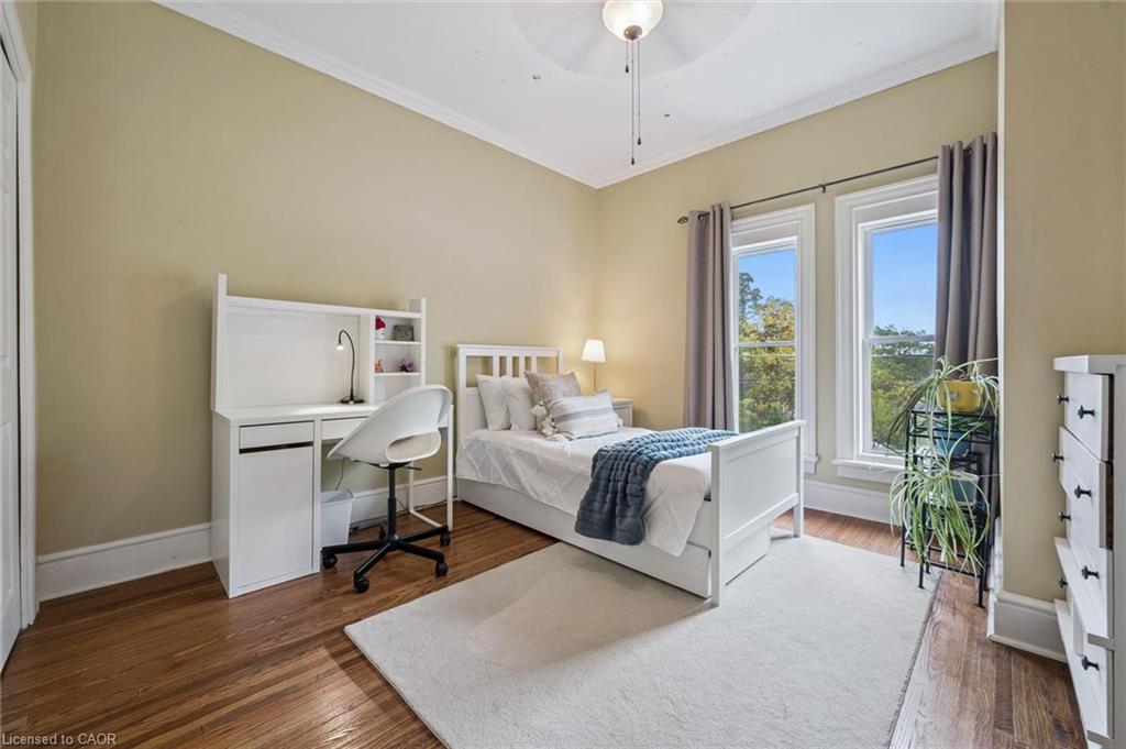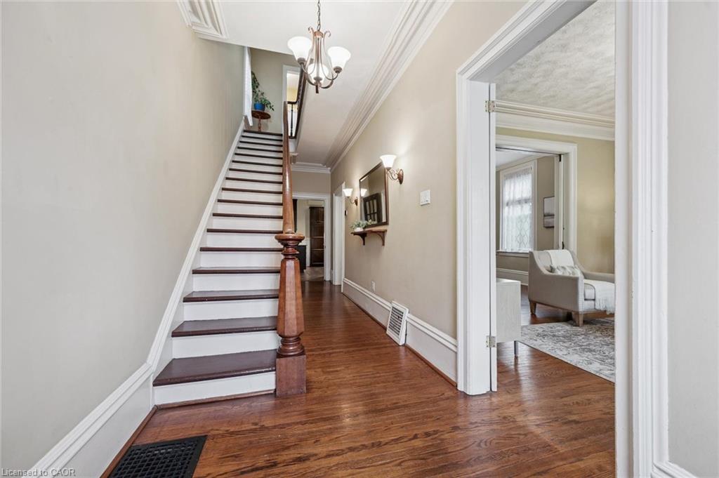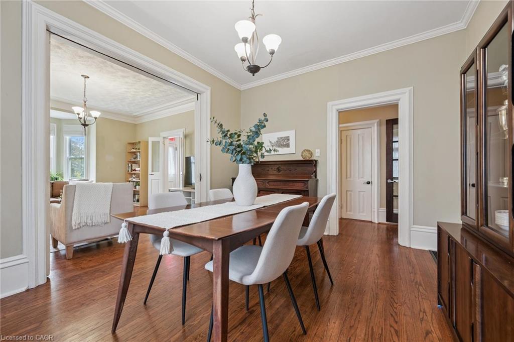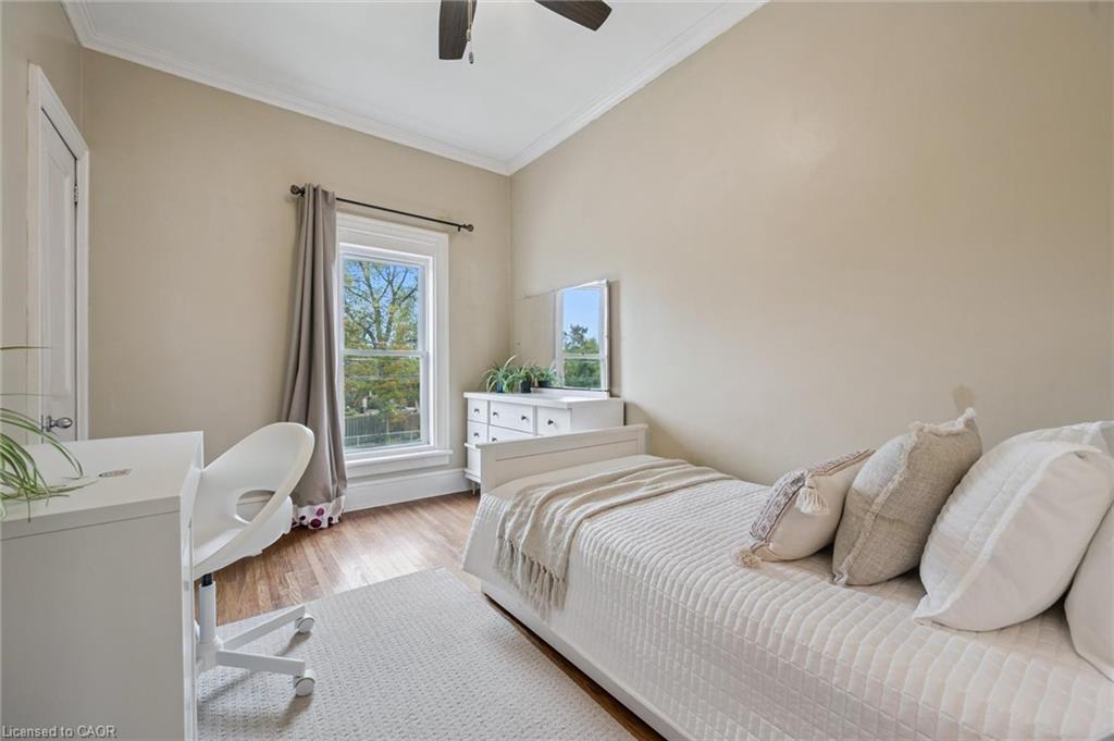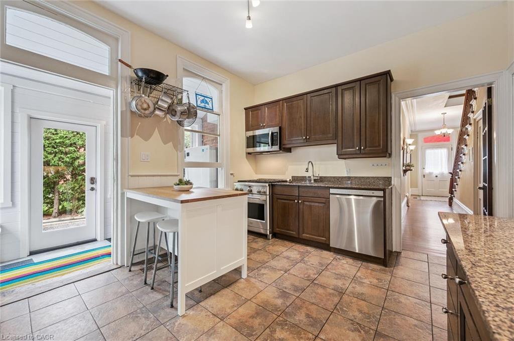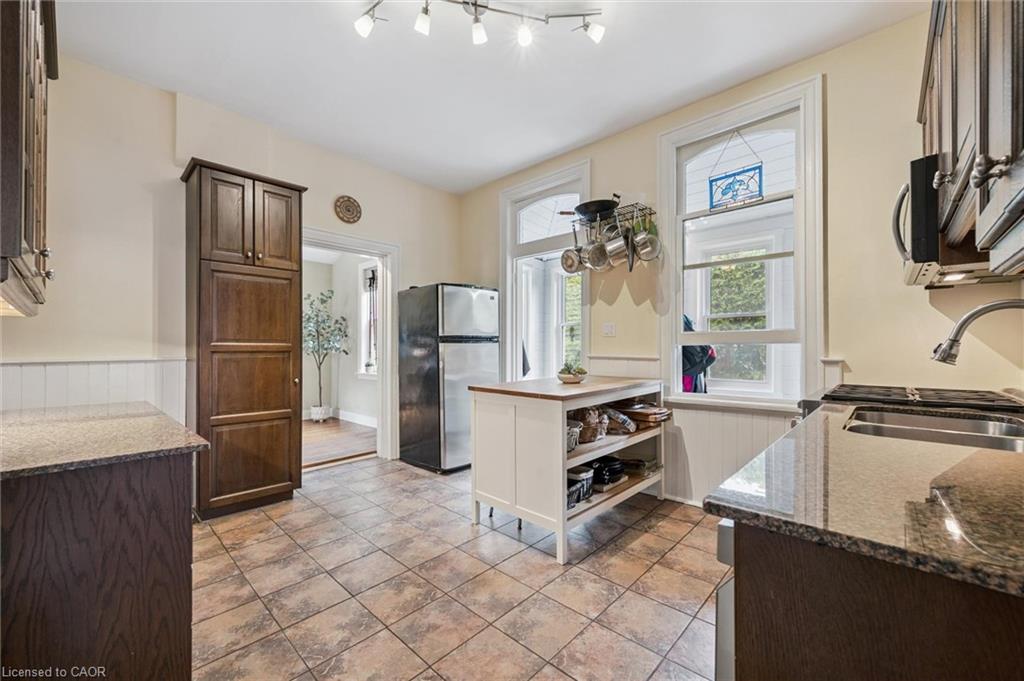 Welcome to 59 Kent Street, where timeless character meets thoughtful updates in one of Guelphs most vibrant neighbourhoods! This 4-bedroom home is brimming with historic charm, showcasing 9′ ceilings, original plaster mouldings, and a formal staircase with a carved cherry handrail. Beyond its curb appeal, the home blends classic architecture with the comfort and efficiency of modern upgrades.The bright main floor features a stylish kitchen with a large island, chef-grade gas stove, microwave, and dishwasher (2023) perfect for both everyday living and entertaining. Upstairs, four bedrooms include a unique custom-built loft bed with bookshelves and wardrobe (2021), and the family bathroom features an updated vanity and high-efficiency toilet (2020).The partially finished basement (2023) adds flexible space with fresh paint, flooring, millwork, and lighting – ideal as a family room, office, or kids play zone. The side porch (2022) doubles as a warm and practical mudroom, while the private backyard offers a garden shed (2021) and plenty of space to garden or relax. For hobbyists and tinkerers, the insulated garage/workshop is a true standout, featuring a natural gas furnace (2022), 60-amp panel ready for an EV charger, and year-round functionality. Notable updates include a newer roof and water softener, adding peace of mind to this already well-maintained home. With its rare blend of character details, practical updates, and a sought-after location just steps from parks, trails, and downtown shops and restaurants, 59 Kent Street is more than a home – it’s a lifestyle opportunity in one of the city’s most desirable pockets.