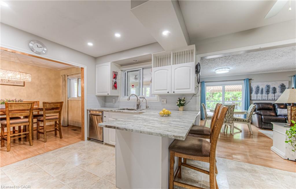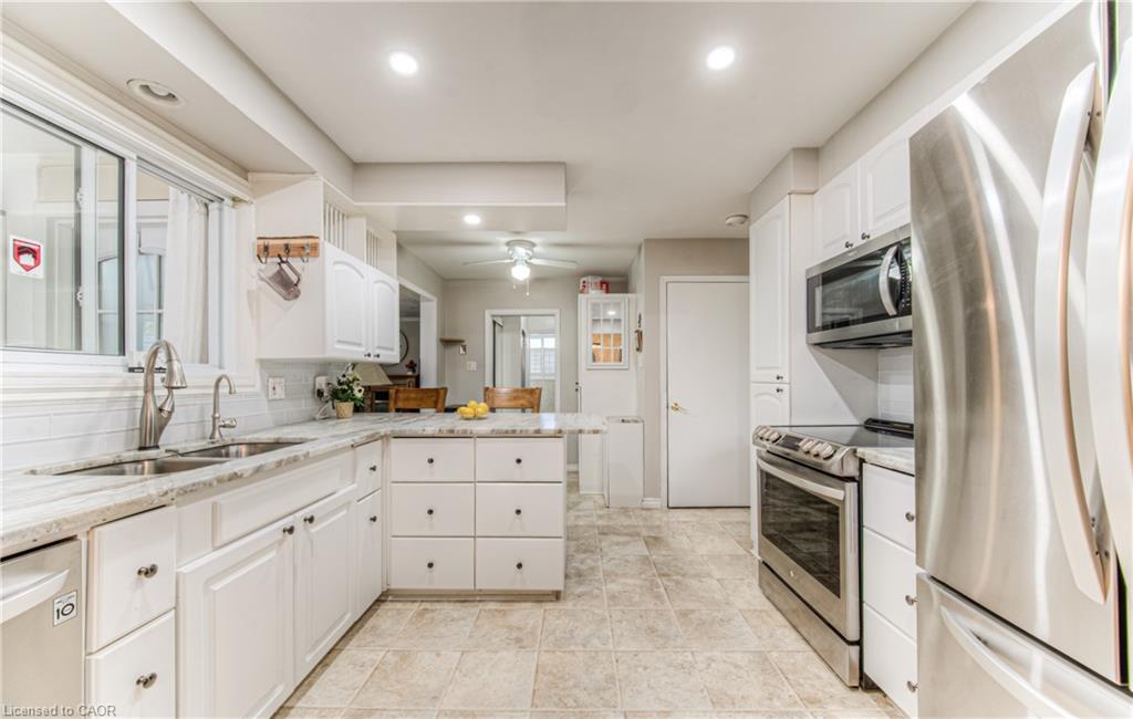 LIVE ON MANCHESTER. One of the most sought after streets in neighbourhood. Welcome to this spacious 4-bedroom, 3-bathroom family home in the heart of Kitchener, ON! Perfectly situated close to schools, parks, shopping, and more, this well-maintained property offers exceptional space and versatility. The bright main level features a stunning all white kitchen, eat-in kitchen with stainless steel appliances, marbled countertops for food prep and ample amounts of cabinet space for storage. two inviting living areas—one with a cozy gas fireplace—plus a generous sunroom complete with a Murphy bed, perfect for guests. Enjoy outdoor living with a deck and private backyard. Parking for five vehicles, including an attached garage, adds everyday convenience. Upstairs, you’ll find all four bedrooms and a full 4-piece bathroom. The finished basement offers even more living space with a rec room, 3-piece bathroom, and ample storage. Don’t miss this incredible opportunity to own a move-in-ready home in a family-friendly neighborhood!