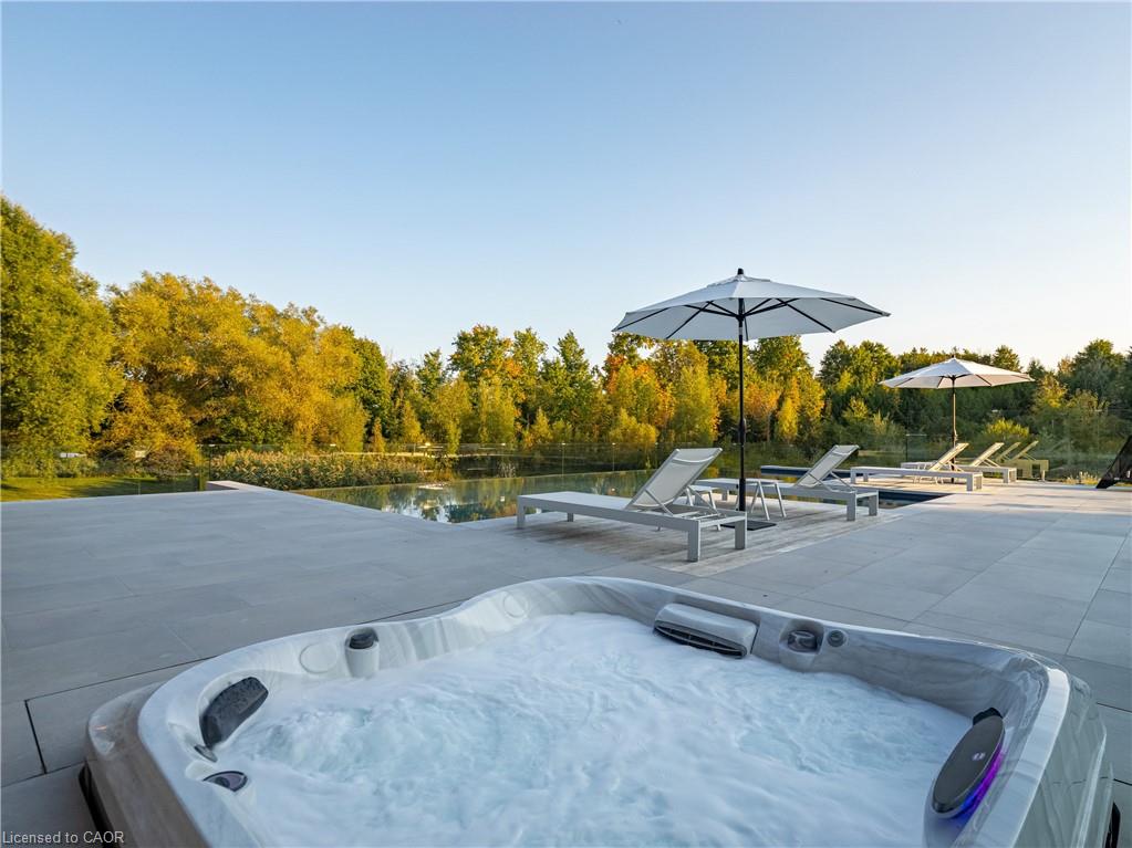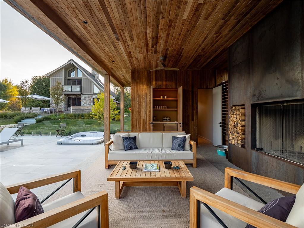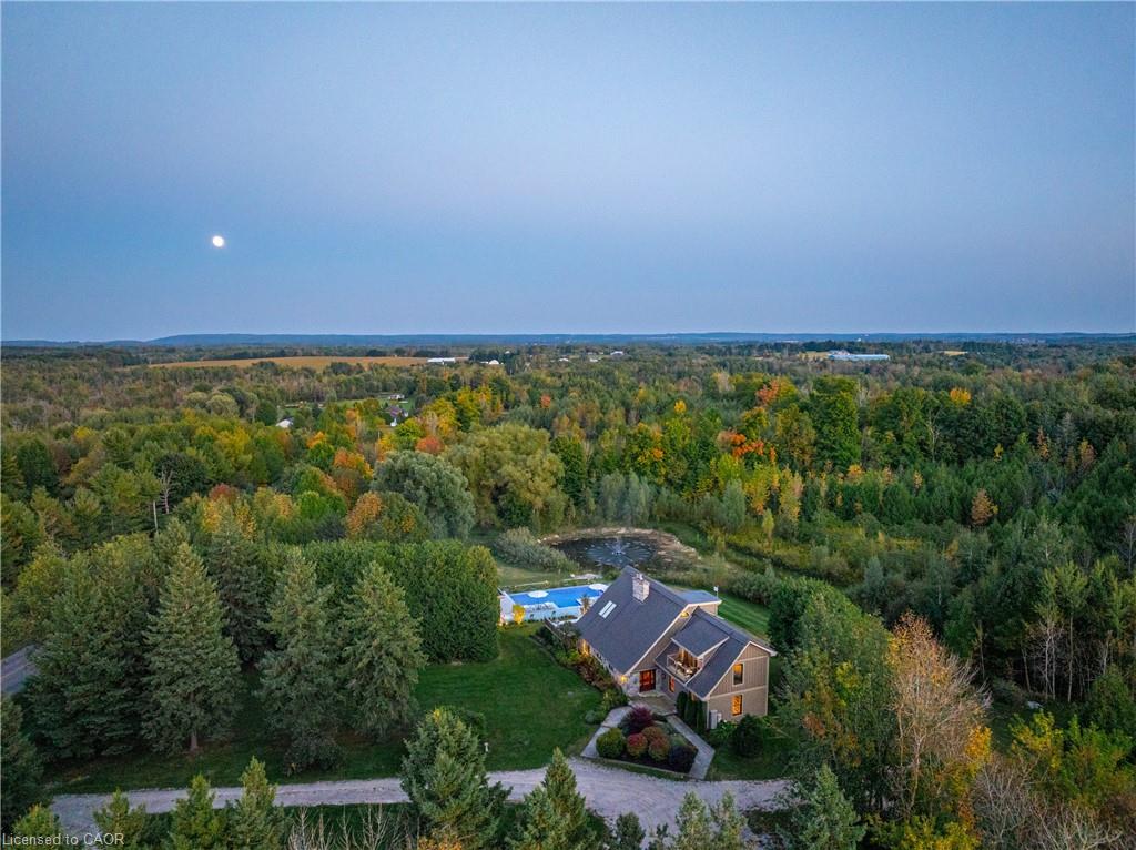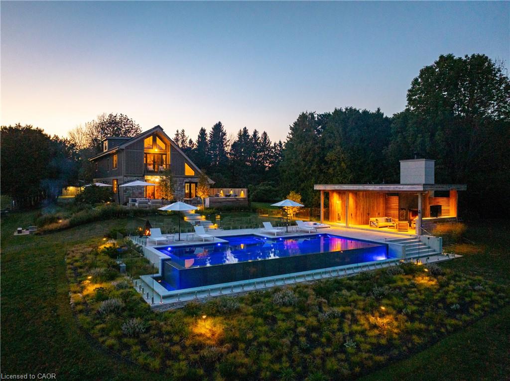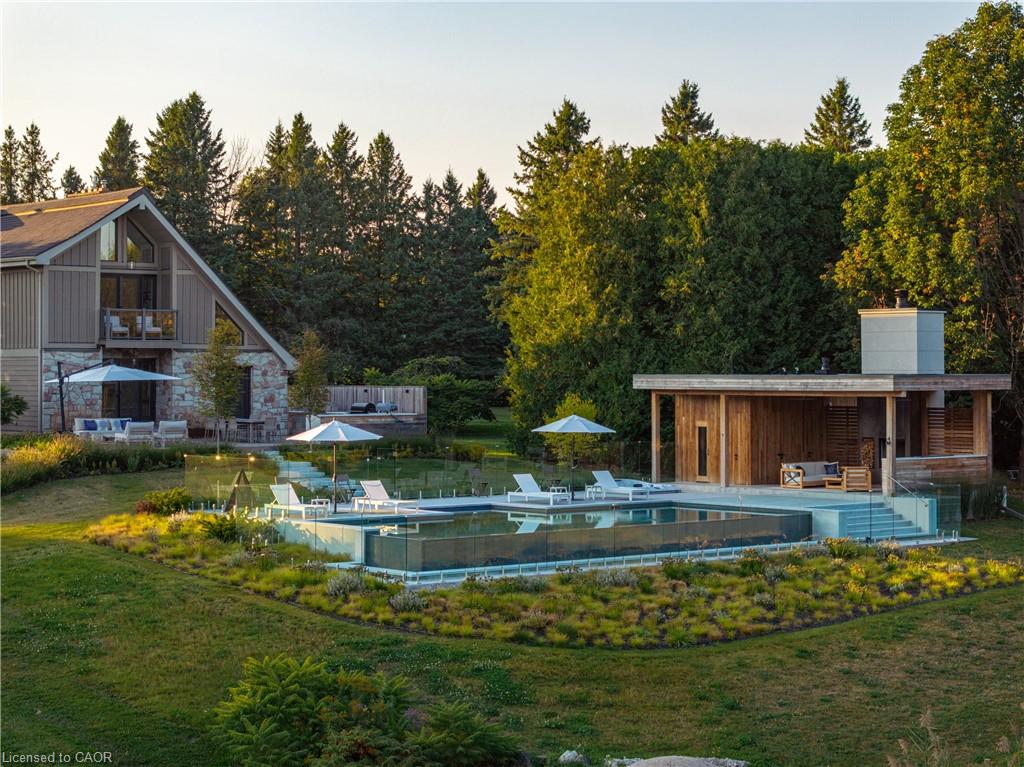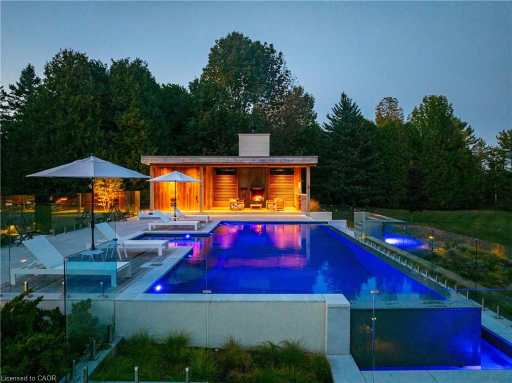 A world of timeless sophistication and unparalleled exclusivity unfolds. Nestled on 18 secluded acres, this estate boasts over 5,450 square feet of exquisitely designed living space, set against the backdrop of a mature forest. Every step onto this estate unveils an extraordinary lifestyle. The moment you arrive, panoramic views of the water, Miami-style modern landscaped pool area, and woodland greet you, centering around your private pond. Meandering trails weave through the untouched serenity of nature, offering an idyllic escape for exploration and tranquility. Crafted with a superior level of artistry and bespoke finishes, this residence combines timeless design with modern functionality. The grand primary suite serves as a personal retreat with its sitting room, a private balcony, and views that inspire morning reflection or evening serenity. The heart of the home is its gourmet kitchen, complemented by four well-appointed bedrooms & five bathrooms. Invision, unwinding by a stunning woodburning fireplace, beautifully set against a dramatic stone wall. Whether it’s the soft crackle of the fire or the serene views of your outdoor haven, every moment here invites you to relax, recharge, & revel in the luxury of your surroundings. This estate is a true entertainer’s dream. Seamless indoor and outdoor venues blend into the meticulously landscaped grounds, with multiple lounging areas, outdoor kitchen, 2520 sqft of reflective glassed-in pool area with an infinity edge saltwater pool. An elegant covered cabana provides a wood-burning fireplace, pop-up TV, sauna, wet bar, changing room, two-piece bathroom, and an outdoor shower. The rejuvenating hot tub integrates into your private resort-like haven. Enjoy exclusive amenities including private trails, fishing, & skating, all designed havens for discerning nature lovers seeking the pinnacle of luxury living. Conveniently located 1 hr from Toronto, minutes to TPC Toronto at Osprey Valley golf course & Caledon Ski Club.