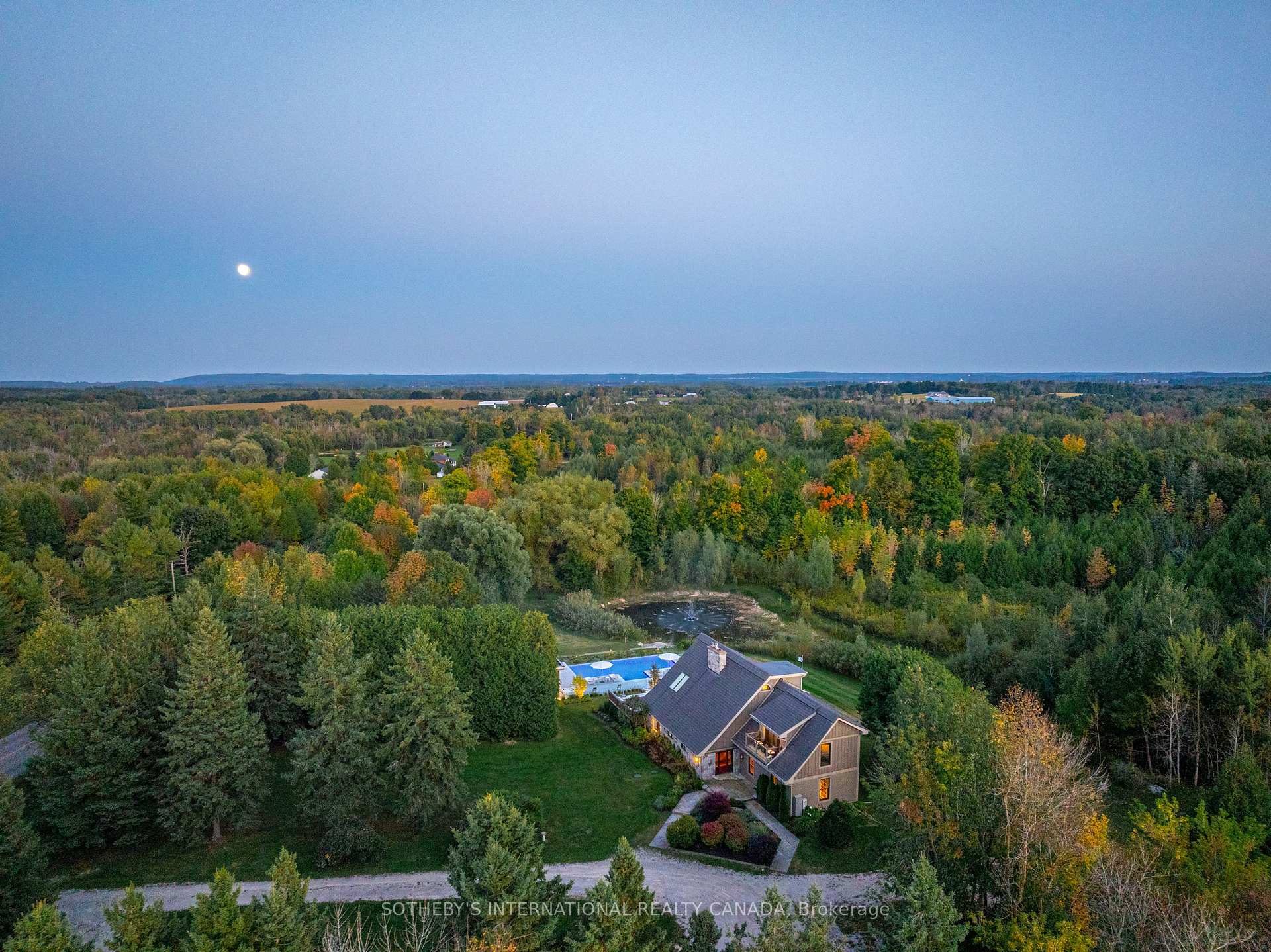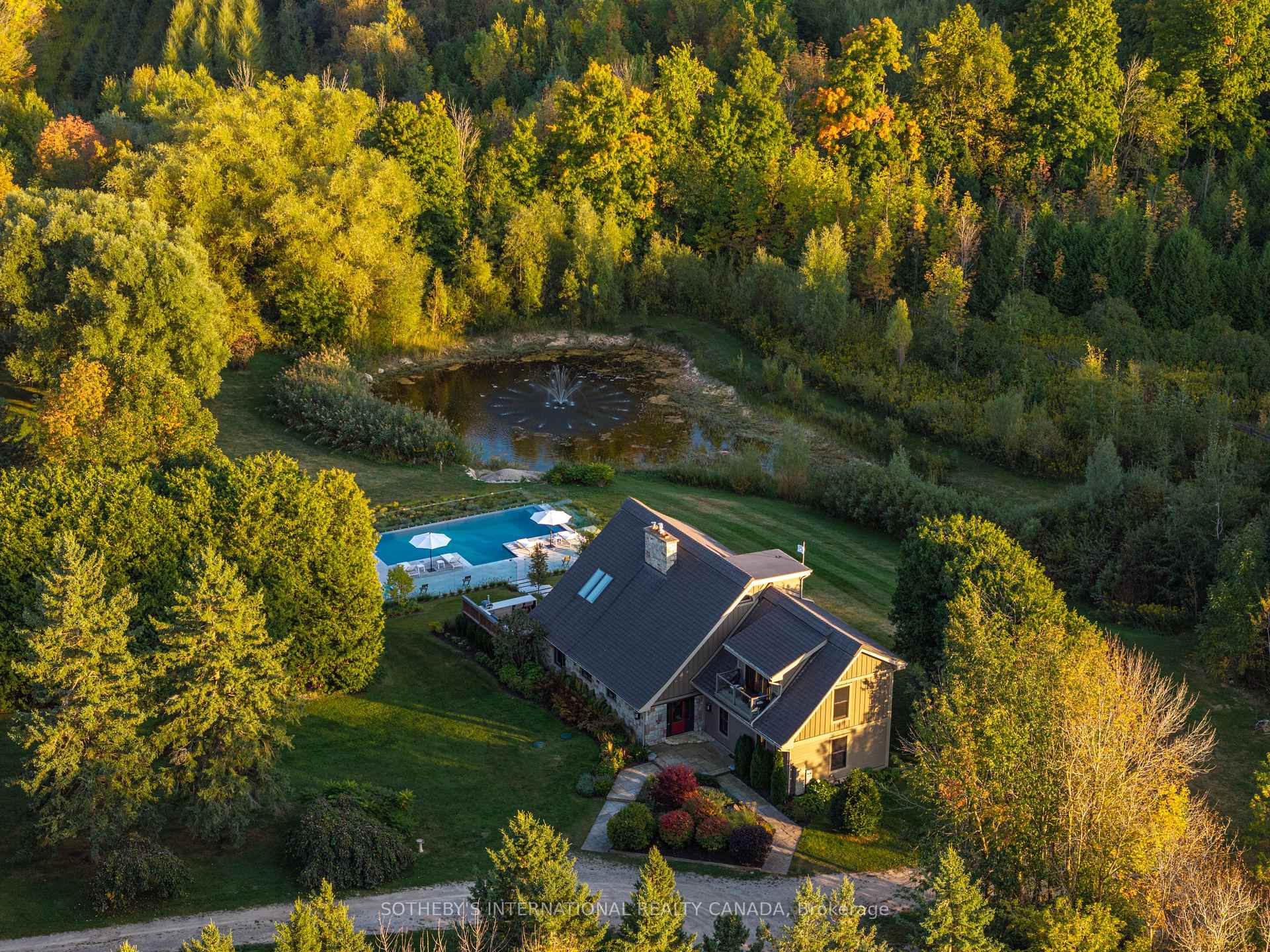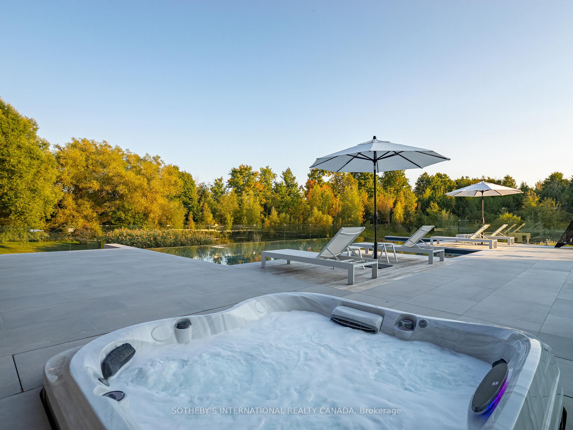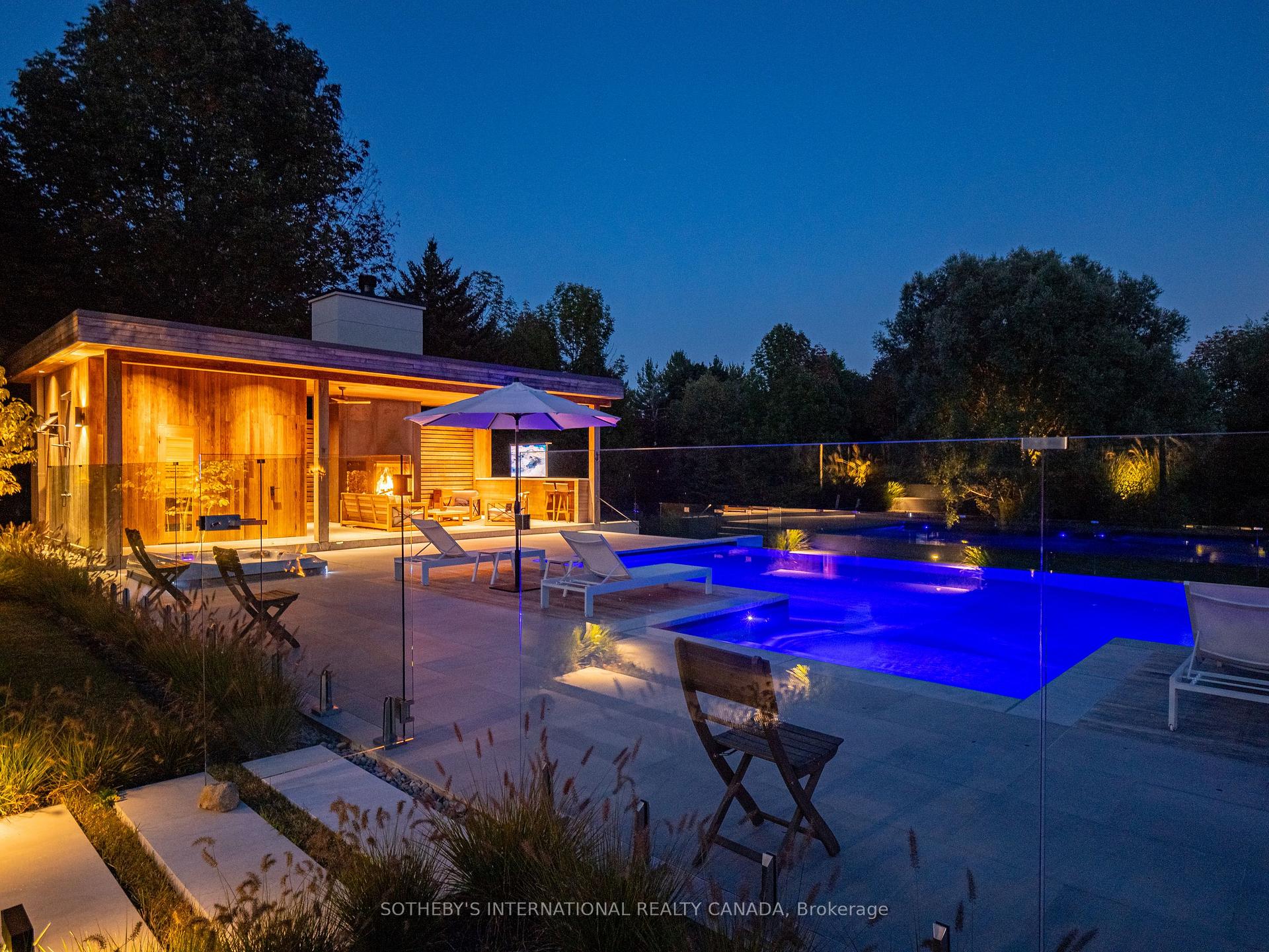 A world of timeless sophistication and unparalleled exclusivity unfolds. Nestled on approx. 20 acres, this estate boasts over 5,450 sqft of exquisitely designed living space, set against the backdrop of a mature forest. Every step onto this estate unveils an extraordinary lifestyle. The moment you arrive, panoramic views of the water, modern crafted outdoor living space, pool area & woodland greet you, centering around your private pond. Trails weaving through the untouched serenity of nature, offering an idyllic escape for exploration & tranquility. Crafted with superior level of artistry, Post-and-beam construction, soaring cathedral ceilings & rich thick plank flooring throughout the home create warmth. The grand primary suite serves as a personal retreat with a sitting room, yoga studio, private balcony with enriched views that inspire morning reflection or evening serenity. The heart of the home is its gourmet kitchen, complemented by four well-appointed bedrooms & four + one bathrooms. Invision, unwinding by a stunning wood-burning fireplace, beautifully set against a dramatic stone wall. Whether it’s the soft crackle of the fire or the serene views of your outdoor haven, every moment here invites you to relax, recharge, & revel in the luxury of your surroundings. This estate is a true entertainer’s dream. Seamless indoor & outdoor venues, multiple lounging areas, outdoor kitchen, reflective glassed-in pool area, infinity edge saltwater pool, elegant thermal ash-clad cabana includes a wood-burning fireplace, pop-up TV, sauna, wet bar, change room, two-piece bathroom & outdoor shower, meticulously designed by Adrian Gale. The rejuvenating hot tub integrates into your private resort-like haven, Enjoy exclusive amenities including private trails, fishing, skating, all designed havens for discerning nature lovers seeking the pinnacle of luxury living. Conveniently located 1 hr from Toronto, minutes to TPC Toronto at Osprey Valley golf course & Caledon Ski Club