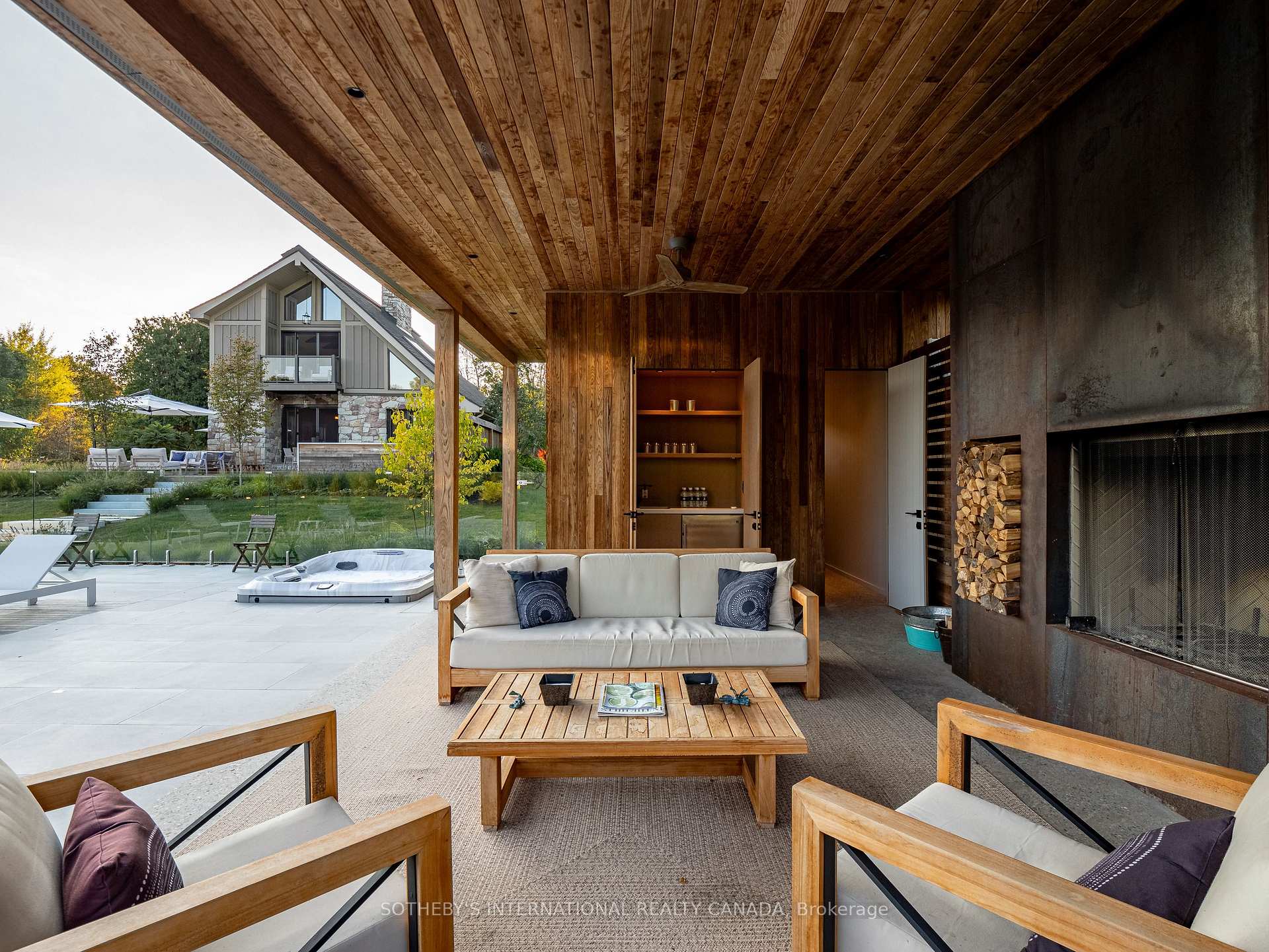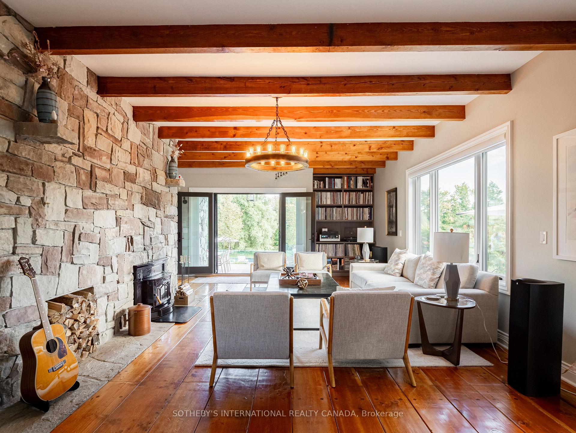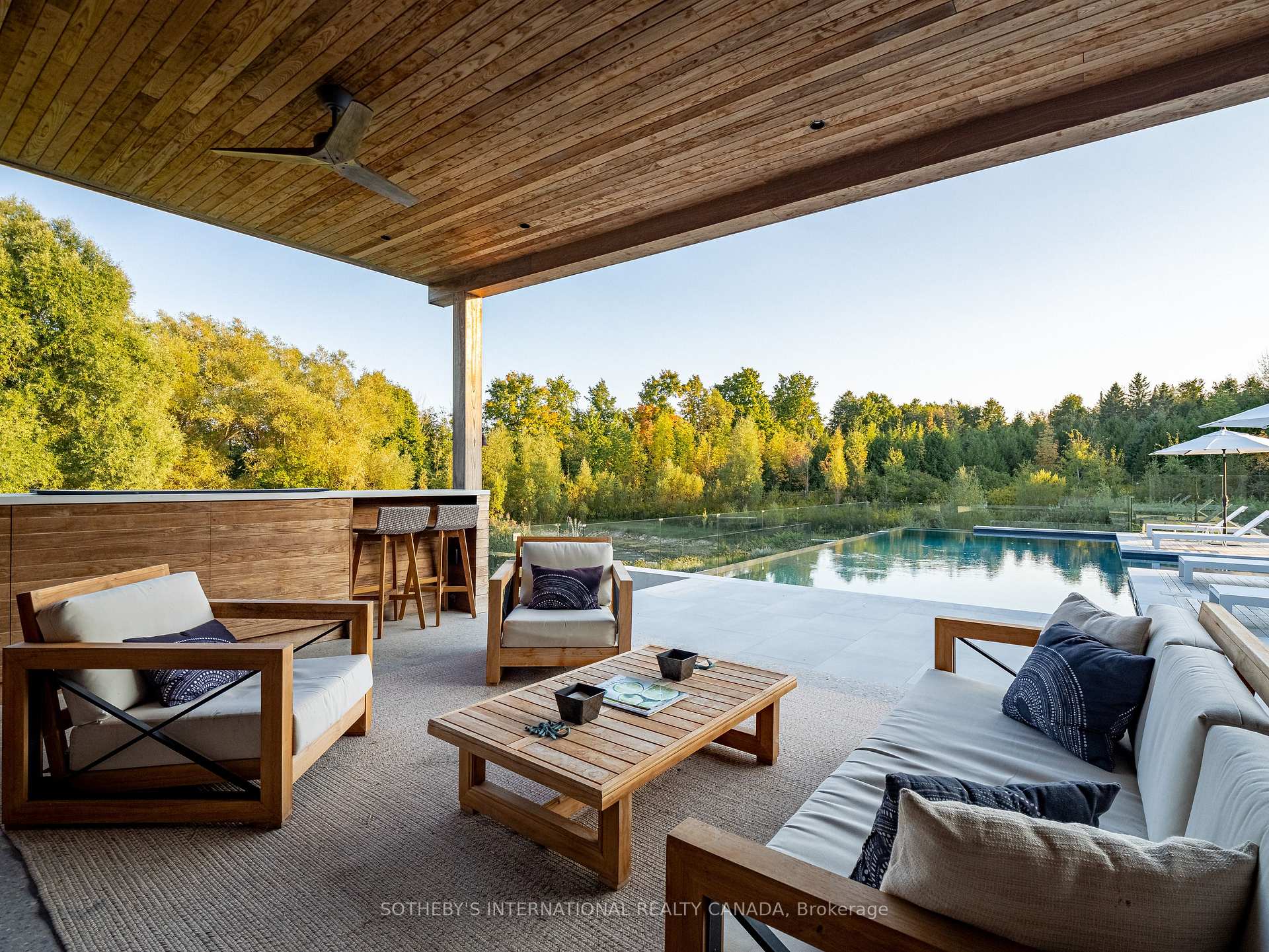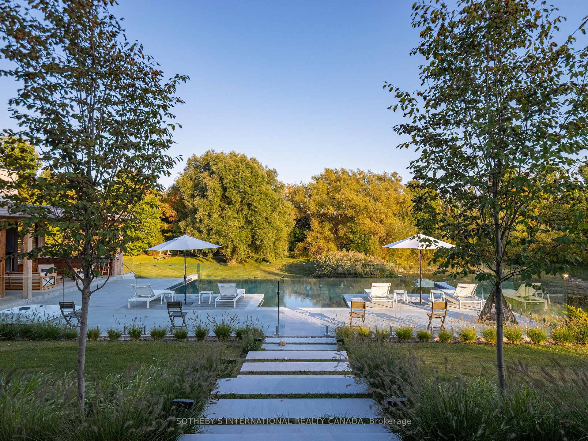 A world of timeless sophistication and unparalleled exclusivity unfolds. Nestled on approx. 20 acres, this estate boasts over 5,450 sqft of exquisitely designed living space, set against the backdrop of a mature forest. Every step onto this estate unveils an extraordinary lifestyle. The moment you arrive, panoramic views of the water, modern crafted outdoor living space, pool area & woodland greet you, centering around your private pond. Trails weaving through the untouched serenity of nature, offering an idyllic escape for exploration & tranquility. Crafted with superior level of artistry, Post-and-beam construction, soaring cathedral ceilings & rich thick plank flooring throughout the home create warmth. The grand primary suite serves as a personal retreat with a sitting room, yoga studio, private balcony with enriched views that inspire morning reflection or evening serenity. The heart of the home is its gourmet kitchen, complemented by four well-appointed bedrooms & four + one bathrooms. Invision, unwinding by a stunning wood-burning fireplace, beautifully set against a dramatic stone wall. Whether it’s the soft crackle of the fire or the serene views of your outdoor haven, every moment here invites you to relax, recharge, & revel in the luxury of your surroundings. This estate is a true entertainer’s dream. Seamless indoor & outdoor venues, multiple lounging areas, outdoor kitchen, reflective glassed-in pool area, infinity edge saltwater pool, elegant thermal ash-clad cabana includes a wood-burning fireplace, pop-up TV, sauna, wet bar, change room, two-piece bathroom & outdoor shower, meticulously designed by Adrian Gale. The rejuvenating hot tub integrates into your private resort-like haven, Enjoy exclusive amenities including private trails, fishing, skating, all designed havens for discerning nature lovers seeking the pinnacle of luxury living. Conveniently located 1 hr from Toronto, minutes to TPC Toronto at Osprey Valley golf course & Caledon Ski Club