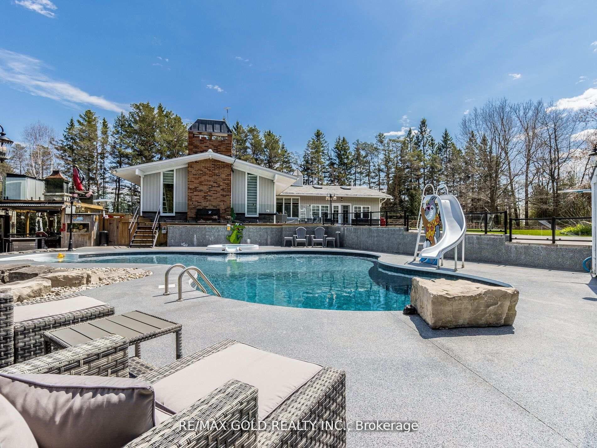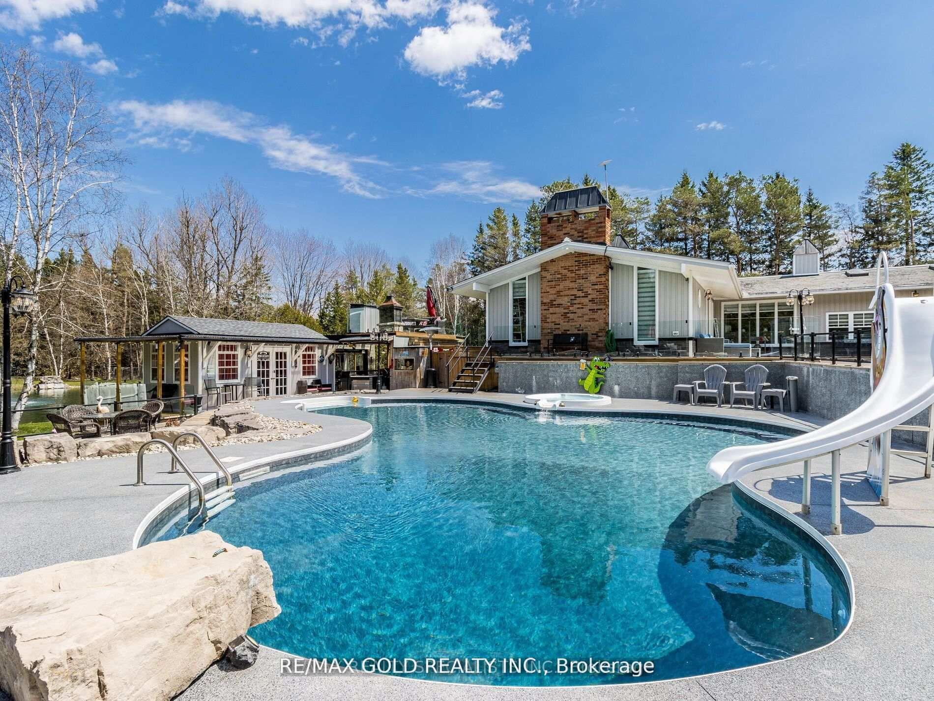 Step into your own private gated resort like home the epitome of luxury living with this exceptional 4,000 sq ft home, nestled on nearly 10 acres of breathtaking, private land. Designed as your own personal resort, this stunning estate offers a perfect blend of elegance, comfort, and relaxation. Enjoy endless summer days by the outdoor pool, ideal for family gatherings and sun-filled afternoons. Entertain in style with a dedicated outdoor bar and BBQ area, perfect for hosting friends and loved ones. Ample parking spaces ensure plenty of room for guests and extra vehicles. Inside, the home boasts exquisite architecture and modern amenities, with spacious living areas that cater to every need. All bedrooms are thoughtfully located on the lower level and feature walkouts to a serene pond, offering unparalleled access to the peaceful natural surroundings. This unique layout enhances the connection between indoor and outdoor living while maintaining privacy and comfort. Beyond the main home, this property includes a heated workshop, perfect for hobbies, projects, or extra storage. The primary suite is a true sanctuary, complete with a luxurious 6-piece ensuite and an expansive walk-in closet. Every window throughout the home offers picturesque views of the lush landscape, creating a tranquil atmosphere at every turn. This property isn’t just a home it’s a lifestyle, offering the ultimate in privacy, sophistication, and outdoor living. Don’t miss the chance to experience this extraordinary estate. Schedule your private viewing today, as opportunities like this are rare and wont last long! **EXTRAS** Gated Driveway Leads To The Large Heated Shop Situated At The Back Of The Property, And A Bonus Home. Also Features A Slate Roof, Beautiful Wood Fence, Geothermal Heating, a Hot Tub And So Much More!