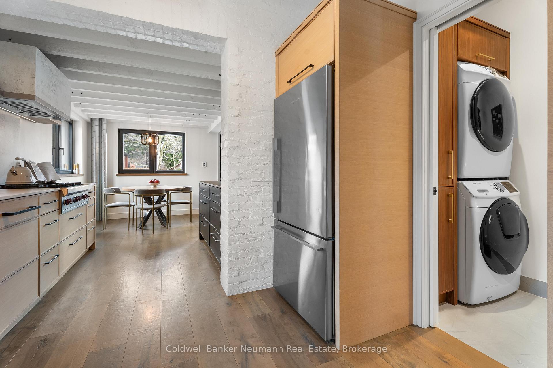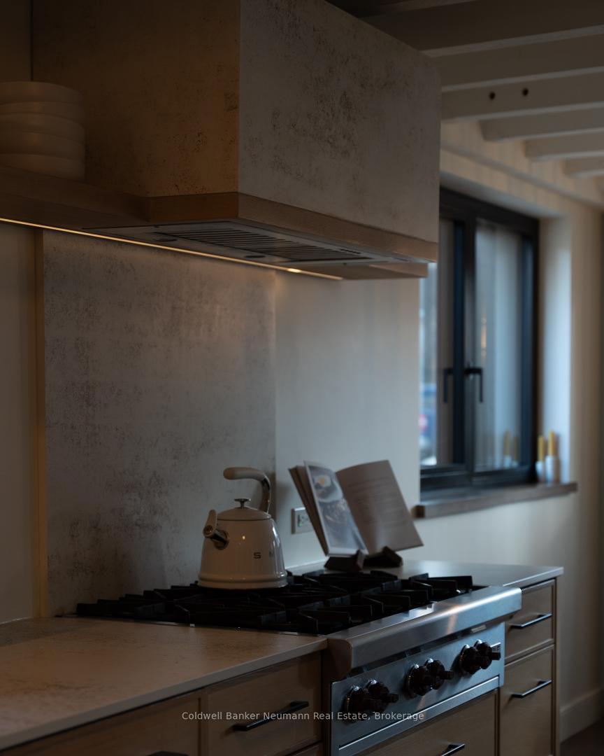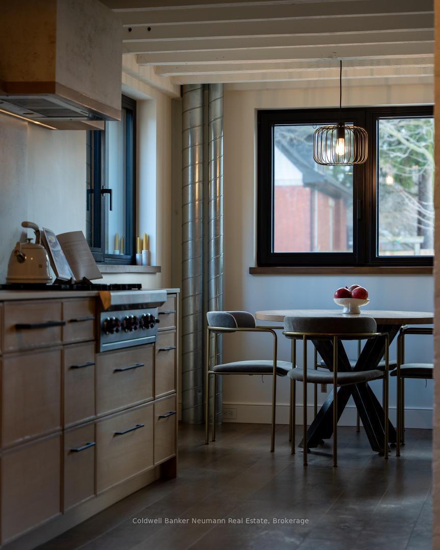 Welcome to a truly exceptional property in the heart of Arkell, where history, craftsmanship, and modern efficiency come together. Originally built in the 1800s and once home to a local blacksmith shop, this one-of-a-kind residence has been thoughtfully renovated to preserve its character while delivering outstanding comfort and performance. Reimagined using high-performance, Passive House-inspired building principles, the home was upgraded with a strong focus on the building envelope, ventilation, durability, and indoor air quality. The result is a remarkably energy-efficient, quiet, and comfortable home with consistent temperatures year-round. Inside, the main living space has been opened into a bright, cohesive kitchen and living area that blends contemporary design with preserved century details. Original rafters, exposed brick, and a striking floating staircase add architectural interest, while high-end appliances-including a Wolf cooktop, Fisher & Paykel refrigerator, wall ovens, and a built-in coffee maker-make the kitchen ideal for everyday living and entertaining. A rear addition with cathedral ceilings, moody finishes, and a fireplace creates a cozy, chalet-inspired retreat. Beyond its beauty, the home’s performance truly sets it apart, featuring triple-pane windows, a continuous air barrier with thick exterior insulation, and a heat-recovery ventilation system for enhanced comfort, sound insulation, and energy savings. Set on two separate deeds with commercial zoning, the property offers flexibility for business use, live/work potential, or future development. A detached 900 sq. ft. heated shop provides year-round functionality, while the expansive landscaped yard offers space to relax, entertain, or expand. Rich in history, meticulously renovated, and full of opportunity, this is a rare and remarkable legacy property.