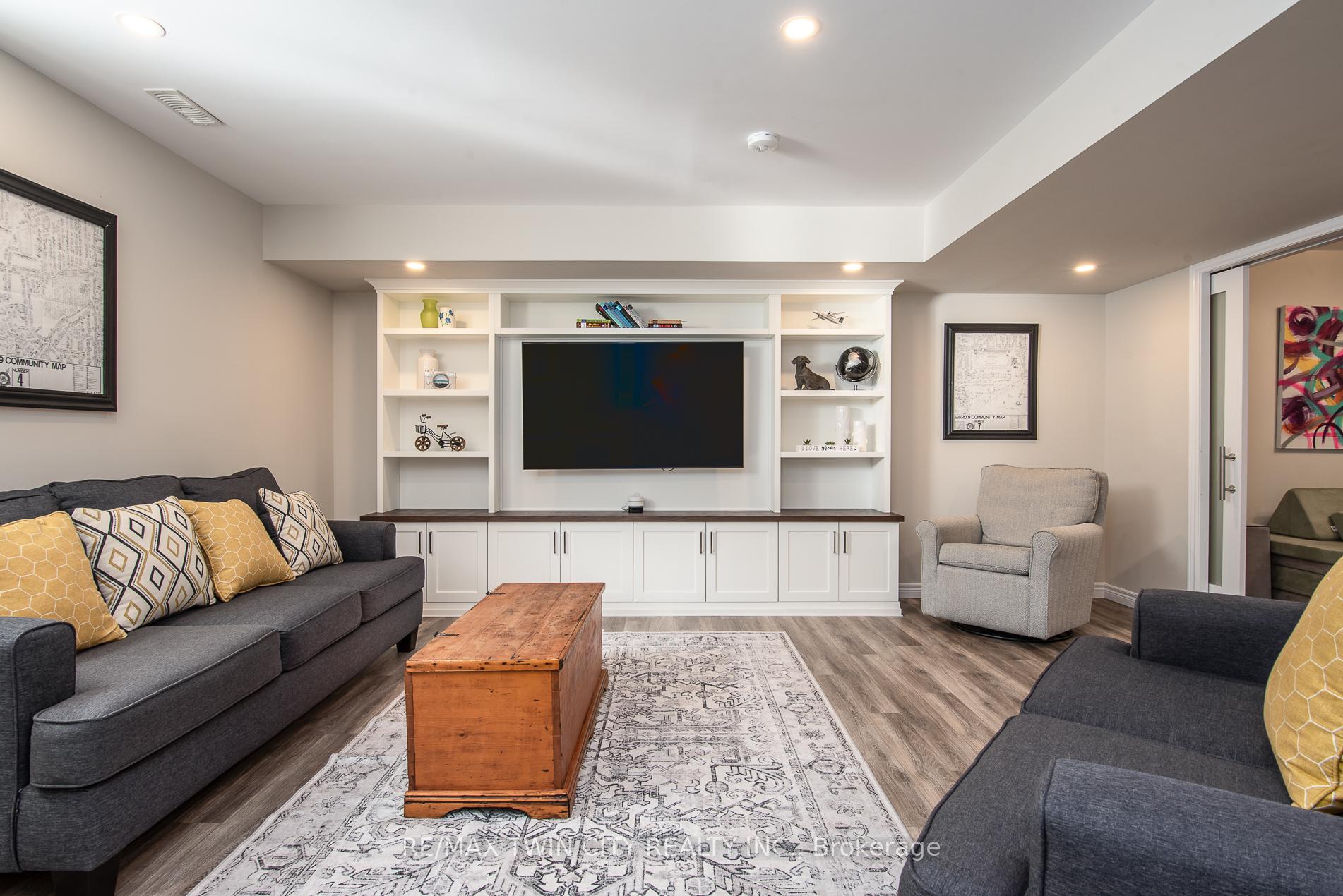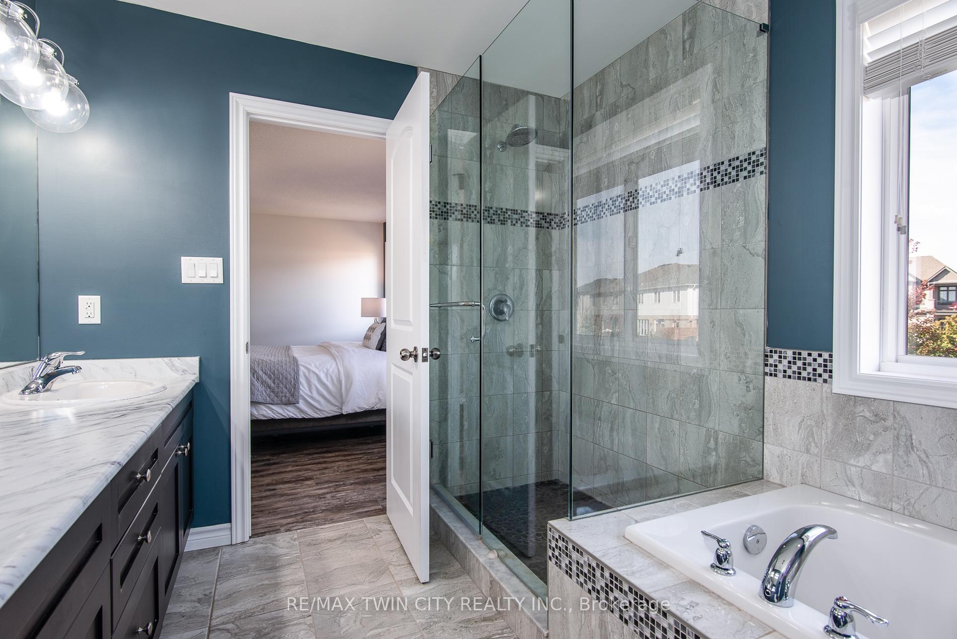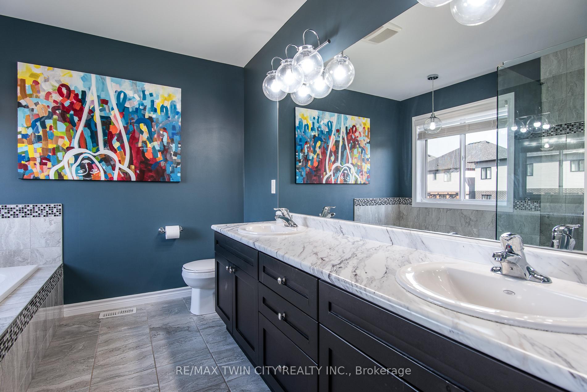 Welcome to the family-friendly Vista Hills community in Waterloo! This beautifully upgraded White Cherry model sits on an impressive 58-foot lot surrounded by professional perennial landscaping. The fully fenced backyard is a private retreat, complete with a stamped concrete patio, modern pergola, and lush gardens – perfect for kids to play, summer barbecues, and relaxing evenings outdoors. Inside, the main floor is designed with family living in mind. Durable 12×24 porcelain tile and hand-scraped hardwood flow throughout, leading to a chef-inspired kitchen with granite counters, a large island for casual meals, custom ceiling-height cabinetry, pantry, and a newer smart stove. The open-concept design creates a warm, inviting space ideal for both everyday routines and entertaining friends and family. Upstairs, you’ll find 4 generously sized bedrooms and a convenient laundry room. The primary suite is a true escape with a spa-like 5-piece ensuite featuring a glass shower and soaker tub – perfect for unwinding after a long day. The fully finished lower level extends the living space with a stylish wet bar, custom entertainment unit, a guest bedroom, and full bathroom – great for hosting gatherings, movie nights, or providing a private space for visitors. Additional updates include smart switches, modern lighting, an owned water heater and softener, plus a newer furnace and AC (2022). With 4+1 bedrooms, 4 bathrooms, and the highly rated Vista Hills Public School just minutes away, this home offers the perfect blend of luxury, comfort, and community for today’s growing family.