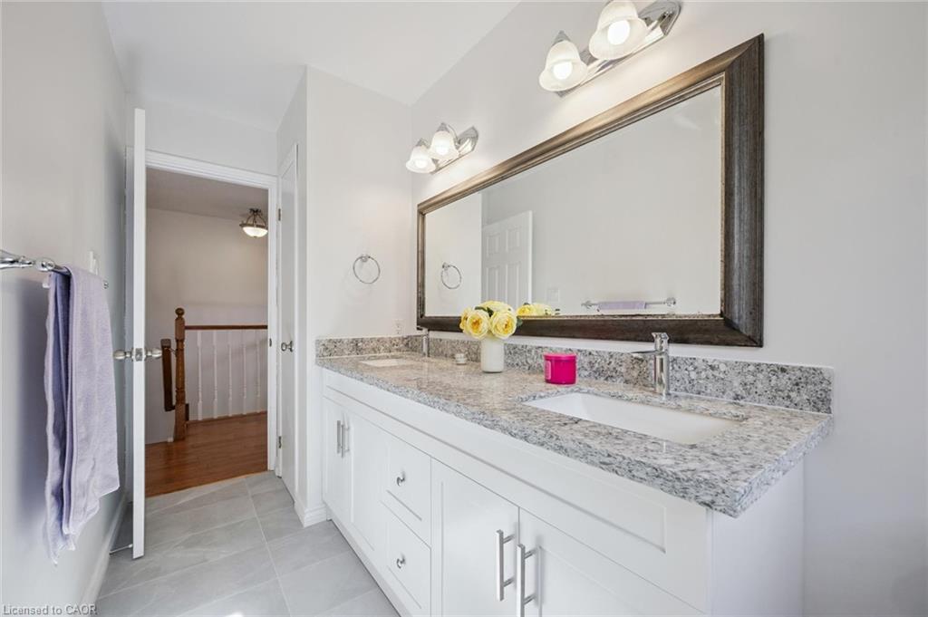 OFFER ANYTIME. All brick 4+1 beds and 5 baths single detached home located in Waterloo’s desirable Beechwood neighbourhood. The main floor features a spacious living room and a formal dining room both with large windows. The kitchen features granite countertops and porcelain tiles. The Sunken great room has high ceilings and there is a door that opens to a large patio in the fully fenced backyard. The main floor also features a 2pc powder room and a laundry room. On the 2nd floor you’ll find 4 generously sized bedrooms, one 3pc master bedroom en-suite, a 4pc main bathroom, and another 2pc en-suite washroom. The fully finished basement offers a 5th bedroom, a huge rec room, and a 5th bathroom plus plenty of storage space. Recent Updates: Newly installed hardwood staircase (2025), new paint throughout (2025), basement newly finished (2025), two upper floor bathrooms newly updated (2025). New master bedroom curtains (2025), Hot Water Heater Owned (2021). Added Extra Insulation in 2018. Newer Garage Door (2022). Newer Sump Pump (2023). Newer Washer and Dryer (2023). Fridge (2024). Furnace and AC (2024). Great location close to many amenities, within walking distance to schools, bus routes, shopping centers. A short drive to the Boardwalk, and both Waterloo and Laurier University.