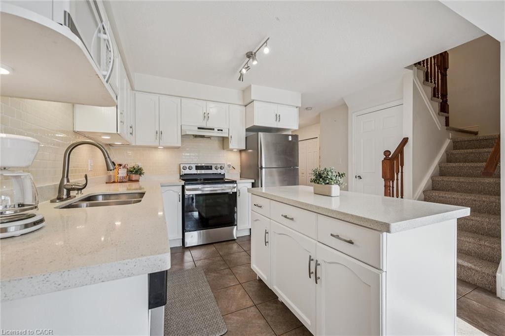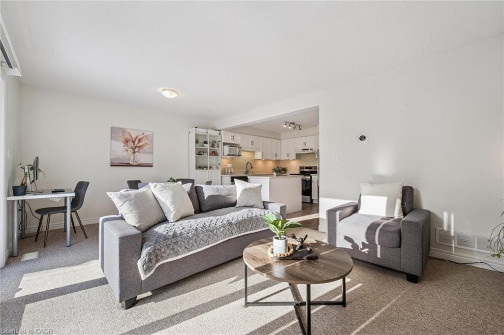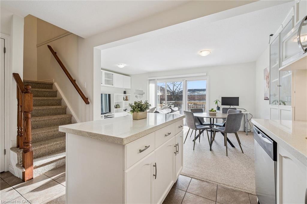 This move-in-ready 3+1 bedroom, 3.5 bathroom townhome delivers the space, layout, and flexibility today’s buyers want! Perfect for a move-up buyer craving more room, a young family looking to settle into a welcoming neighbourhood, or an investor seeking a strong rental opportunity near the University and public transit – this one checks all the boxes. The open-concept main floor is designed for everyday living and easy entertaining, with a social kitchen featuring a central island that overlooks the dining and living areas. Sliding doors lead to a private deck, creating the perfect setup for summer BBQs. Upstairs, the primary bedroom enjoys its own ensuite, while two additional bedrooms are serviced by a full main bath – ideal for growing families. The finished basement adds even more value, offering a fourth bedroom with an egress window and private ensuite, making it perfect for guests, extended family, or a mature student. There’s also bonus space for a dedicated work-from-home nook! Ideally located just minutes from schools, parks, shopping, public transit, the University of Guelph, Starkey Hill trails, and Highway 401 access, this is truly a lifestyle-driven location. Low condo fees include snow removal, lawn maintenance, and coverage of major exterior components such as the roof – giving you the ease of low-maintenance living with added peace of mind whether you’re moving in or adding to your investment portfolio.