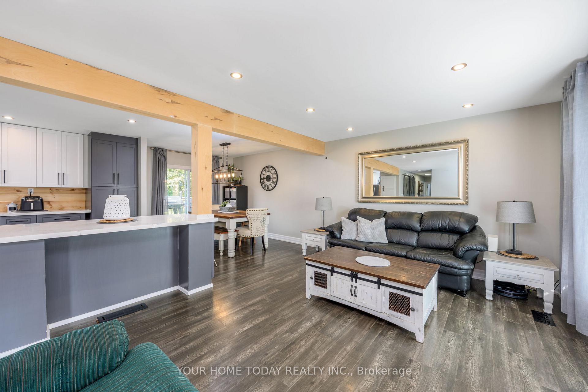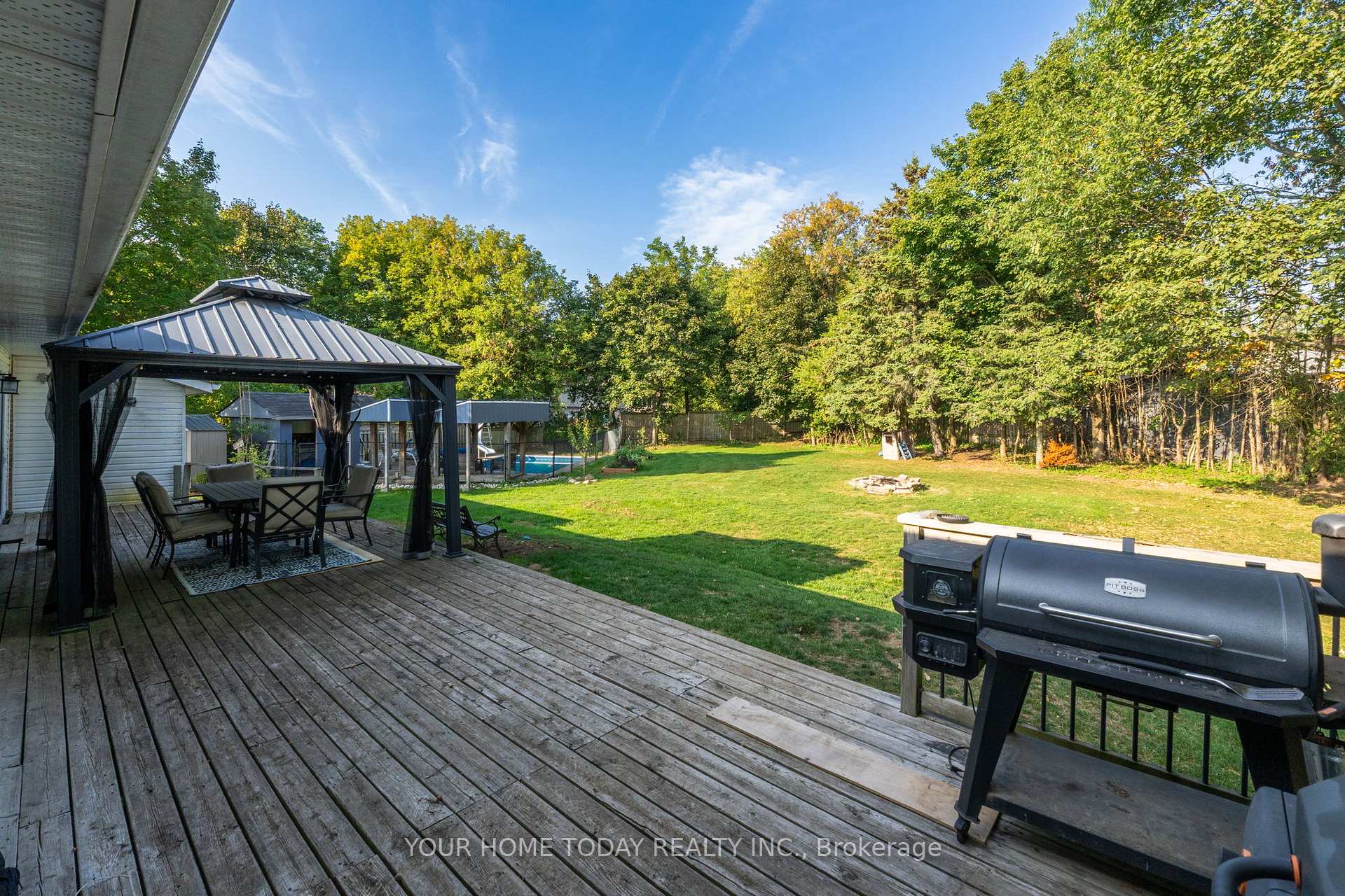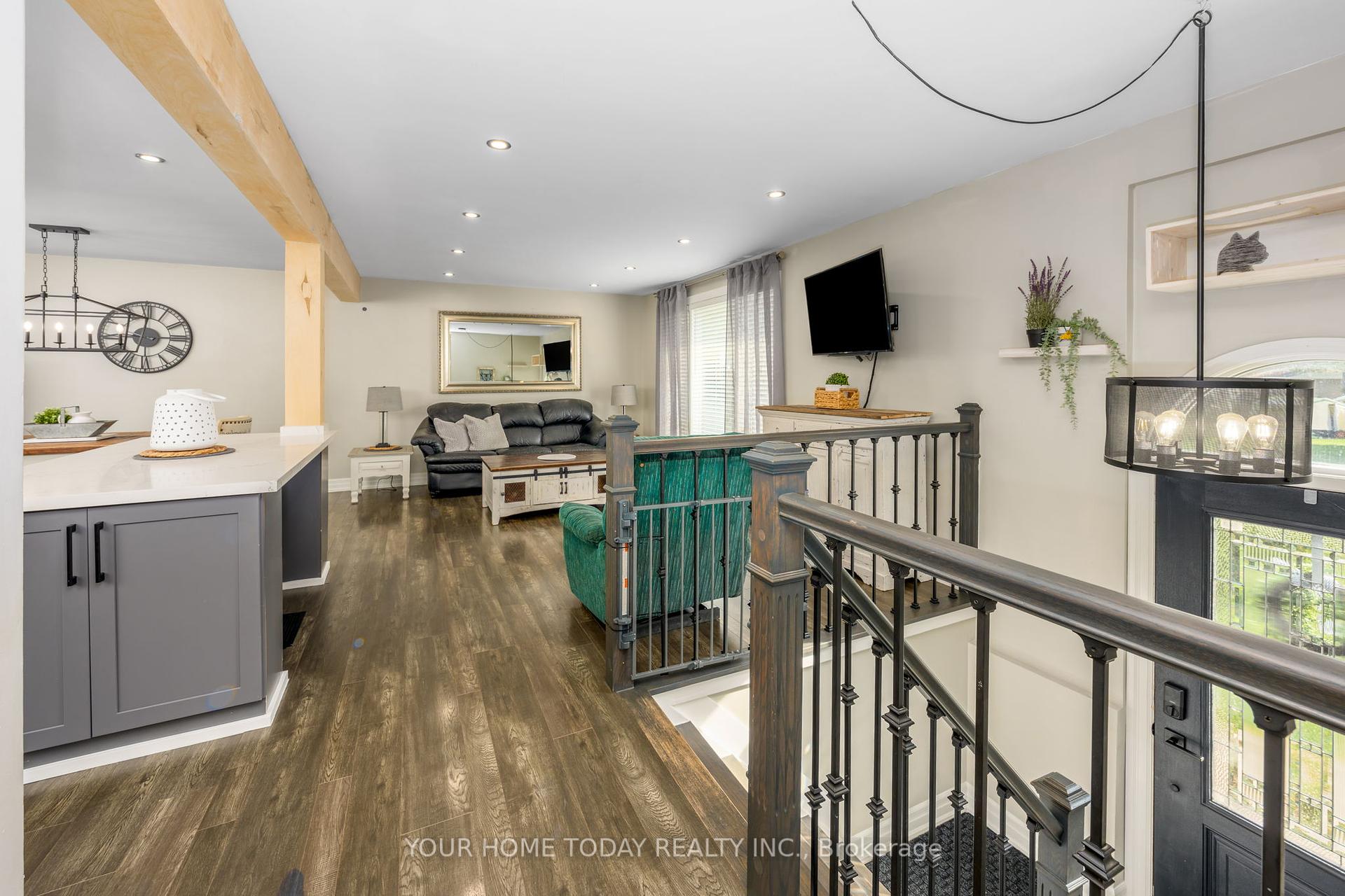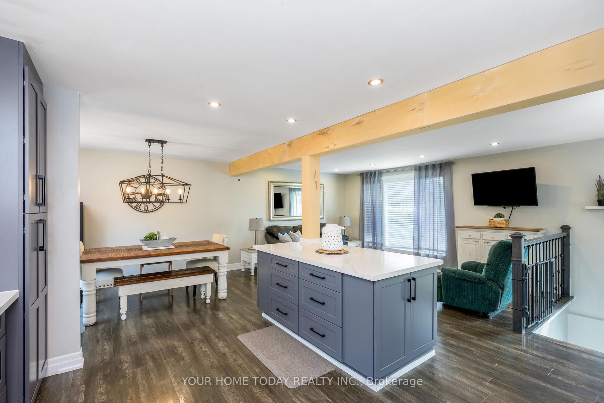 Spectacular park-like setting (.4 acre) with inground pool and beautifully updated raised bungalow wow! A sun-filled foyer welcomes you into this home where youll fall in love with the open concept layout and gorgeous finishes including stylish laminate flooring and a stunning 2-tone kitchen. The cook in the house will enjoy the well-appointed kitchen featuring great workspace, fashionable shaker style cabinetry, quartz countertop an eye-catching shiplap backsplash, stainless steel appliances and island with seating that opens to the living and dining room creating the perfect set-up for family living. A sliding door walkout from the dining room to a party-sized deck and gazebo overlooking the magical backyard retreat extends the living space during the warmer months. Three bedrooms, the primary with awesome wall to wall built-in closet and walkout to deck and a nicely updated 4-piece bathroom complete the level. The tastefully finished lower level offers 2 spacious rec room areas with large windows, a luxurious 4-piece bathroom, laundry/utility room, storage area and a walk-up to the over-sized garage huge bonus! A fun-filled private yard offers all the play space you could ever hope for and a separately fenced pool complete with a concrete patio/pool apron, partially covered deck area and pool house. And for the car enthusiast/handman in the house the over-sized heated garage with workbench, extra high garage door and a drive through to the yard is a dream come true! Great location close to park, extensive trail system and just a short drive to Orangeville and Guelph for all your needs.