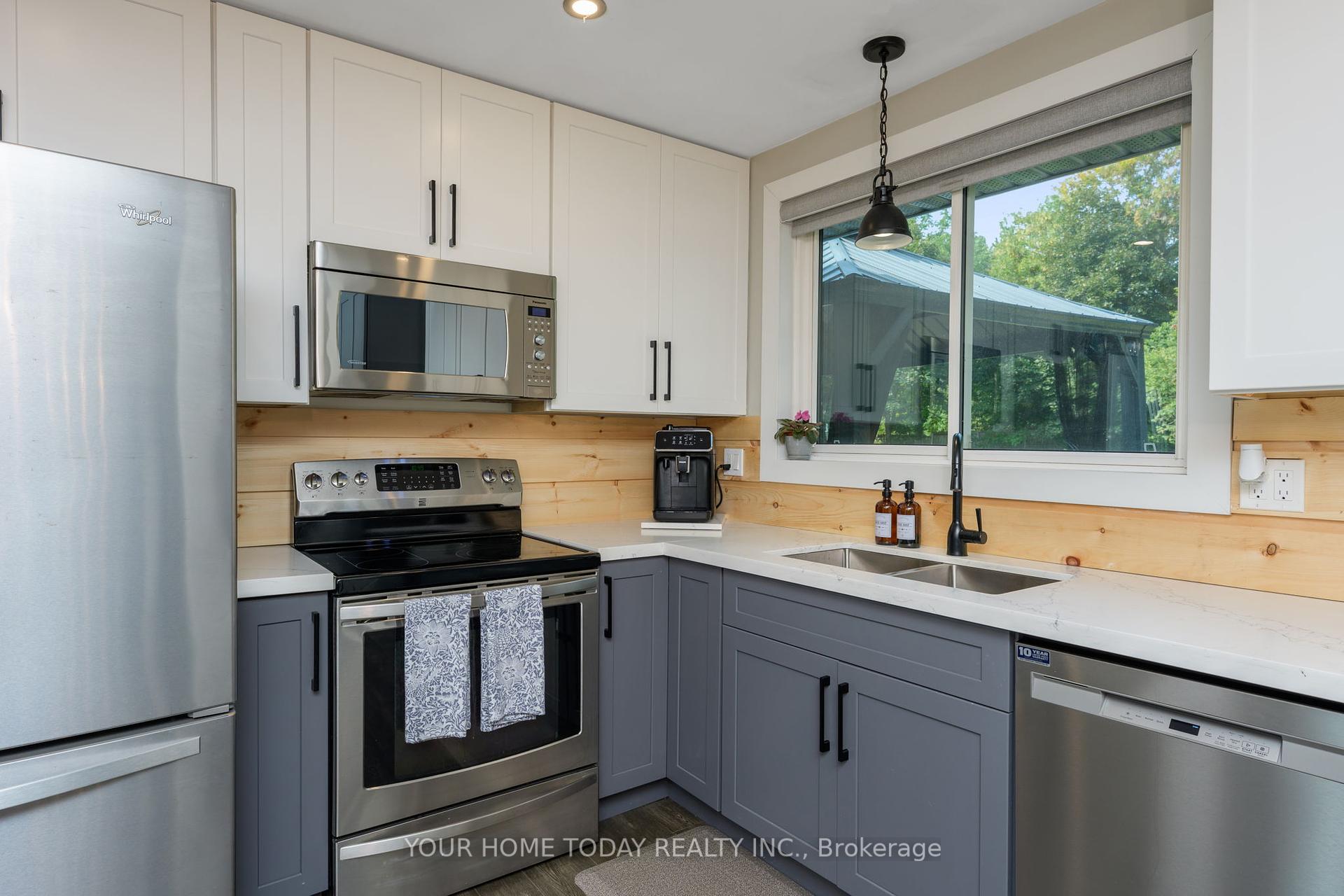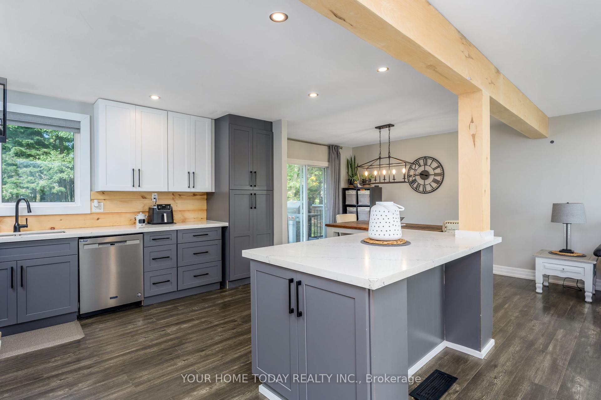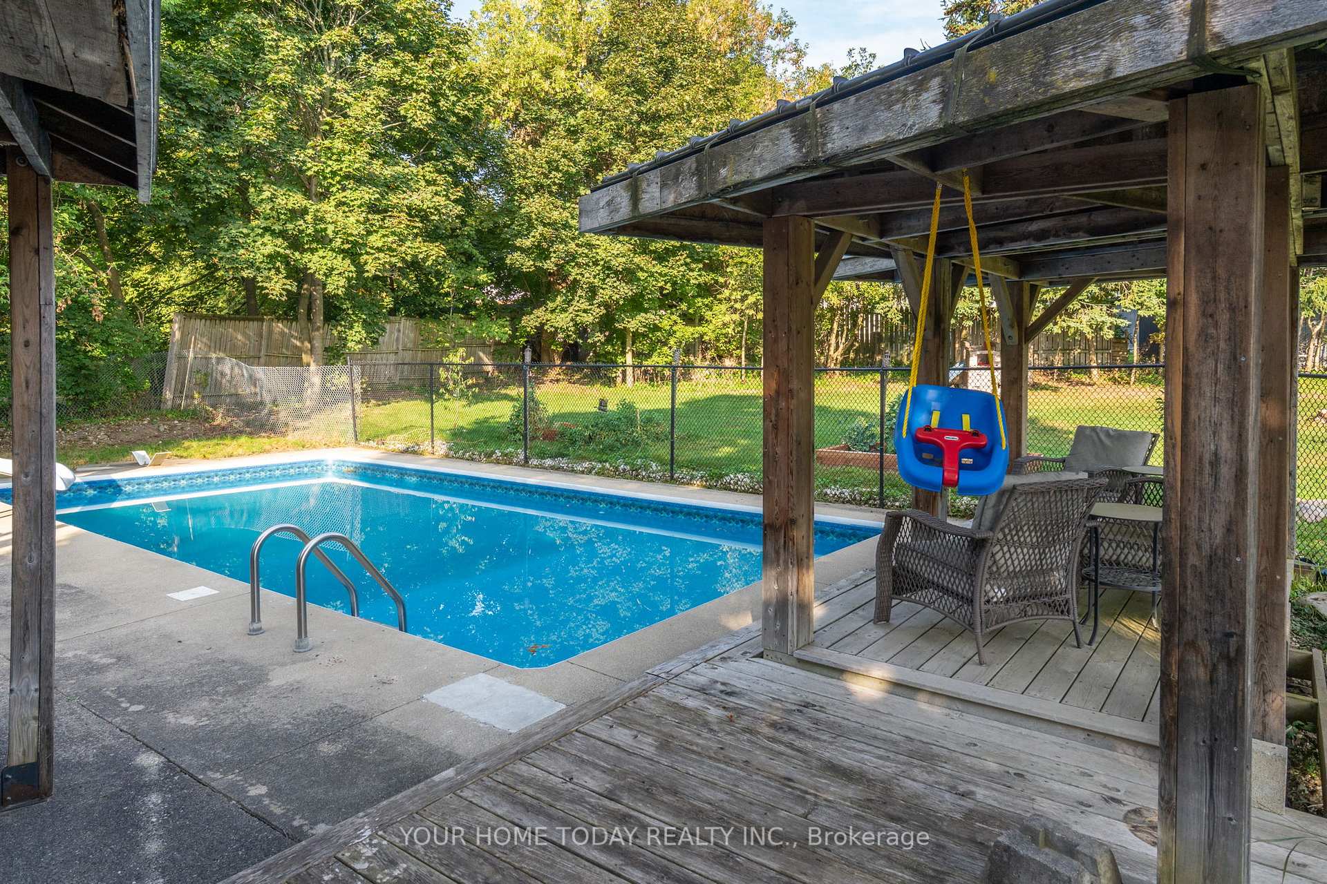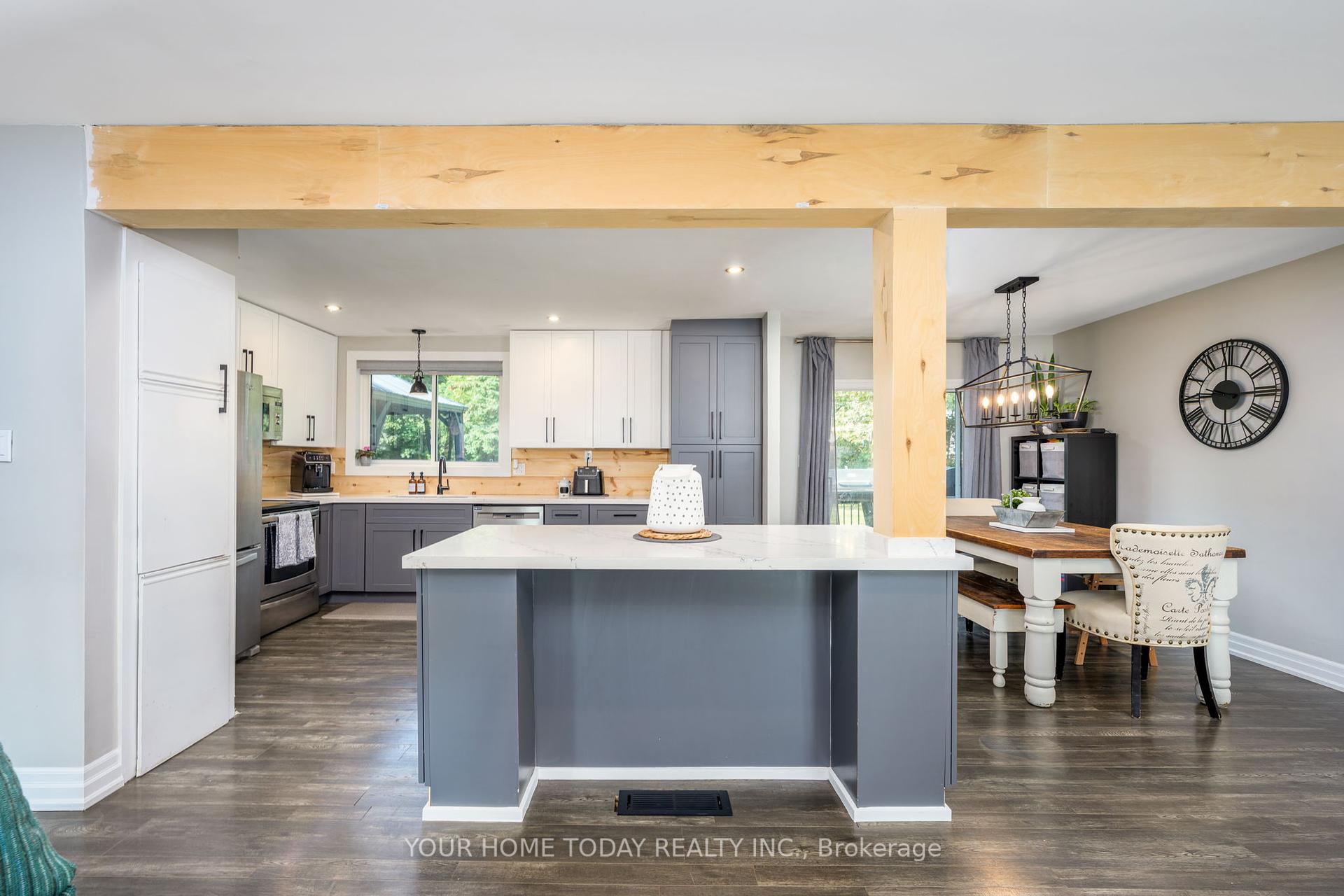 Spectacular park-like setting (.4 acre) with inground pool and beautifully updated raised bungalow wow! A sun-filled foyer welcomes you into this home where youll fall in love with the open concept layout and gorgeous finishes including stylish laminate flooring and a stunning 2-tone kitchen. The cook in the house will enjoy the well-appointed kitchen featuring great workspace, fashionable shaker style cabinetry, quartz countertop an eye-catching shiplap backsplash, stainless steel appliances and island with seating that opens to the living and dining room creating the perfect set-up for family living. A sliding door walkout from the dining room to a party-sized deck and gazebo overlooking the magical backyard retreat extends the living space during the warmer months. Three bedrooms, the primary with awesome wall to wall built-in closet and walkout to deck and a nicely updated 4-piece bathroom complete the level. The tastefully finished lower level offers 2 spacious rec room areas with large windows, a luxurious 4-piece bathroom, laundry/utility room, storage area and a walk-up to the over-sized garage huge bonus! A fun-filled private yard offers all the play space you could ever hope for and a separately fenced pool complete with a concrete patio/pool apron, partially covered deck area and pool house. And for the car enthusiast/handman in the house the over-sized heated garage with workbench, extra high garage door and a drive through to the yard is a dream come true! Great location close to park, extensive trail system and just a short drive to Orangeville and Guelph for all your needs.