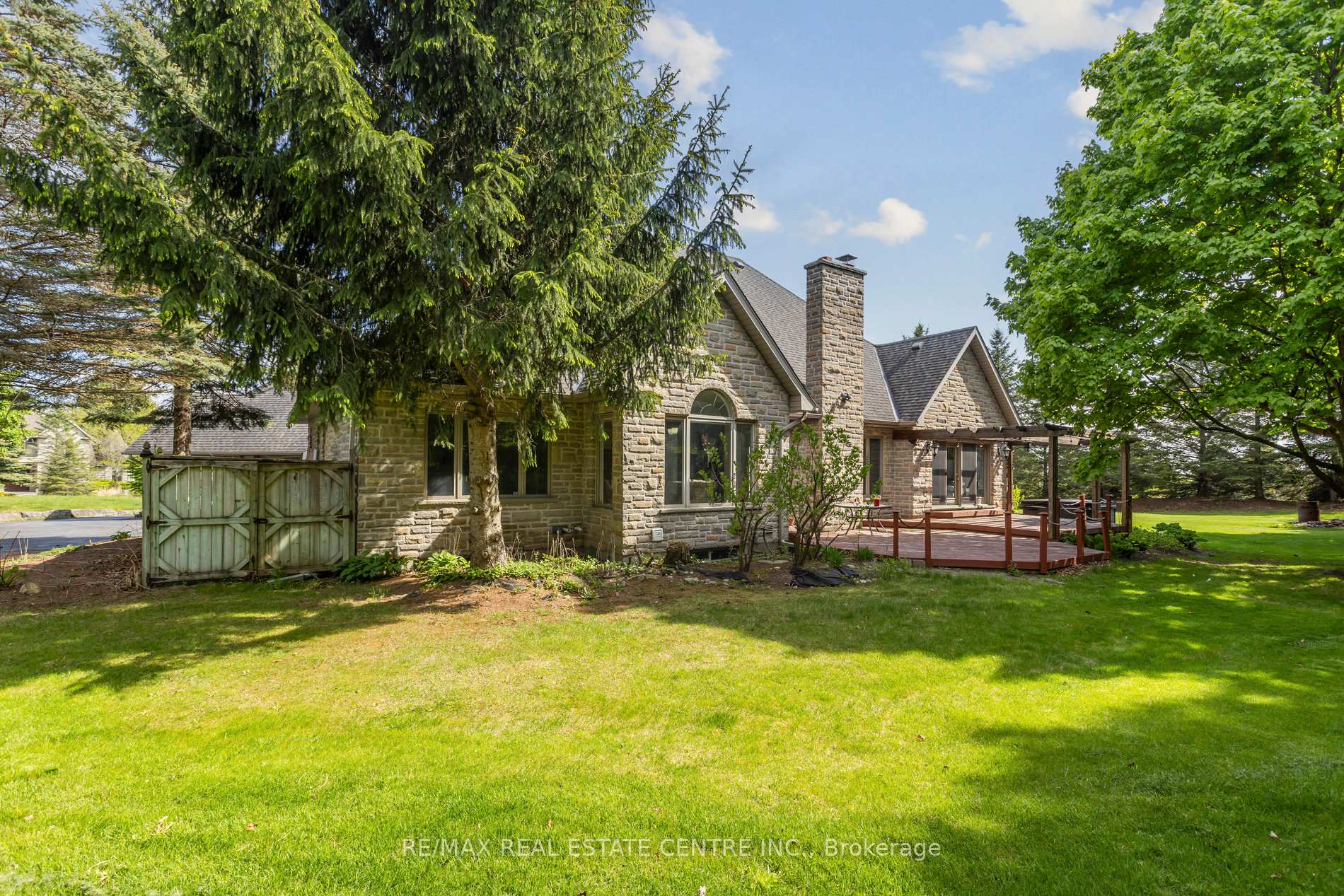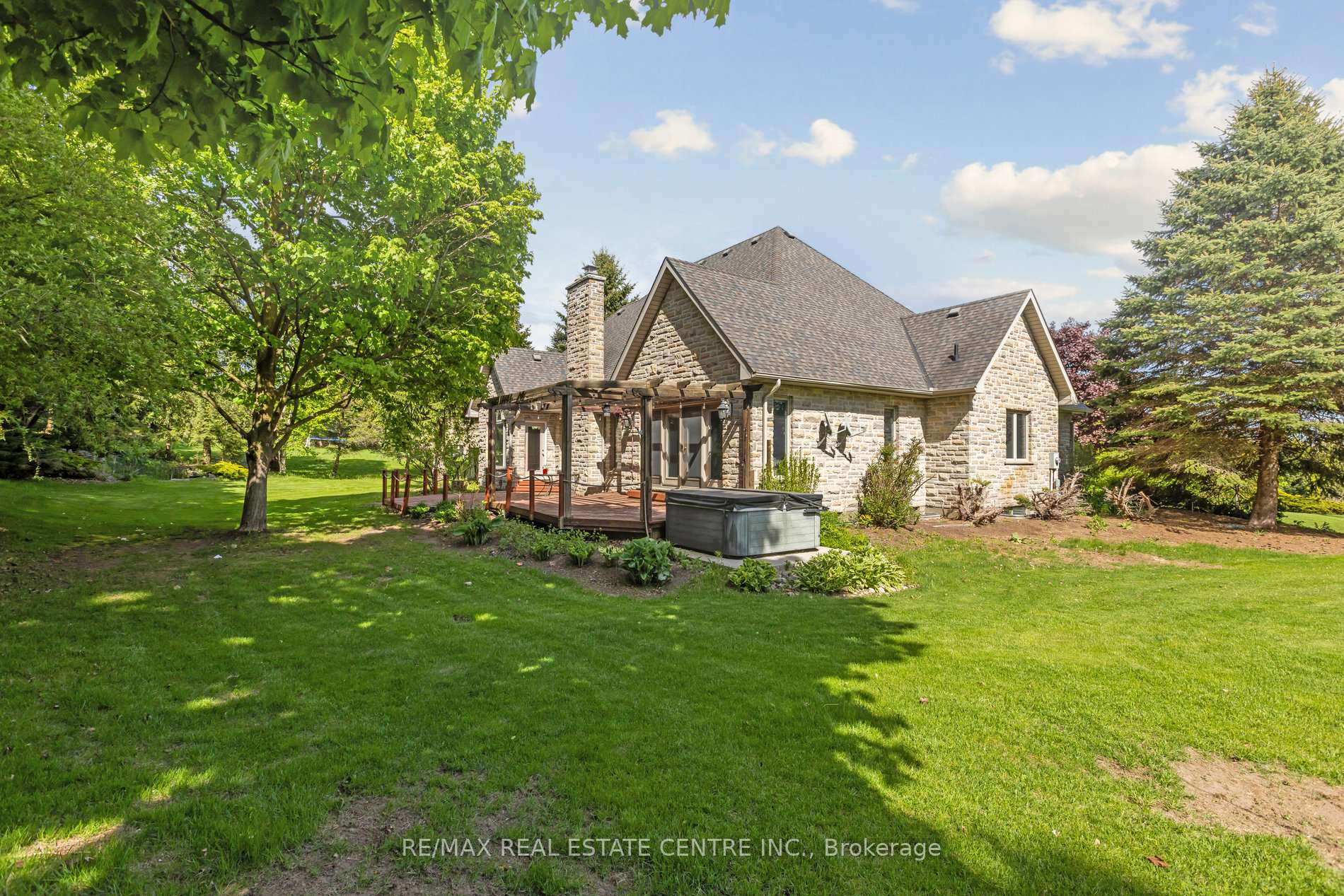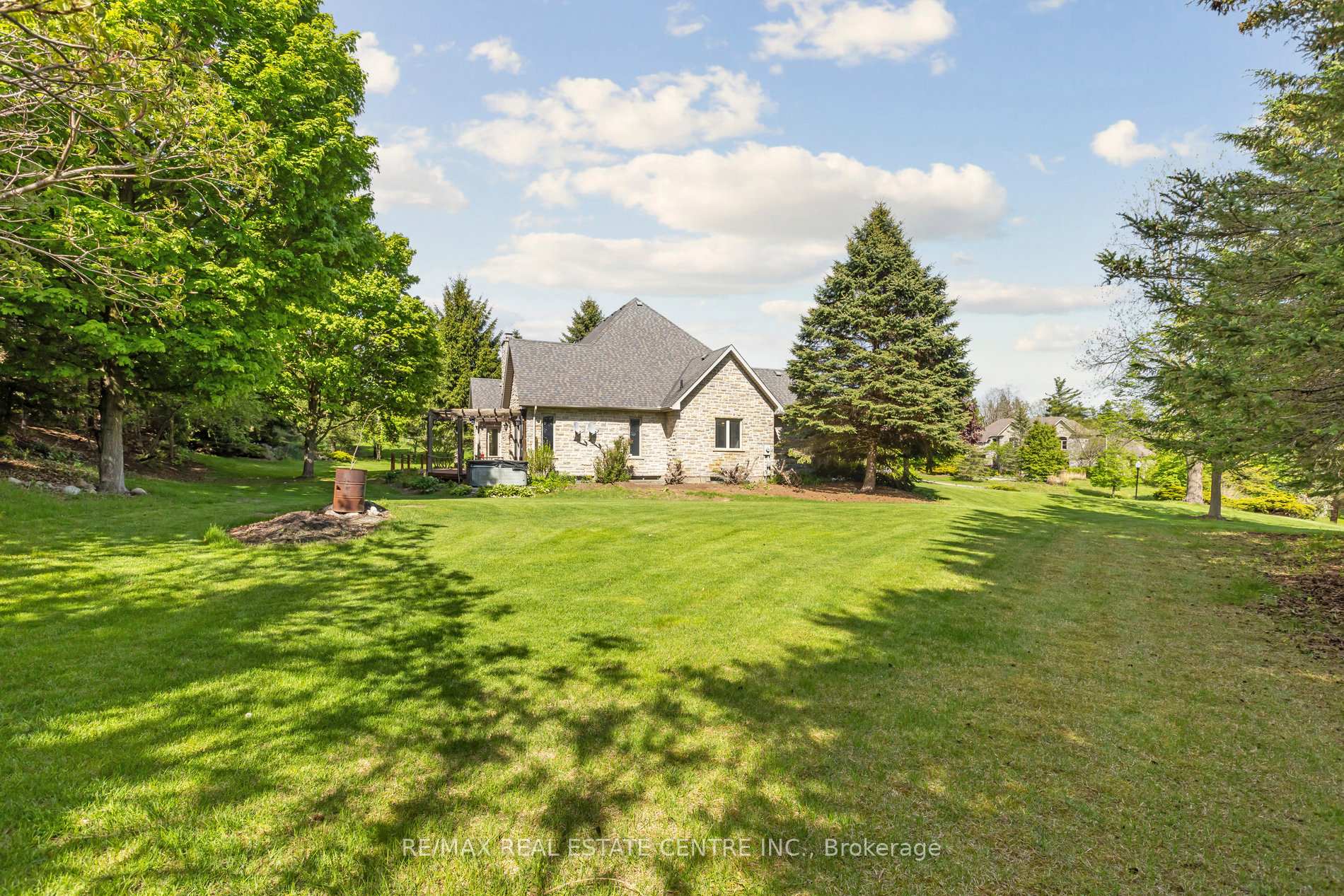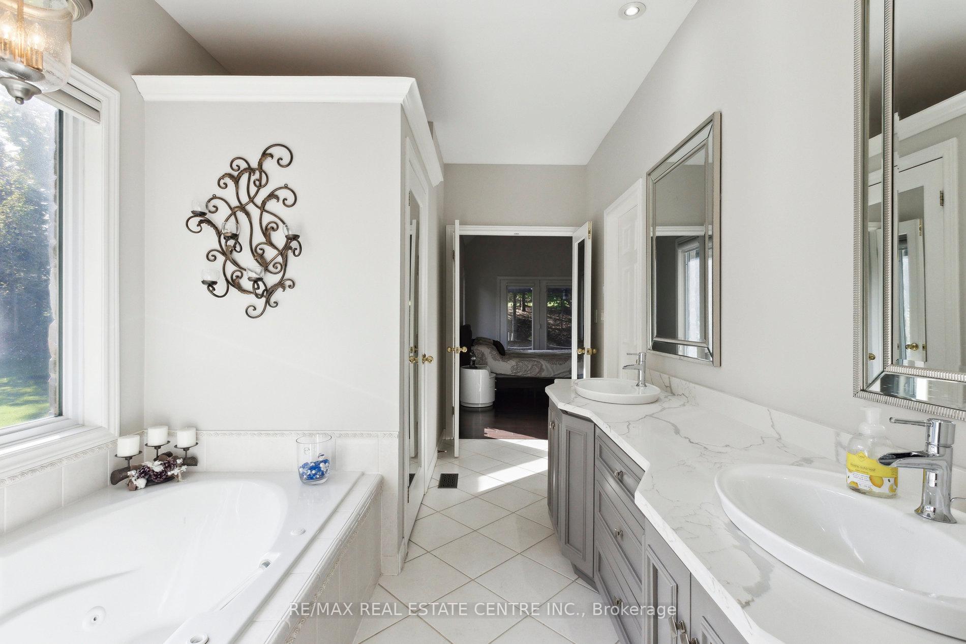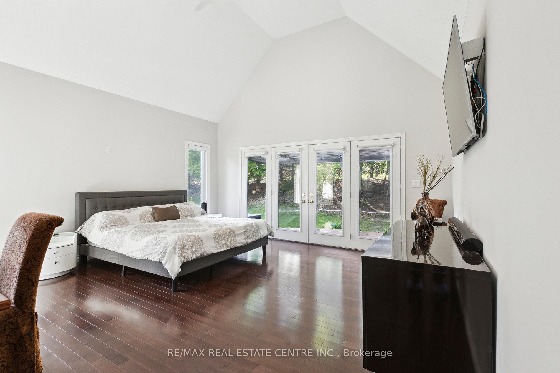 Welcome to your dream home, ideally located in the sought-after Fox Run neighborhood, just south of Guelph and only minutes from Highway401. This home with a total of living space of 5.579 Sq. Ft perfectly blends elegance, comfort, and endless potential. As you approach the stately driveway, you will notice the flagstone pathway, a wrought iron gate, and a striking stone archway that leads to the backyard, featuring a single car garage and a double car garage. Step inside the grand foyer, adorned with soaring 11-foot ceilings and slate flooring, which offers clear sightline into the beautifully appointed living and dining areas. The main living room is a showstopper, boasting 23-foot cathedral ceilings and a dramatic stone fireplace ideal for entertaining or relaxing with family. The gourmet kitchen is a chefs dream, featuring exquisite granite countertops, custom maple cabinetry, and high-end finishes. It includes two refrigerators and a charming breakfast bar, making it not only functional but also a warm space for culinary creativity. The main level offers spacious rooms that flow seamlessly into one another, with the primary suite serving as a true sanctuary, highlighted by soaring ceilings, an expansive walk-in closet, and a luxurious spa-inspired ensuite. The basement is an entertainers paradise, boasting a custom bar complete with a sink, a walk-in wine cellar, and a spacious recreation/games room. It also includes an additional bedroom, a full bathroom, and a private exercise room. Additionally, there is nearly 1,000 square feet of unfinished space in the utility area, providing excellent versatility for future customization. Don’t miss your opportunity to own this remarkable property