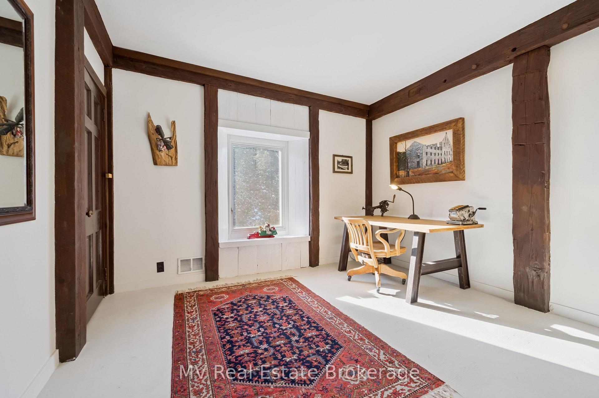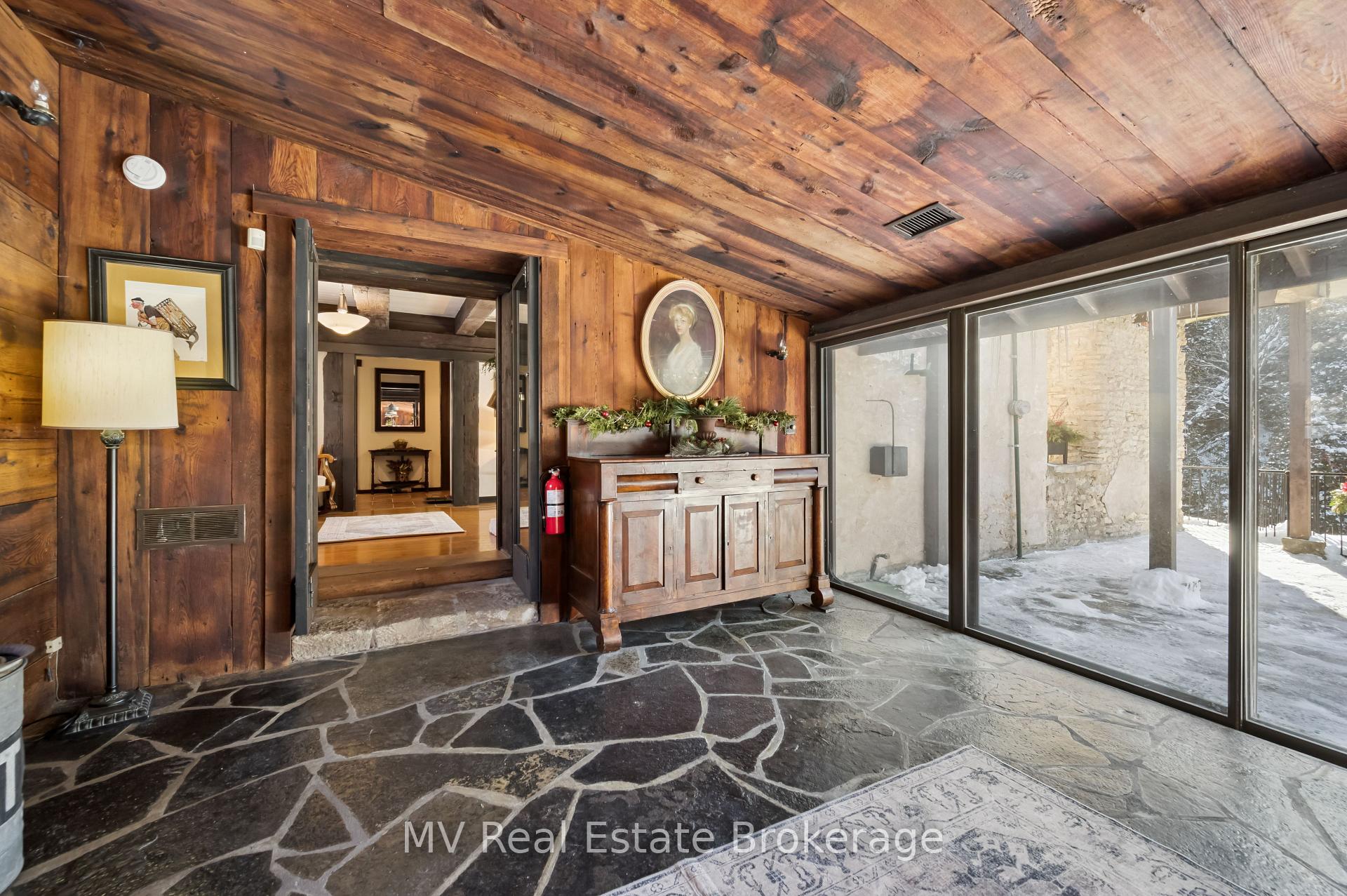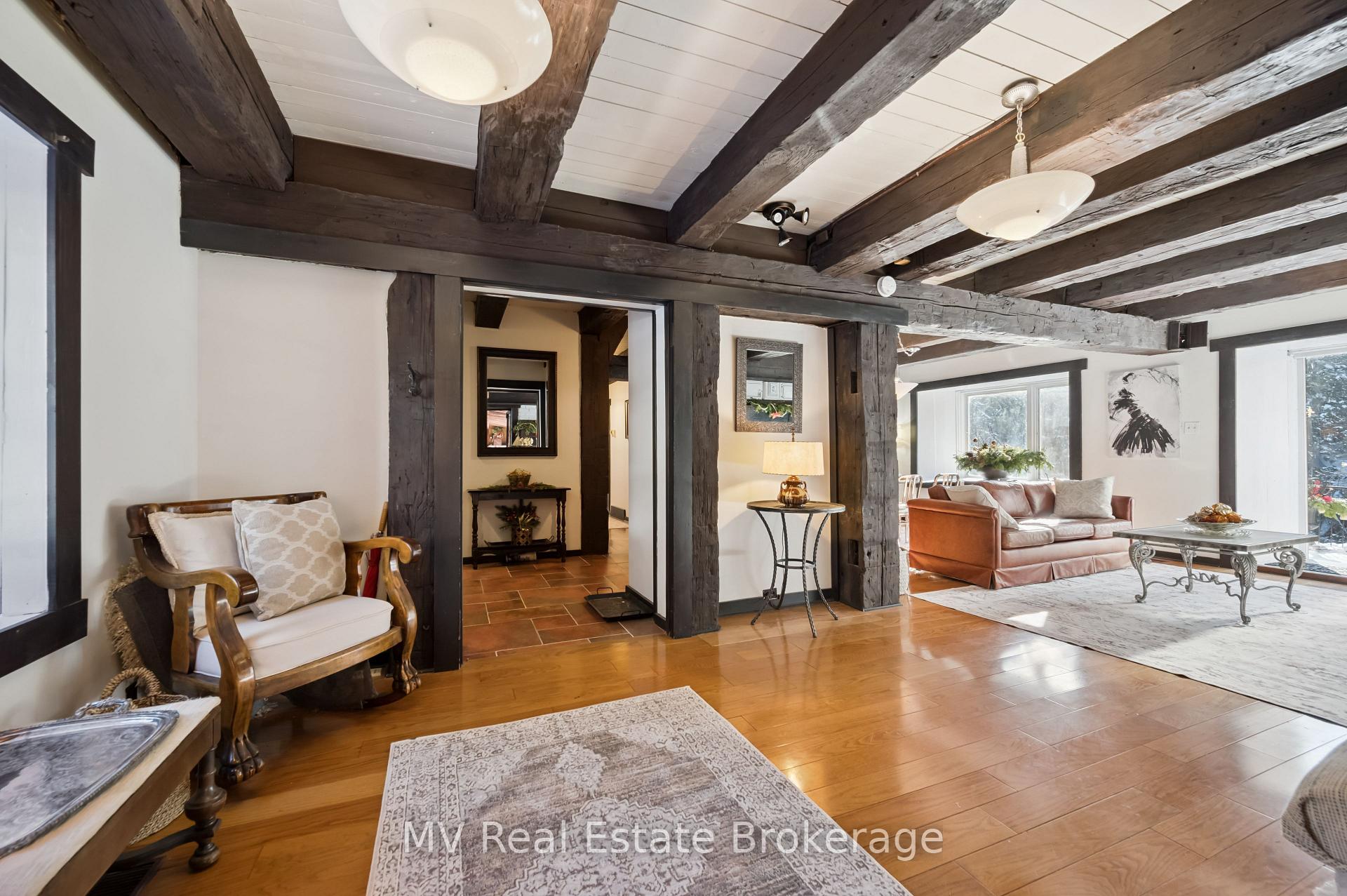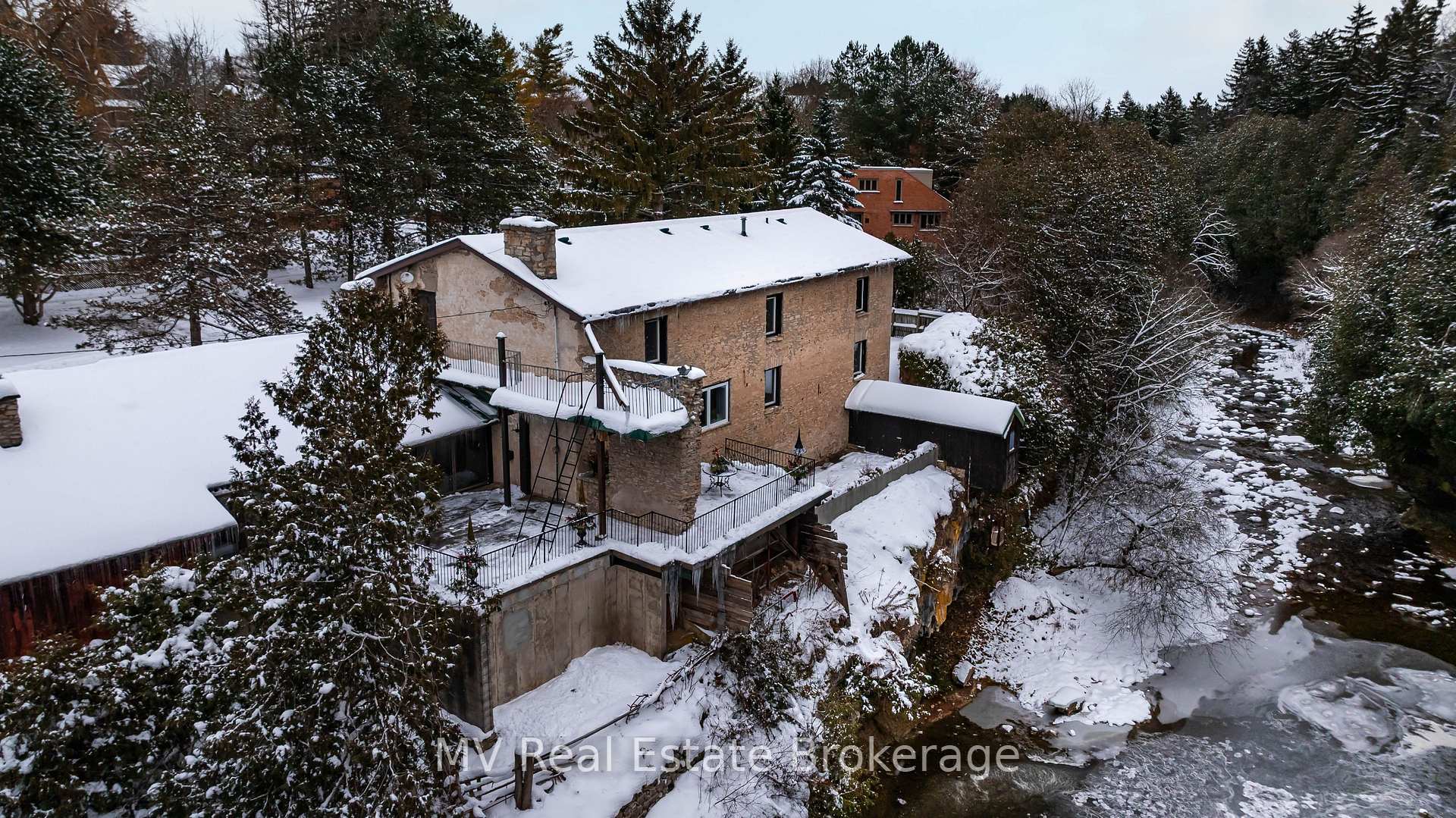 Originally built in 1856 as a mill, this extraordinary property blends historic significance with masterful craftsmanship. Set high above the gorge with the peaceful sound of the waterfall below, this is a private, serene, and truly magical piece of Elora you may not have known existed. Owned by the same family since 1965, there is truly no other property like it.The original stone exterior, hand-chiseled out of limestone from the riverbed, has been meticulously preserved, while the interior has been completely rebuilt and restored from the foundation up. Step inside to discover stunning post-and-beam construction with reclaimed, hand-hewn beams, thick handmade doors, and the unmistakable warmth of a century-old structure-yet updated for comfortable living. The kitchen counters, crafted from 100-year-old planks, pair beautifully with art-deco lighting throughout. With no interior supporting walls, the layout offers flexibility for future redesigns if desired.With five bedrooms and generous yet comfortable living spaces, the home is ideal for a single family seeking their dream home, while also being well-suited for multi-generational living. Additional highlights include a unique drive-through stone garage with upper storage, a large, dry unfinished basement plus wine cellar, and a concrete deck overlooking the river and waterfalls-an exceptional place to relax and take in the natural beauty surrounding this one-of-a-kind home.Tired of traffic to the cottage or the noise once you arrive?At 6 MillRidge Estates, you’ll find the peace, quiet, and beauty you’ve been searching for-right here in Elora.A truly one-of-a-kind historic residence, thoughtfully reimagined as a warm, inviting, and unforgettable home.