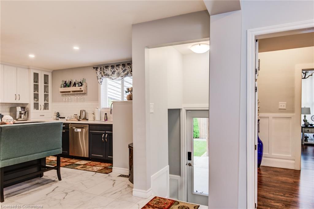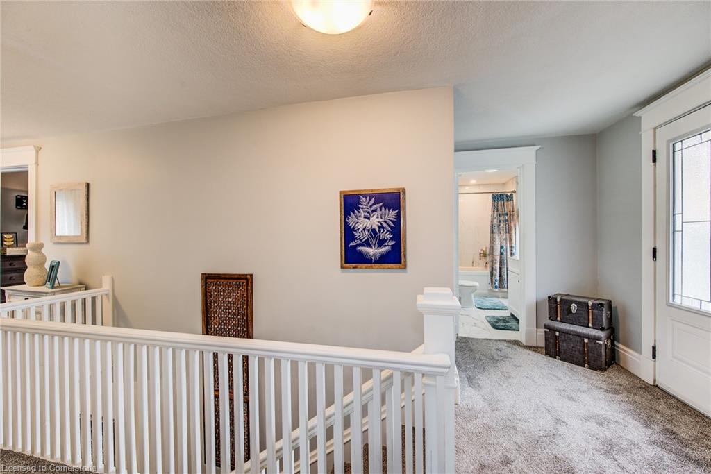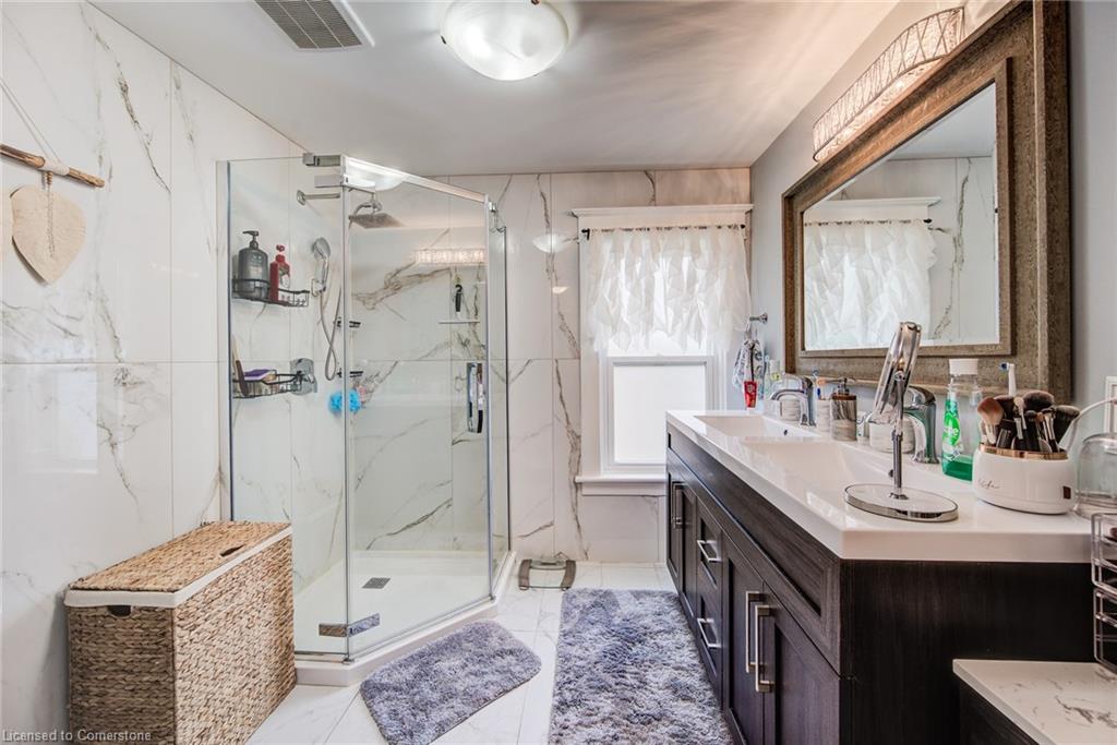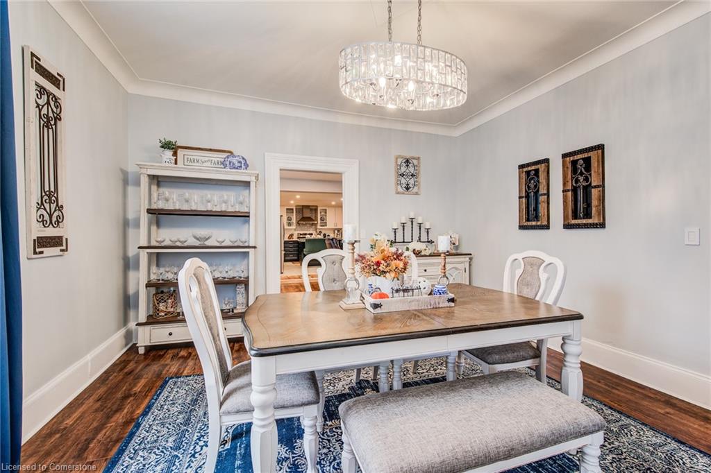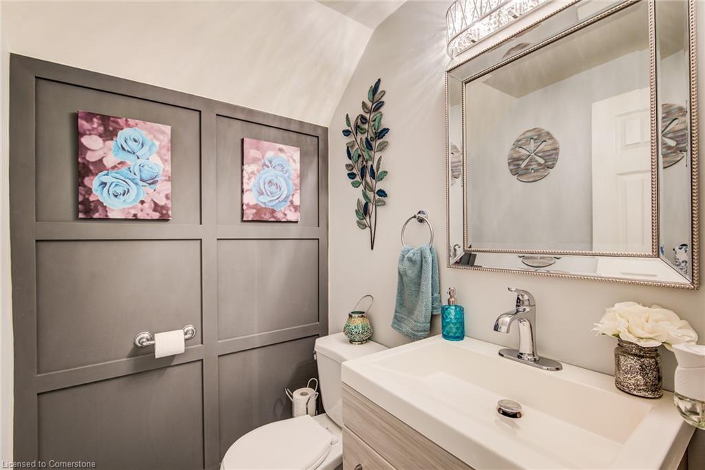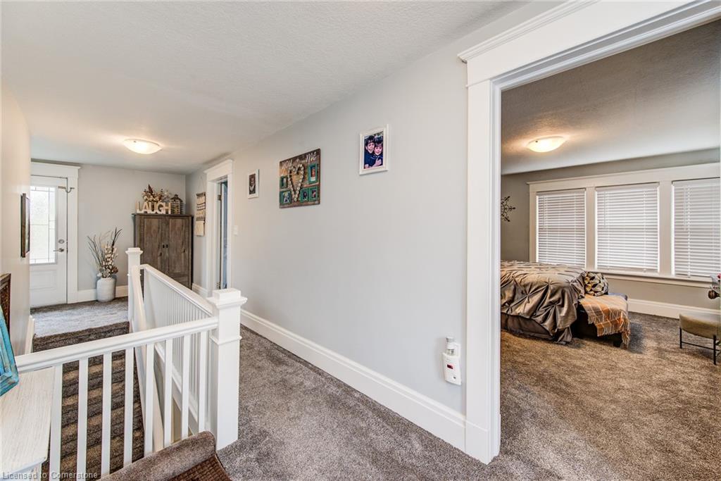 RENOVATED BEAUTY IN A STORYBOOK SETTING. Welcome to 6 Oak Street, where modern elegance meets timeless Victorian charm. From the inviting front porch to the original stunning trim and baseboards, this beautifully renovated 2-storey home seamlessly blends classic character with contemporary upgrades. Surrounded by lush gardens and mature trees on a picturesque, lamppost-lined street, this home offers over 2,250 sqft. Step into the bright foyer, which leads to the formal living room, complete with a fireplace, and an elegant dining room adorned with crown molding, and wide baseboards. The breakfast room offers the perfect nook for working from home or a convenient homework station and is open to the fully renovated kitchen. No detail was spared here, featuring elegant tile flooring, matching quartz countertops, a subway tile backsplash with accent tiles, ample cabinet space, and a convenient eat-in island. Just off the kitchen, step outside to the newly paved patio, complete with UV light panels, making it ideal for entertaining. The fully fenced backyard includes a gas barbecue line and a hydro-powered storage shed. A stylish powder room completes the main level. Upstairs, the second floor boasts 3 generously sized bedrooms and 2 full bathrooms. The primary suite features a spacious walk-in closet and a luxurious 4pc ensuite, complete with a double-sink vanity and a glass-enclosed, tiled walk-in shower. The partially finished basement offers a cozy rec room, laundry area, and plenty of potential for additional living space or extra storage. Notable features and updates include a new roof (2017), furnace (2017) and AC (2019), wainscoting, updated electrical and plumbing, water softener, reverse osmosis system, and ample parking. Meticulously maintained, this home is just a short walk from the vibrant downtown core, shops, trails, and the iconic Gaslight District. With easy access to schools, amenities, and Highway 8, this home truly has it all.