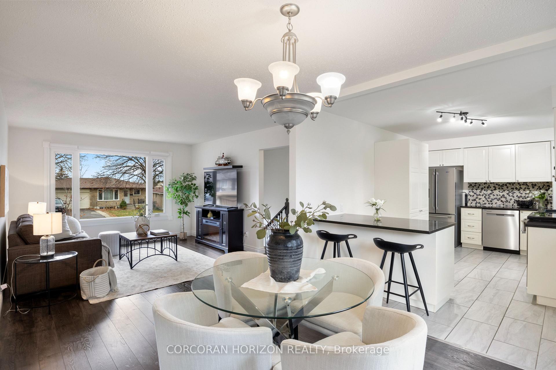 Welcome to this modern 3 bedroom, 2 bathroom raised bungalow in a desirable Kitchener neighbourhood. The open concept living and dining area features large windows that bring in plenty of natural light, flowing into a contemporary kitchen equipped with stainless steel appliances, an island with seating, and abundant counter space and storage. All bedrooms are generously sized with excellent closet space. The lower level offers even more living area, including a spacious rec room and a versatile office that can function as a fourth bedroom, playroom, media room or hobby space. A standout feature of the property is the large backyard, complete with an inground pool, new pergola and updated fencing, creating an ideal space for outdoor enjoyment. This home has been well maintained with numerous updates including the furnace, AC, patio door, front living room window and water softener in 2015, the washer and dryer in 2020, remaining windows throughout the home in 2022, the fridge, dishwasher, owned water heater, front door and roof in 2023, and the stove, new pool liner, pergola installation and new backyard fencing in 2024. This move-in ready home offers modern finishes, flexible living spaces and a fantastic outdoor retreat.