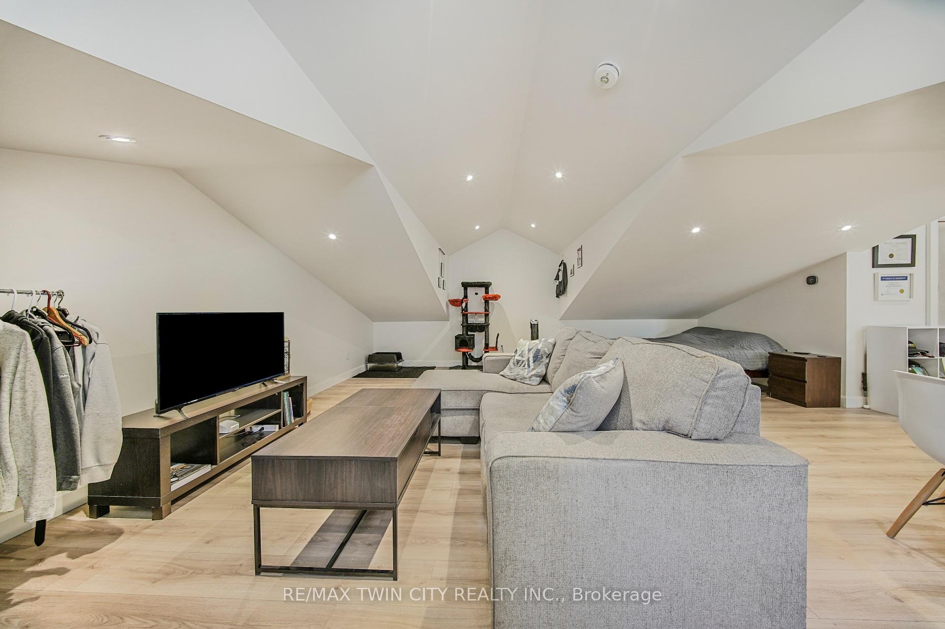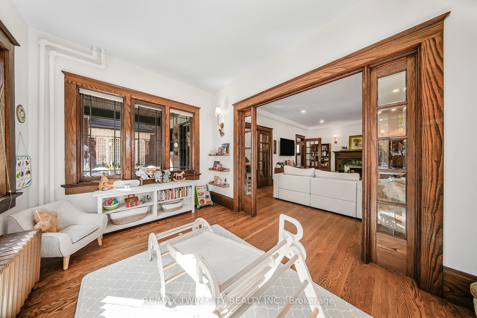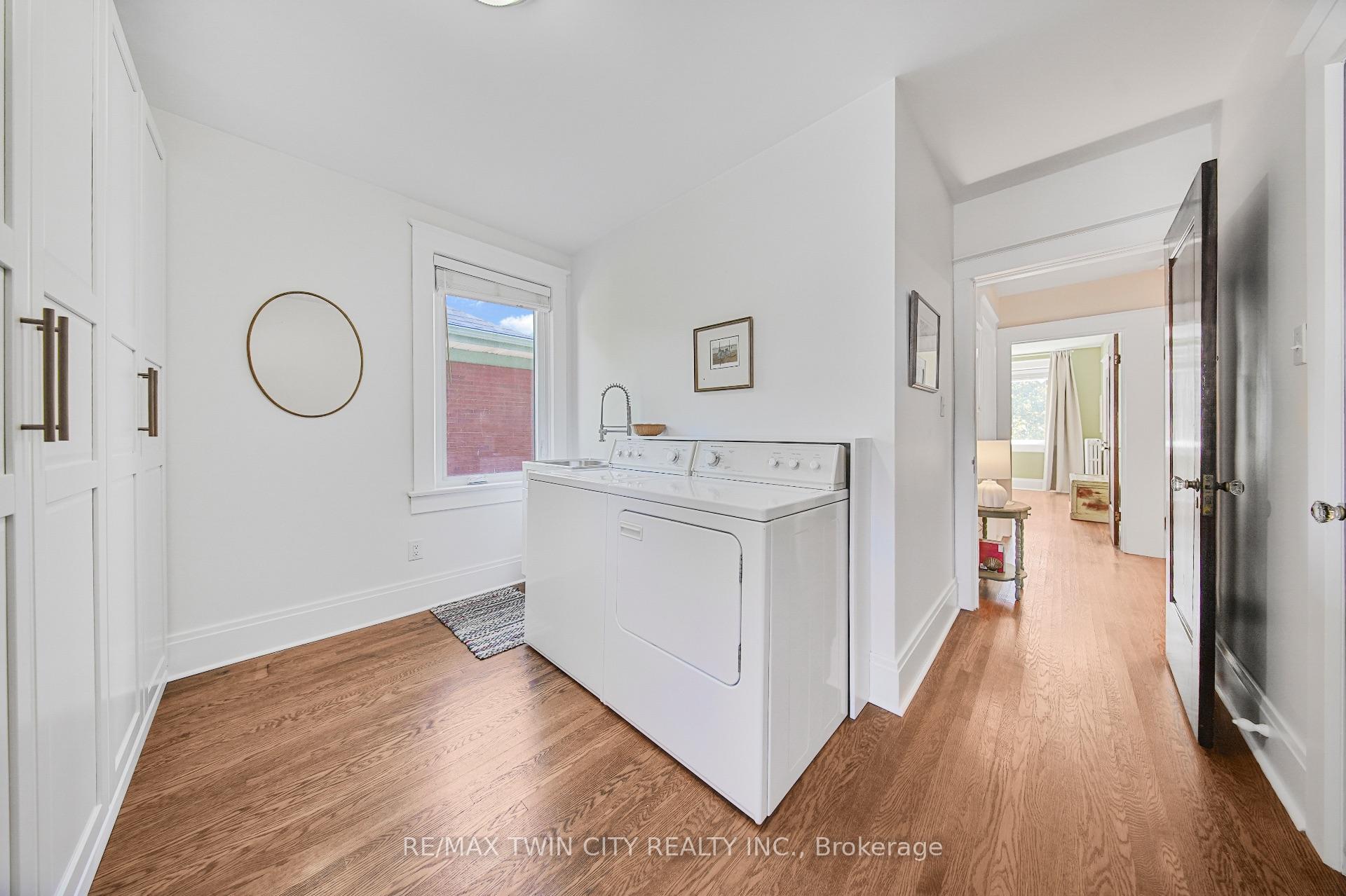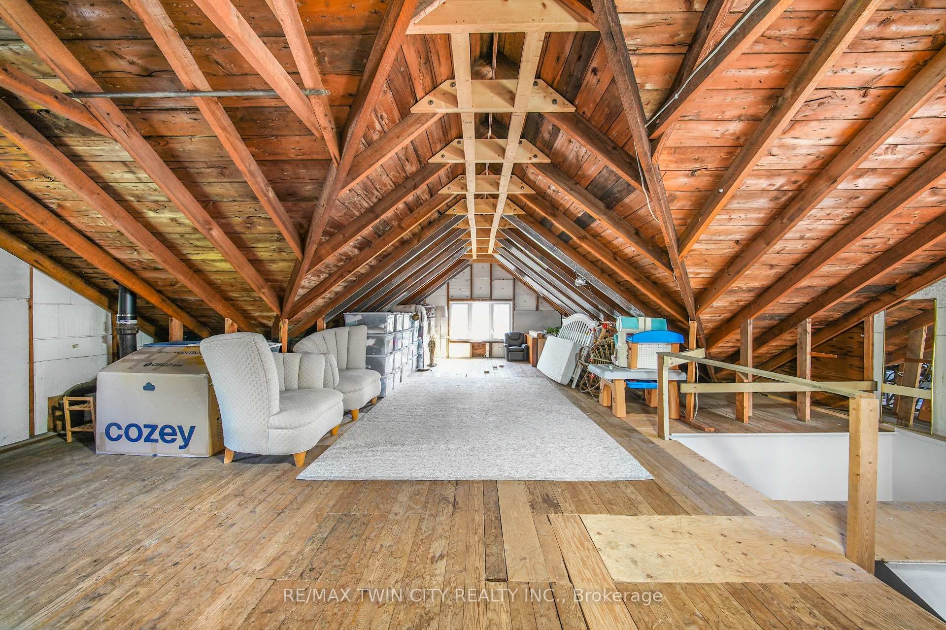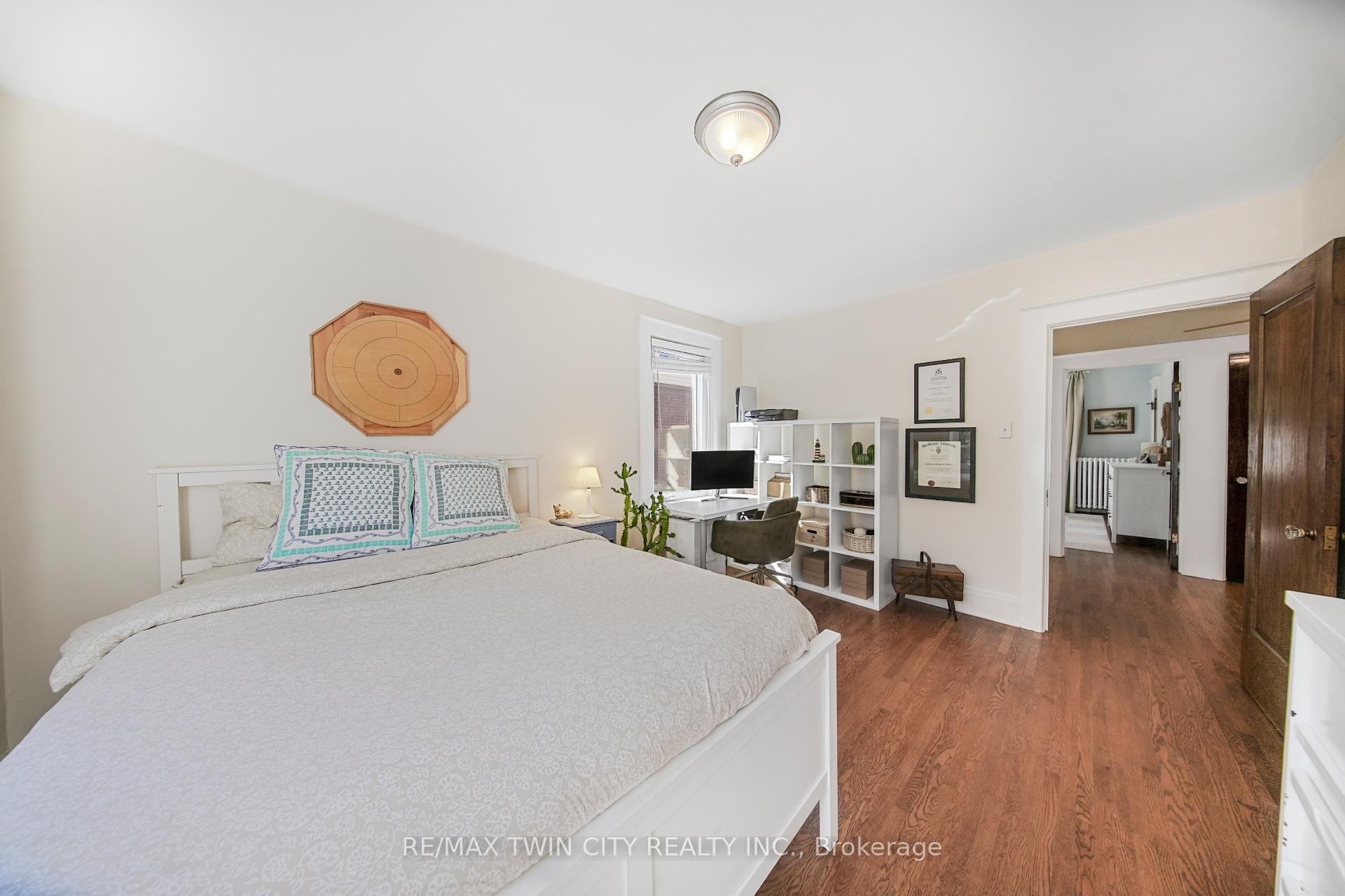 Nestled on a family-friendly street just steps from beautiful Victoria Park and vibrant downtown Kitchener, this charming 4-bedroom home strikes the perfect balance between character and modern convenience. The welcoming exterior hints at the thoughtful updates and well-maintained features you’ll discover inside. Step through the front door and you’ll immediately notice the gorgeous oak strip hardwood floors that flow throughout, complemented by elegant crown moulding and beautiful wide wood trim that adds a touch of sophistication. The main level offers comfortable living spaces, while a convenient half-bath serves daily needs. Venture upstairs to find three generous bedrooms, including a spacious primary bedroom. The fourth bedroom has been thoughtfully converted into an upper-level laundry room though it could easily return to bedroom duty if needed. Check out the recently renovated 4-piece bathroom that creates a spa-like retreat, perfect for unwinding after busy days. Don’t miss the unspoiled loft space, ideal for a children’s playroom, home office, or additional living area let your imagination run wild! Practical features include separate side and back entrances, plus laundry hookups in the basement for added flexibility.?The real showstopper? A massive 749 sqft detached garage measuring 32ft 8in X 23 ft and housing a self-contained studio complete with its own furnace (2022) and air conditioning (2025). Whether you’re an artist, entrepreneur, or just need extra space, this versatile outbuilding delivers endless possibilities. Some of the many updates include: windows, eaves & siding, driveway, heat pumps, boiler and softener. Reach out for the full list. This home is truly beautiful – book your showing today.