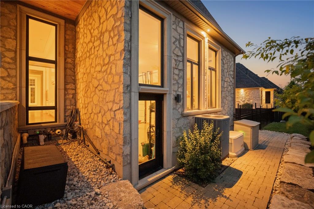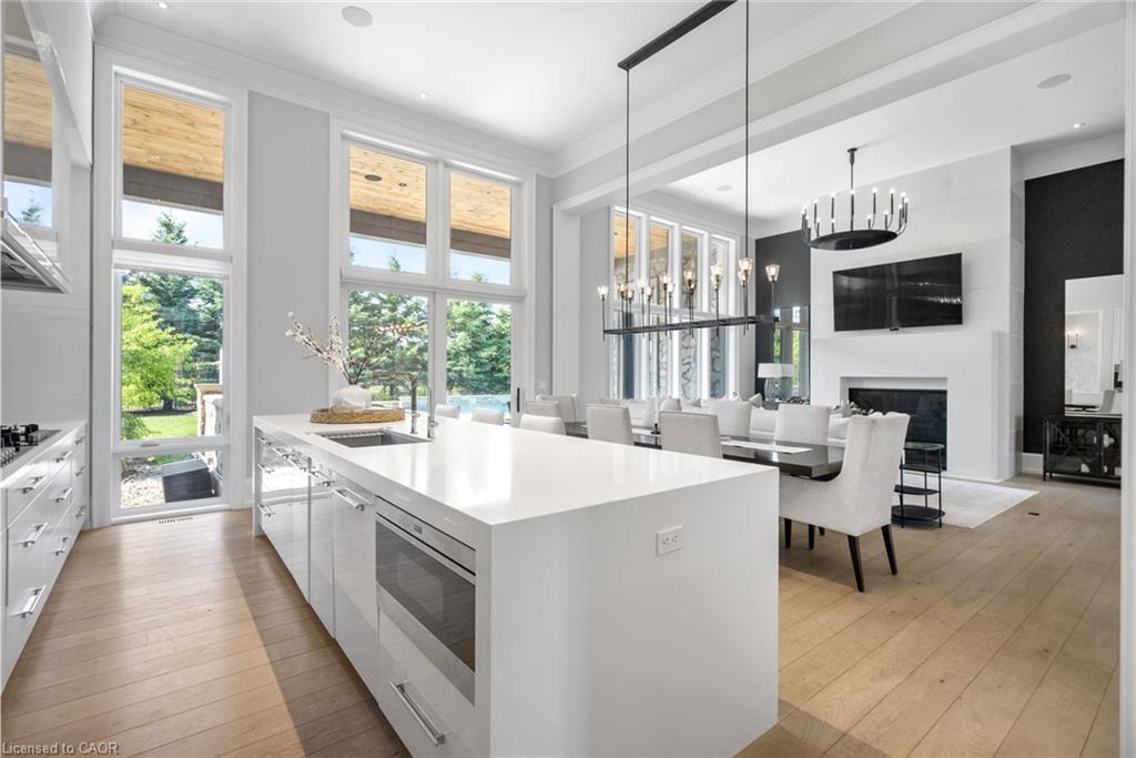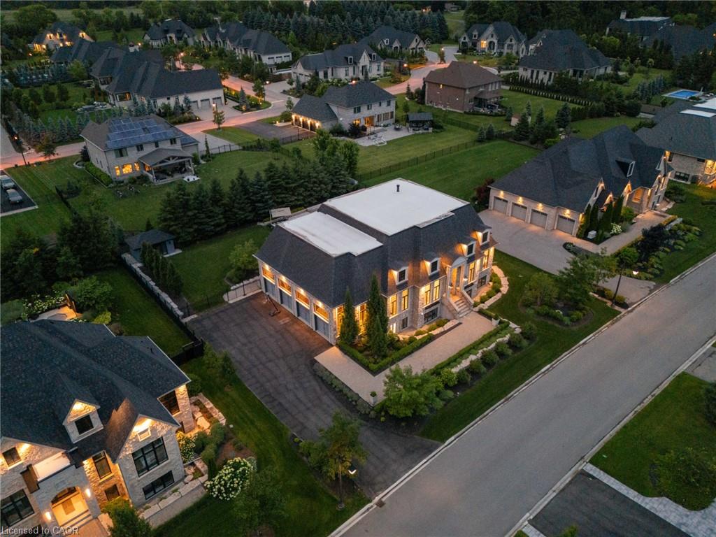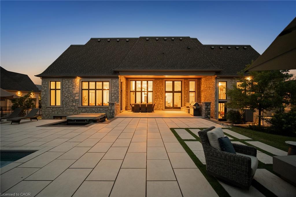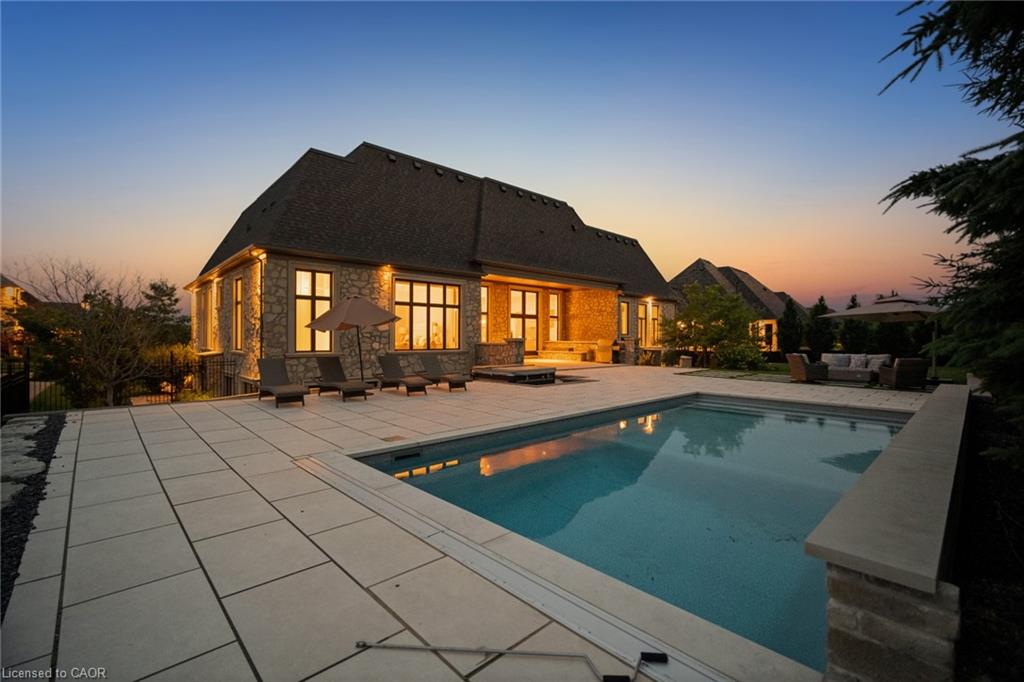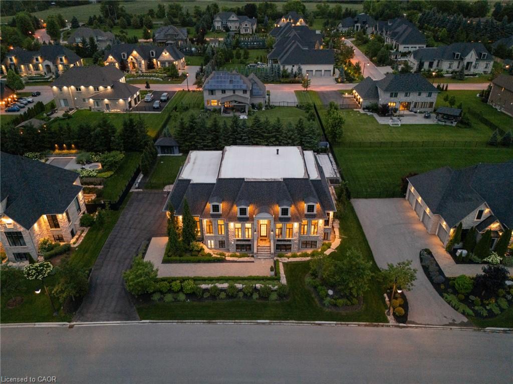Set On A Sprawling Half-Acre Property Within The Exclusive Gated Enclave Of Heritage Lake Estates, This Custom-Built, Net-Zero Ready Bungalow Showcases Outstanding Craftsmanship, Cutting-Edge Efficiency, And Refined Modern Style. Offering More Than 6,000 Sq Ft Of Beautifully Finished Living Space, This Natural Stone Residence Is Fully Equipped With Smart Home Integration, Built-In Audio, A Private Theatre Room, And Heated Floors For Year-Round Comfort. Featuring 3+2 Bedrooms And 4 Bathrooms, Plus A 4-Car Attached Garage, The Home Is Designed For Both Everyday Luxury And Exceptional Entertaining. The Open-Concept Main Level Is Highlighted By Soaring 14- And 12-Foot Ceilings, Rich Hardwood Flooring, And Expansive Windows That Frame Views Of The Resort-Style Backyard. A Chef-Inspired Kitchen Anchors The Space With A Large Island, Premium Built-In Appliances, And A Separate Butler’s Pantry. The Living Room Features A Gas Fireplace And Dramatic Floor-To-Ceiling Glass, While A Dedicated Office, Mudroom, Convenient Laundry Room, And Additional Bedrooms Add Function And Flexibility. The Main-Floor Primary Retreat Offers A Spa-Calibre 5-Piece Ensuite. The Bright Lower Level Includes 9-Foot Ceilings, Above-Grade Windows, A Spacious Recreation Area With Fireplace, A Theatre Room, And Two Additional Bedrooms. Outdoors, Enjoy A Professionally Landscaped Oasis With An In-Ground Pool, Hot Tub, Patio Areas, And A Private Cabana. Ideally Situated With Easy Access To Cambridge And Guelph, This Is A Truly Exceptional Estate Home.