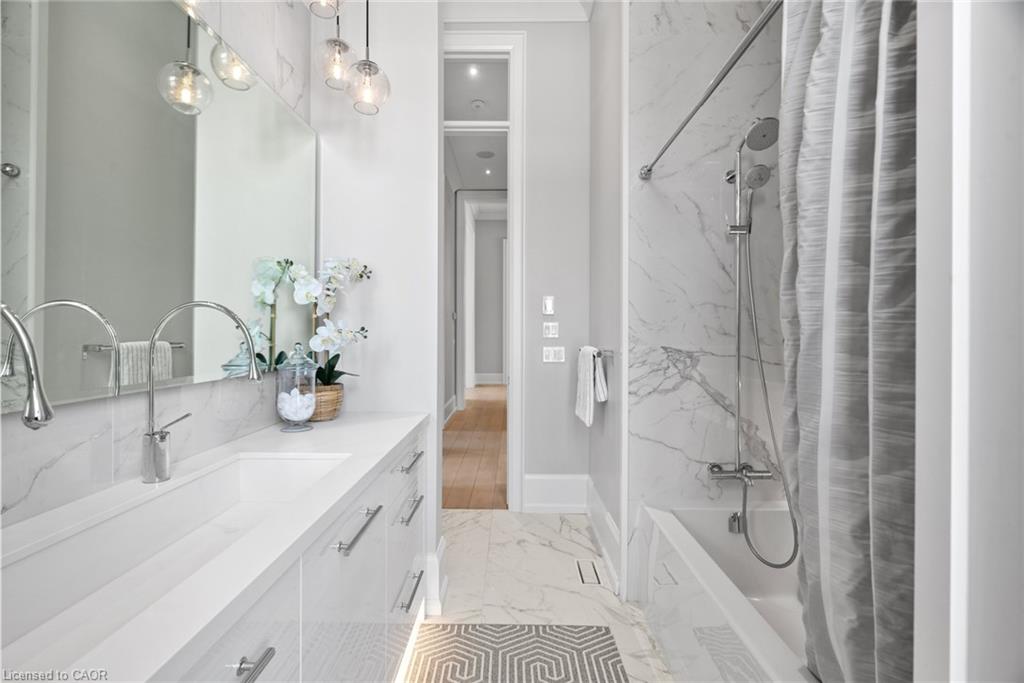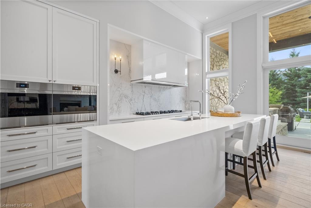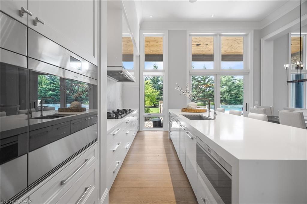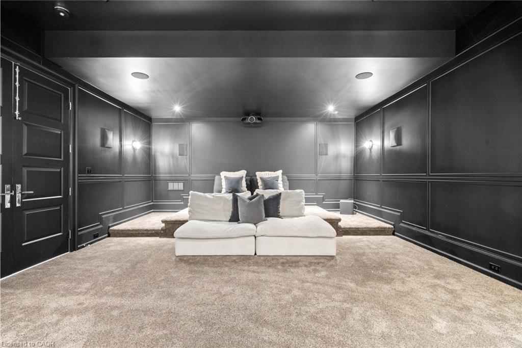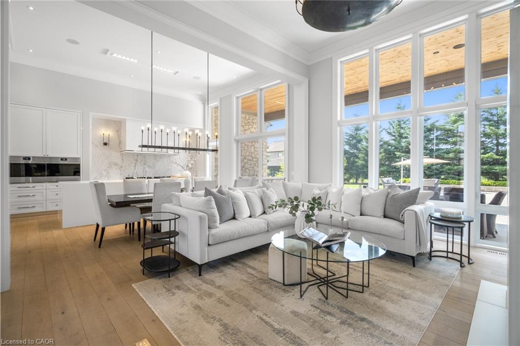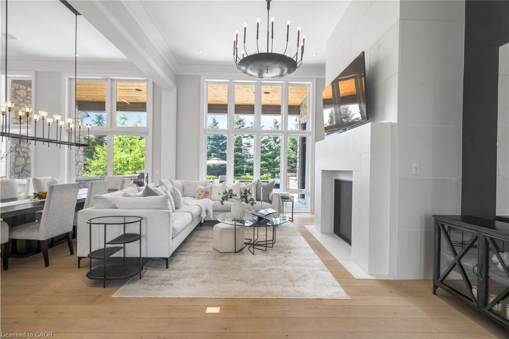 Set On A Sprawling Half-Acre Property Within The Exclusive Gated Enclave Of Heritage Lake Estates, This Custom-Built, Net-Zero Ready Bungalow Showcases Outstanding Craftsmanship, Cutting-Edge Efficiency, And Refined Modern Style. Offering More Than 6,000 Sq Ft Of Beautifully Finished Living Space, This Natural Stone Residence Is Fully Equipped With Smart Home Integration, Built-In Audio, A Private Theatre Room, And Heated Floors For Year-Round Comfort. Featuring 3+2 Bedrooms And 4 Bathrooms, Plus A 4-Car Attached Garage, The Home Is Designed For Both Everyday Luxury And Exceptional Entertaining. The Open-Concept Main Level Is Highlighted By Soaring 14- And 12-Foot Ceilings, Rich Hardwood Flooring, And Expansive Windows That Frame Views Of The Resort-Style Backyard. A Chef-Inspired Kitchen Anchors The Space With A Large Island, Premium Built-In Appliances, And A Separate Butler’s Pantry. The Living Room Features A Gas Fireplace And Dramatic Floor-To-Ceiling Glass, While A Dedicated Office, Mudroom, Convenient Laundry Room, And Additional Bedrooms Add Function And Flexibility. The Main-Floor Primary Retreat Offers A Spa-Calibre 5-Piece Ensuite. The Bright Lower Level Includes 9-Foot Ceilings, Above-Grade Windows, A Spacious Recreation Area With Fireplace, A Theatre Room, And Two Additional Bedrooms. Outdoors, Enjoy A Professionally Landscaped Oasis With An In-Ground Pool, Hot Tub, Patio Areas, And A Private Cabana. Ideally Situated With Easy Access To Cambridge And Guelph, This Is A Truly Exceptional Estate Home.