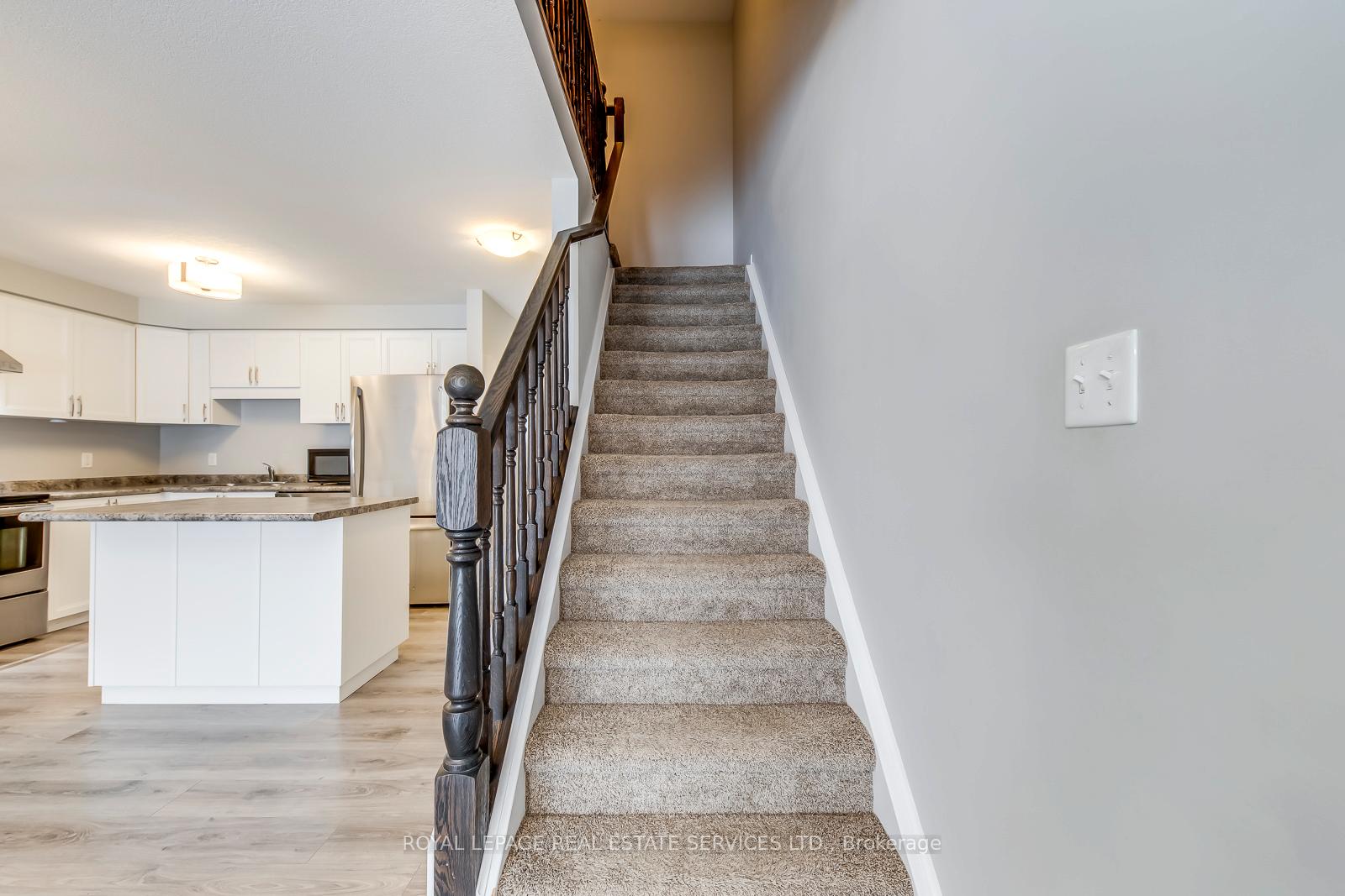 Beautiful FREEHOLD townhouse, Great location situated in the highly sought-after Doon South neighbourhood of Kitchener, minutes to Hwy 401 and walk distance to scenic trails, parks, top-rated schools and Amenities.. This bright and spacious home with plenty of natural light and new flooring throughout. Modern kitchen featuring a gorgeous granite counter top perfect for entertaining. Three generous bedrooms with ample closet space, two full bathrooms including a large main bath, and a private ensuite off the primary bedroom. The basement offers loads of potential and includes a rough-in for a 3-piece bathroom. Walkout patio from living room, functional layout, and stylish finishes. Vacant.