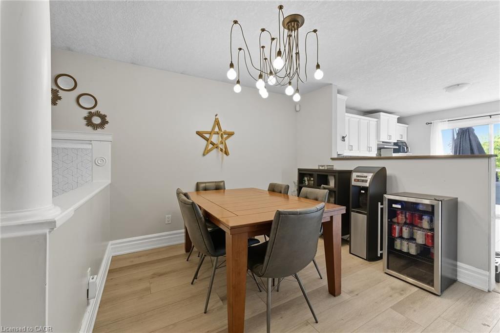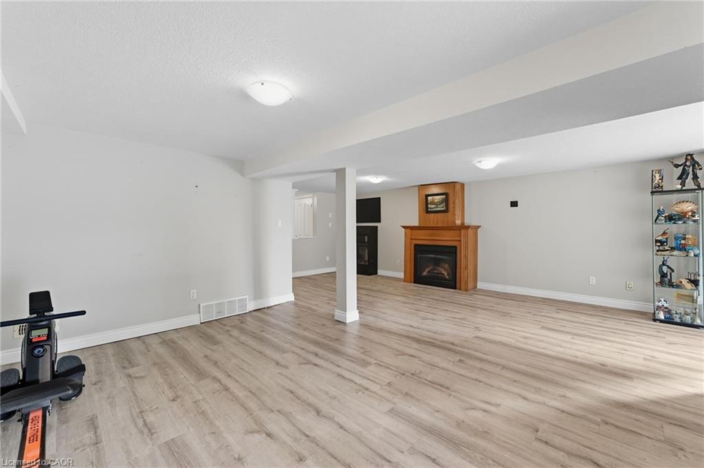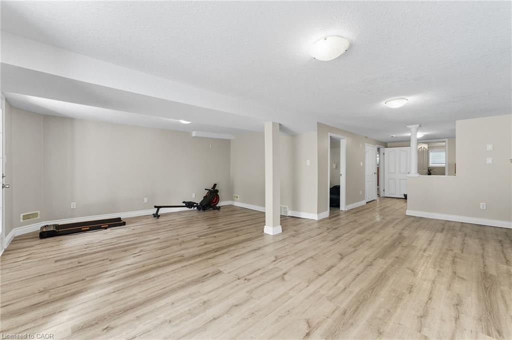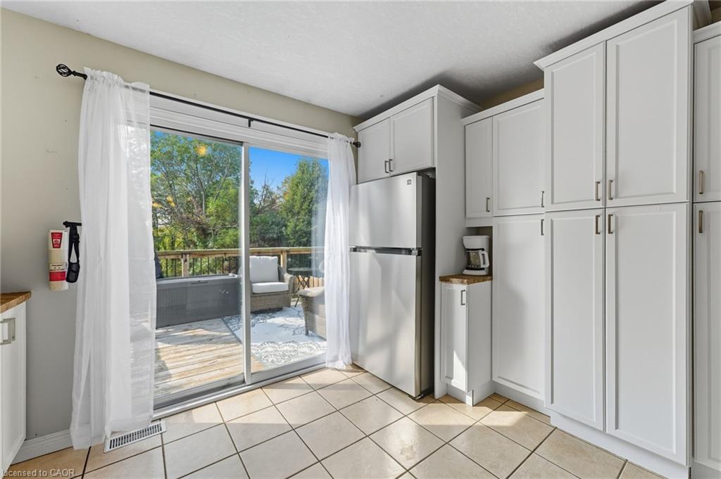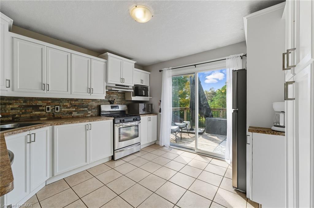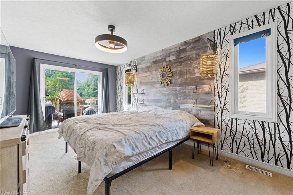 Prime location and spacious home! In the family friendly and desirable area of north Hespeler, minutes to the core, trails, and the highway! Walk out basement, backing onto beautiful green space! 4 bedrooms, 2 bathrooms. 1 car garage and parking for 4 cars in the driveway! Welcoming porch, spacious foyer, the main floor is spacious open and bight, featuring newer flooring, and two new front windows. The heart of the home is the open kitchen, dining, and living room area, but this backyard is a true dream. Convienient main floor primary bedroom with sliding patio doors to the deck, large walk in closet, en suite privilege, and an additional main floor bedroom. The basement is large and has Inlaw suite potential, featuring 2 additional bedrooms, a 3 piece bathroom, laundry room, and a very large rec room with gas fireplace and sliding patio door out to this amazing deck and yard!! UPDATES include: Furnace and AC (2019), Roof shingles (2019), above ground pool and pool equipment (2020), water softener (2024), appliances within past 5 years (except for the fridge), hot water heater (2024), back fence (2020) (the backyard extends to the furthest fence this black fence was so the pool was compliant. — Beautiful back deck and yard, truly amazing. Book your showing ASAP!