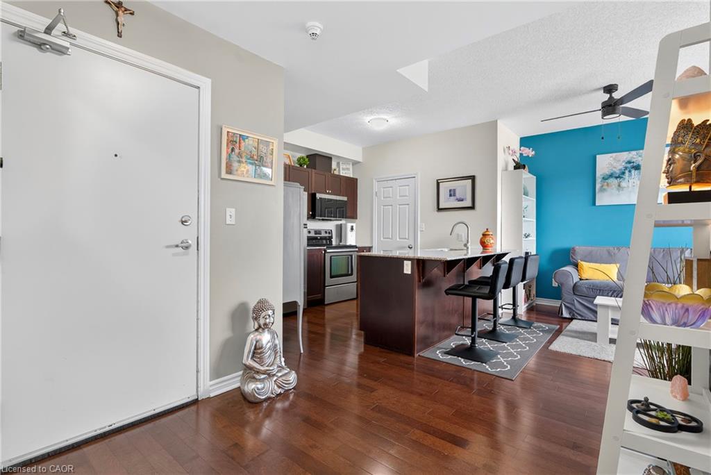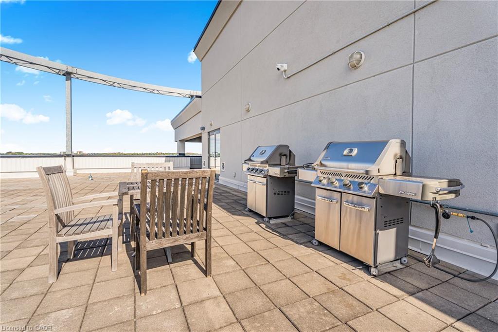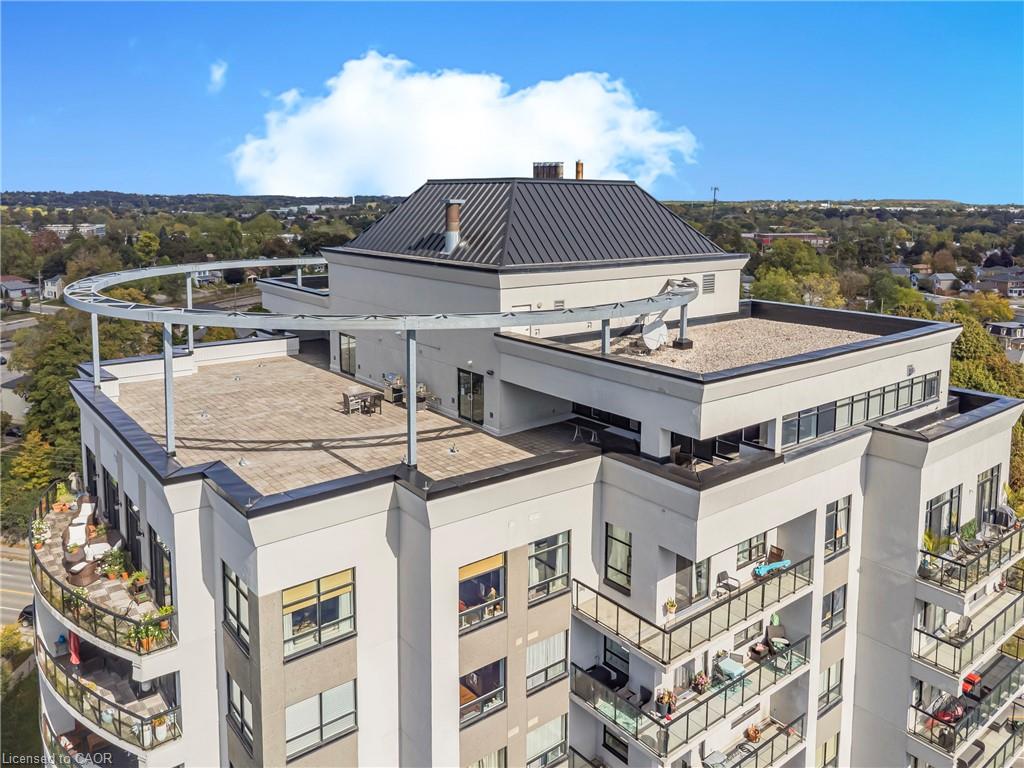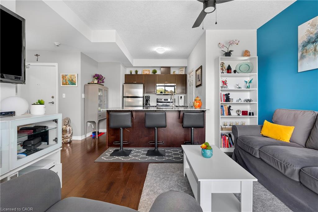 FANTASTIC HOME FOR SALE AT WATERSCAPE ON THE GRAND RIVER! This charming 2-bedroom condo perfectly positioned along the Grand River and just moments from historic Downtown Galt. Park your car in the secure underground garage and step into a lifestyle where everything is within walking distance — scenic riverfront trails, boutique shops, fine dining, the Dunfield Theatre, outdoor patios, and more. Designed for modern living, the open-concept layout is ideal for entertaining. Large sliding doors lead to a private, covered balcony, offering peaceful views and an extended outdoor living space. The bright kitchen features ample cabinetry, stainless steel appliances, and granite countertops, while the convenience of in-suite laundry makes daily living effortless. This well-maintained building offers secure entry, an owned parking space, and a dedicated storage locker. Residents also enjoy access to a fitness room and a stunning rooftop patio complete with gas BBQs — the perfect spot to unwind or host guests while taking in the view. Live the urban riverside lifestyle just steps from the Cambridge Mill — whether you’re indulging in a gourmet meal or enjoying a quiet walk along the water. Book your private tour today and experience the best of Cambridge condo living!