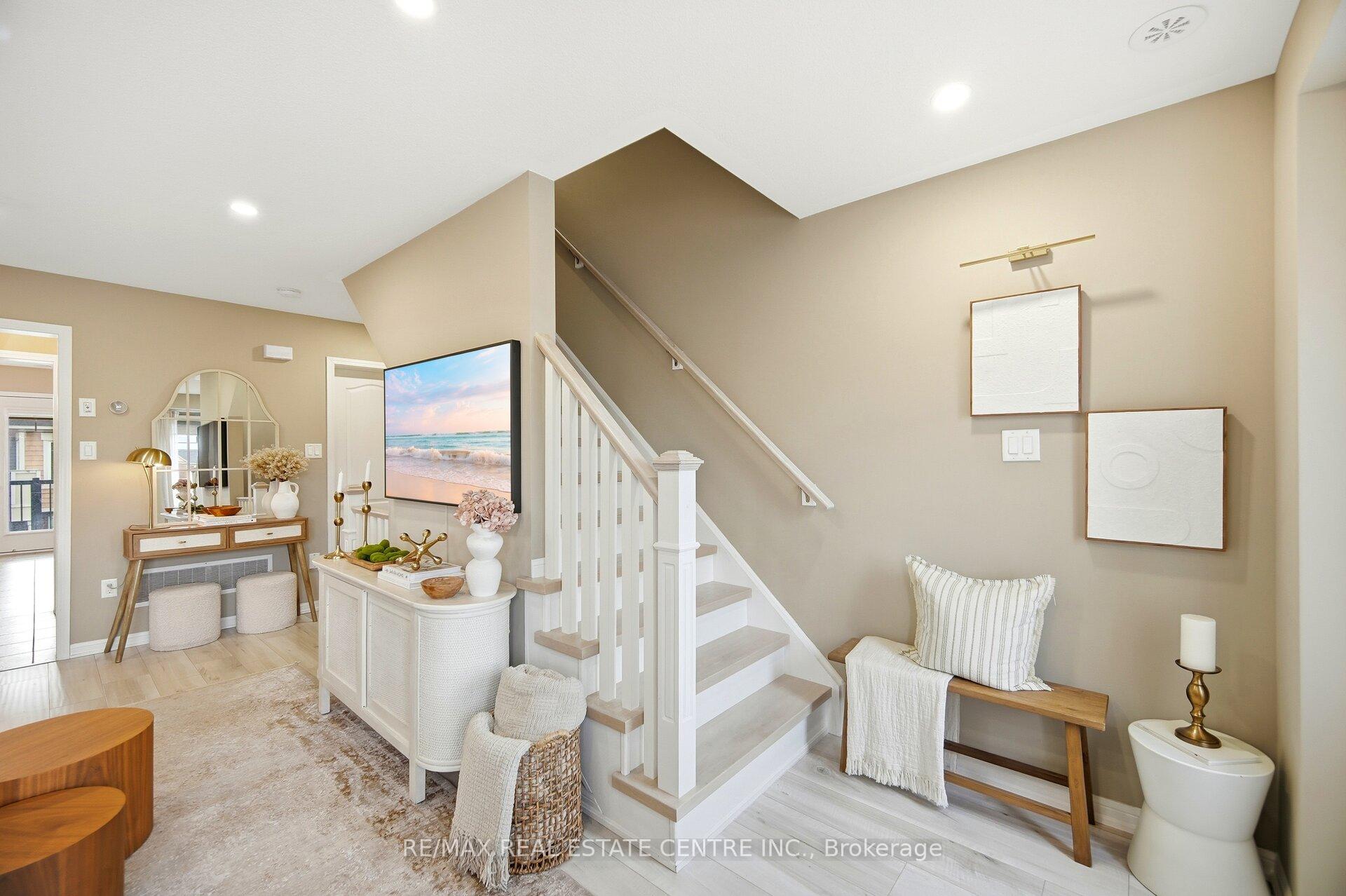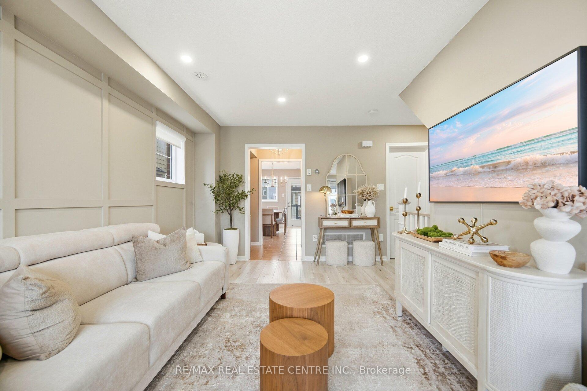 Bright and well-maintained freehold END UNIT townhome offering a functional multi-level layout in a family-friendly neighborhood. The open concept living area features wall paneling, pot lights, wide plank flooring, and large windows providing excellent natural light. Welcoming front foyer with additional flex space ideal for a home office or sitting area. Attractive brick exterior with private entrance and great curb appeal. Spacious kitchen includes ample cabinetry, stainless steel appliances, full size dining area with a walk-out to a private balcony perfect for everyday living and entertaining. Upstairs offers spacious bedrooms with generous closet space and neutral finishes, including a sun-filled primary bedroom. Bathrooms are clean and updated, including a convenient powder room. Garage access to the home. Move-in ready and ideal for first-time buyers, professionals, or families. Surrounding the home are numerous paths and trails, perfect for leisurely walks and biking adventures. Conveniently located just minutes away from Kelso Conservation Area, Downtown freehold Milton, several shopping plazas, Milton’s Education Village and Wilfred Laurier University Milton Campus.