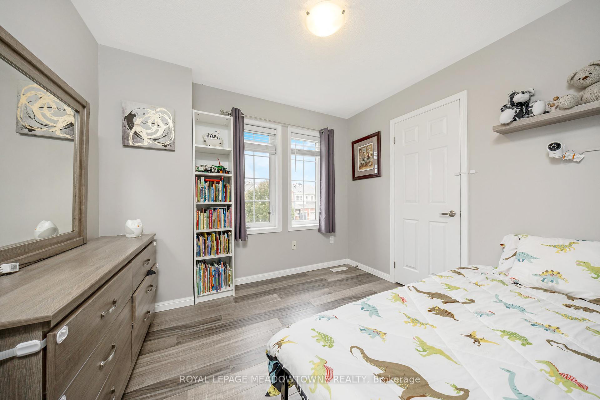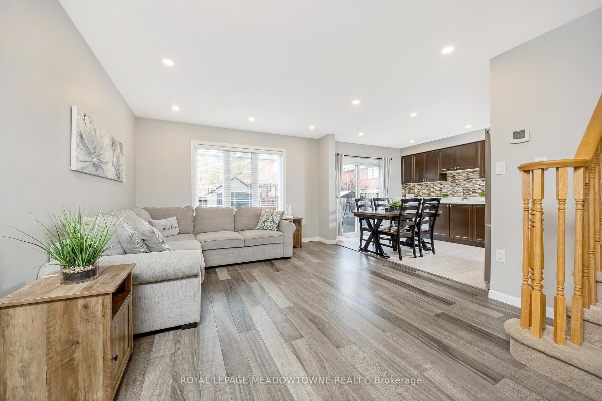 FABULOUS! Mattamy built Amesbury Energy Star Model 3 bedroom 3 bathroom townhome located in family friendly area of Coates in Milton. The open concept main floor offers high end waterproof laminate flooring throughout the home, combined living room and dining room with a stone accent wall, large eat in kitchen with quartz counter tops, stainless steel appliances, pantry, access to the garage, and walk out to the backyard. The 2nd level has 3 bedrooms and a4pc bathroom with quartz countertops, the primary with a large walk in closet with organizer and semi-ensuite to the main bath. The finished basement that was spray foamed insulated in2020, offers a beautiful 3 pc bathroom with quartz countertops, stand up shower with rain shower faucet, lots of storage space, and finished laundry room with front loading washer and dryer, and quartz countertops. The home comes with all HVAC equipment owned no monthly rentals, Furnace, Central Air, Hot Water Tank (2024), Sump Pump (2023). Spray foam insulation was added to the attic in 2023 and the ducts were cleaned in 2023. The well maintained backyard has a patio and garden shed. The home is truly move in ready! Superb location… walk to many amenities and schools. Close to all HWY’s. It’s a magnificent property.