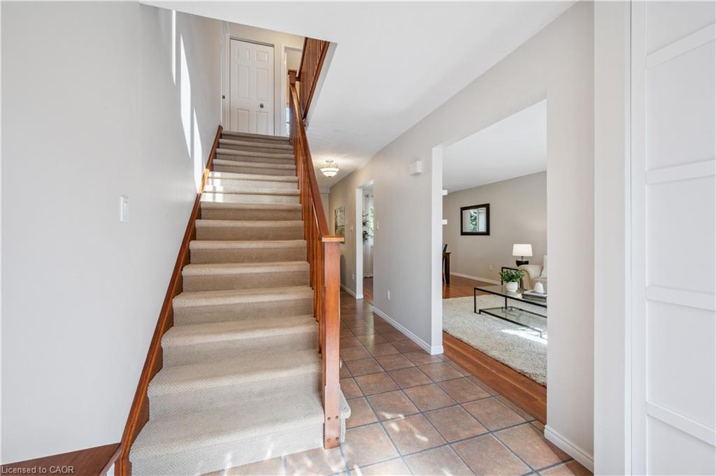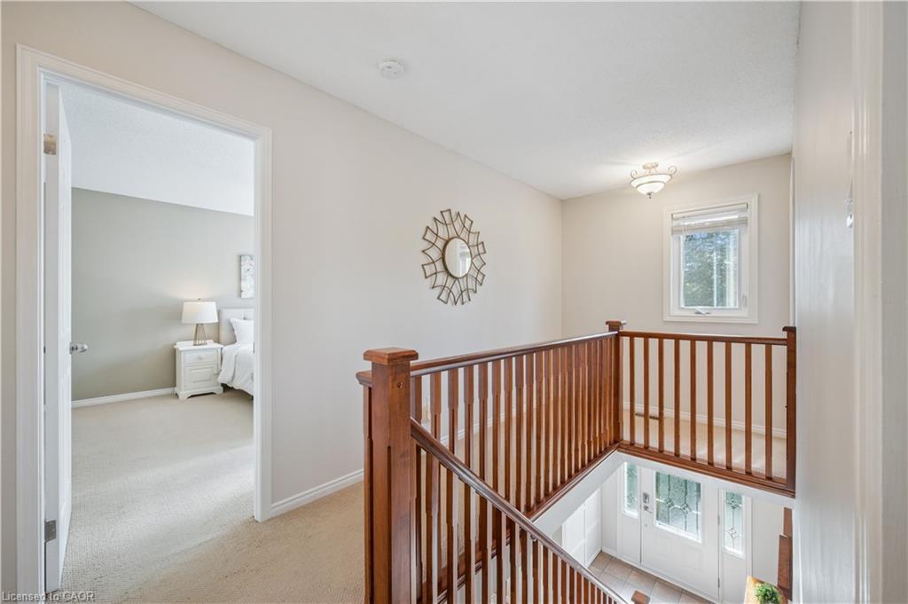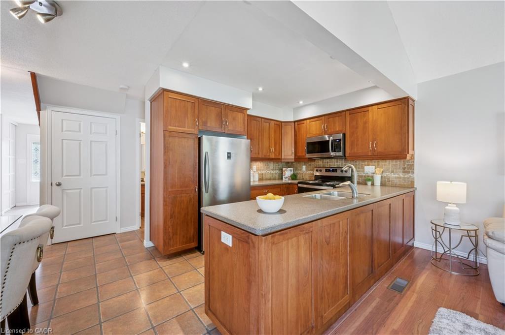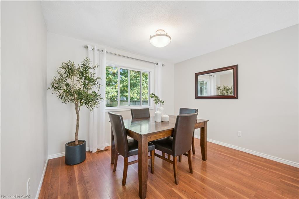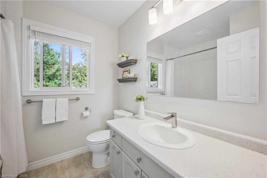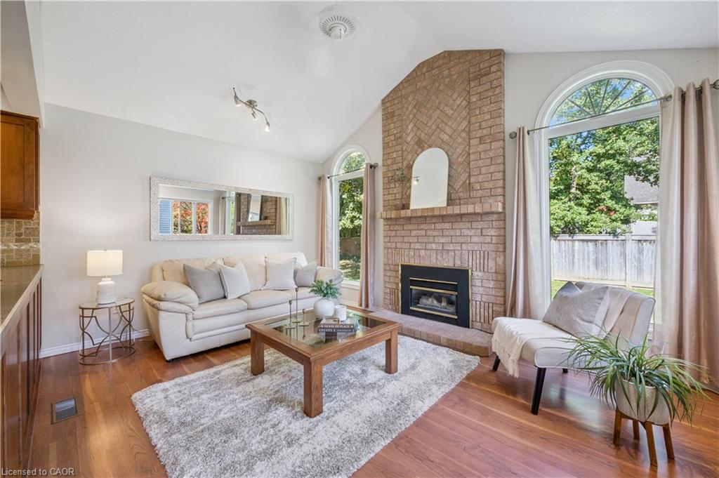 WELCOME TO YOUR NEW HOME! Discover the perfect blend of comfort and convenience in this inviting 3-bedroom, 2.5-bathroom home, ideally located near Laurel Creek Conservation Area and the St. Jacob’s Farmers’ Market. The bright and welcoming family room is a true highlight, featuring a soaring cathedral ceiling, a cozy gas fireplace, and expansive windows that flood the space with natural light. The main floor boasts 8 ft ceilings and large windows. The updated kitchen features Corian counters, cherry wood cabinets, luxury appliances (Insignia refrigerator, Whirlpool stove, and Bosch dishwasher) and offers an eat-in dinette area. The living room and dining room space is large and allows more formal dining or makes a great main floor office space. The bathrooms have numerous updates and upstairs includes a private primary ensuite and refreshed main bath, bringing a modern touch to this family home. The finished basement offers even more living space with a versatile recreation room and a den—perfect for a home office, hobby space, or guest area. With a sought-after location close to trails, excellent schools, and amenities, this home offers the lifestyle you’ve been searching for. Book your Showing today!