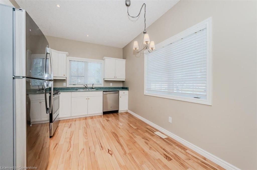 Set on a low traffic crescent in the sought after Eastbridge neighbourhood. Close to the trails and amenities of Rim Park, Conestoga Mall and the LRT and more. This rarely found bungalow end unit freehold (no condo fees!) is attached above ground only at the garage and sits on a lovely landscaped bend lot. Perfect for downsizers or those just starting out this bright and airy home has been freshly painted, has all new carpet and gorgeous wood floors. The spacious kitchen features 3 stainless appliances, crown moulding and under cabinet lighting. The primary bedroom is a great size and would fit a king size bed, has double closets and a 4 piece ensuite privilege. The large living room has tall windows and a double French door walkout allowing the sun to shine in! The huge basement provides plenty of options with a great recroom with corner gas fireplace, another 4 piece bathroom and a den/bedroom. There’s also utility, laundry and storage rooms down. Mechanicals include, forced air gas heating, water softener, heater and filtration system as well as sump pump with battery back up. Other features include stamped walkways and patio, soffit lighting, upper level laundry roughed in and all window coverings. Book your viewing today!