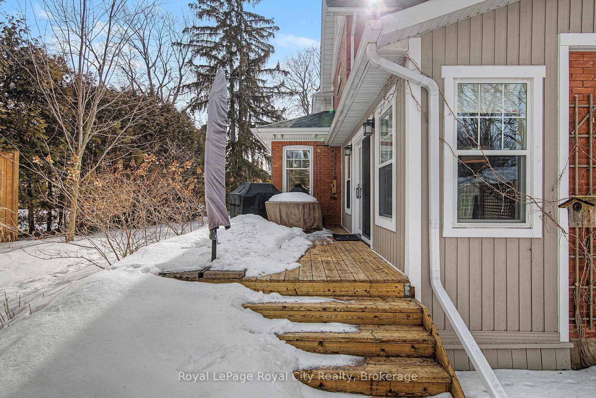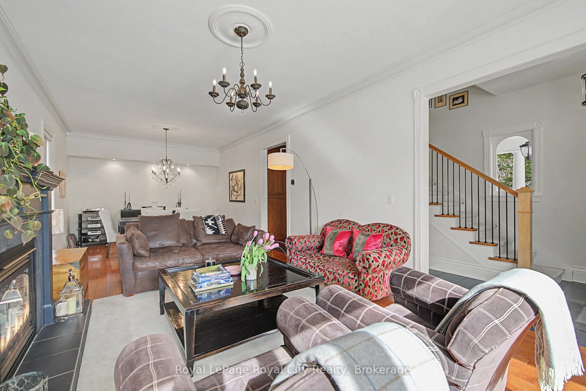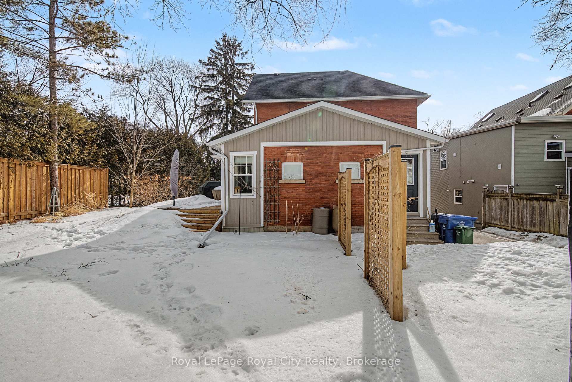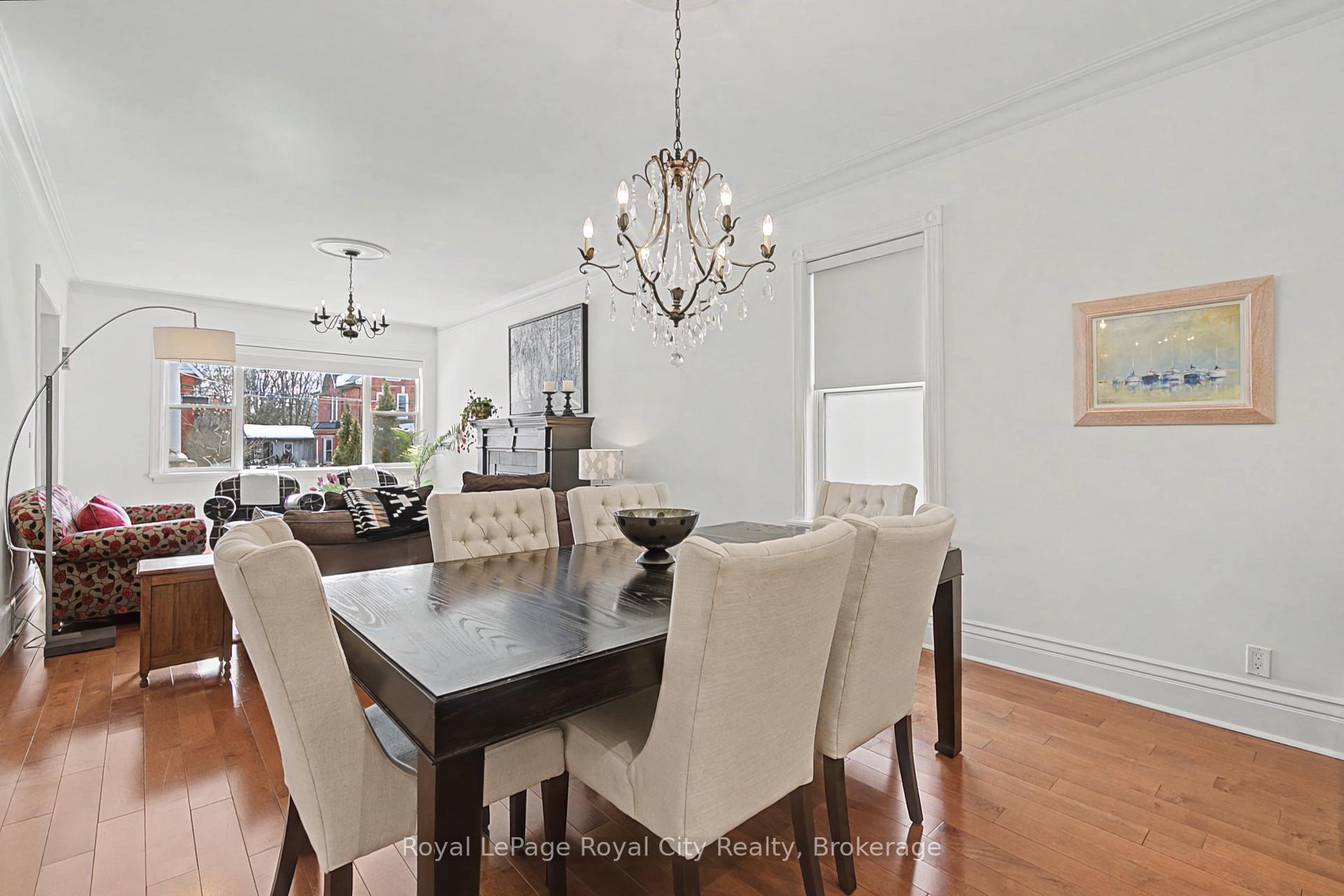This exquisite century brick two-story home, set on one of Guelph’s most desirable streets, greets you with an immediate sense of charm. Ideally located within walking distance to downtown, the market, cafés, shopping, schools, parks and more, this gem offers an unbeatable lifestyle. Start your mornings or unwind in the evenings on the gorgeous wrap-around covered porch-perfect for coffee, a book, or a glass of wine. The mature landscaping and fenced yard provide privacy, whether you’re relaxing on the porch or enjoying the private deck off the family room. Inside, the main level welcomes you with a formal living room, a focal fireplace, formal dining room and a beautifully renovated kitchen featuring a large center island-perfect for entertaining with a walkout to the porch. At the rear, the family room is a standout, adorned with exquisite millwork and built-in cabinetry. Upstairs, you’ll find three spacious bedrooms, including a primary suite with a luxurious ensuite. The upper level also boasts a nicely finished four-piece bath and a bright, wrap-around window office-ideal for remote work. Every detail has been meticulously cared for-mechanicals, finishes, and updates-all ensuring this home is truly move-in ready. Pride of ownership is evident, and the sellers, who are returning to the UK, have loved this home. Soon, it will be yours to cherish. Homes like this are truly few and far between-don’t miss your chance!