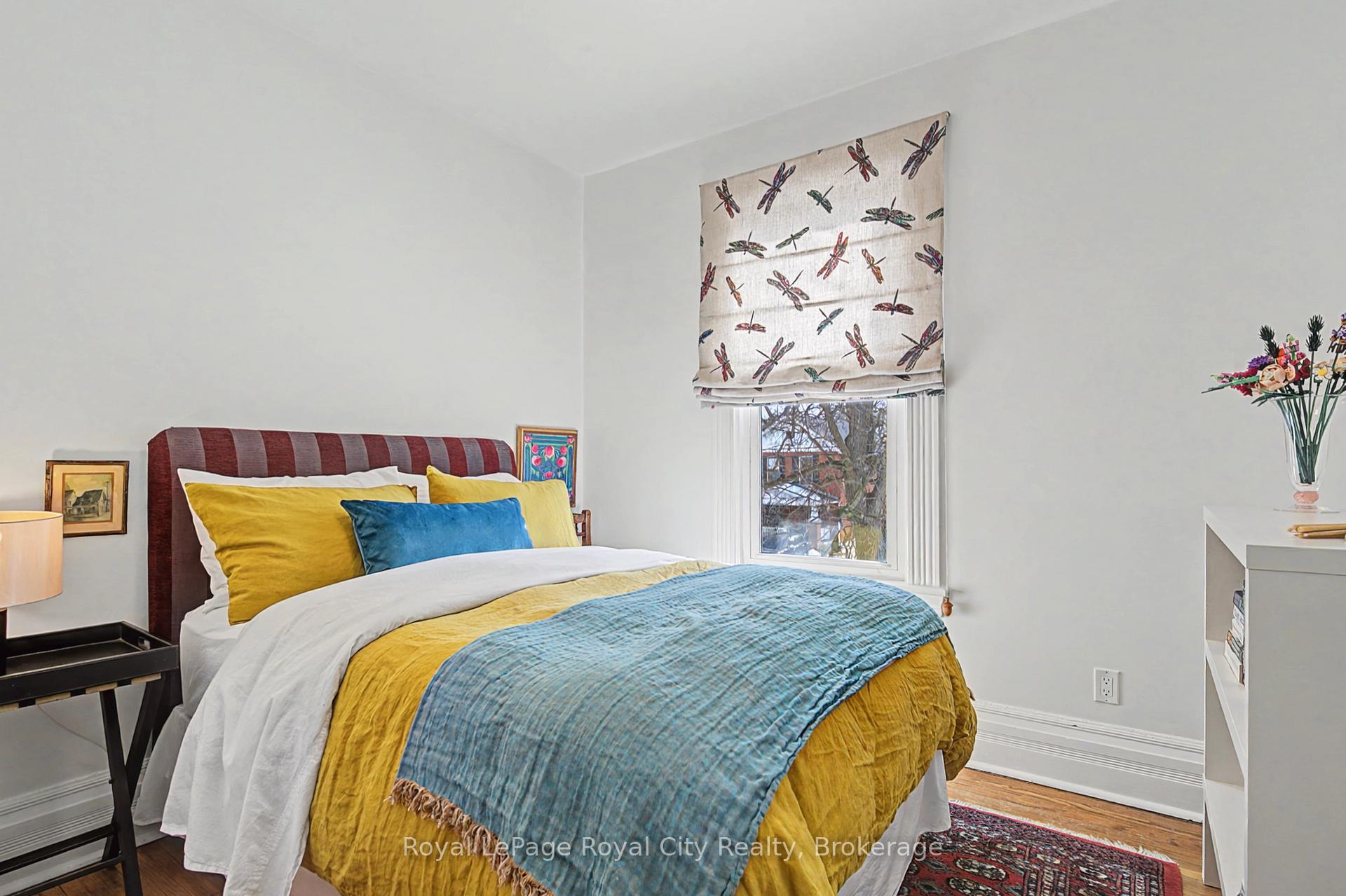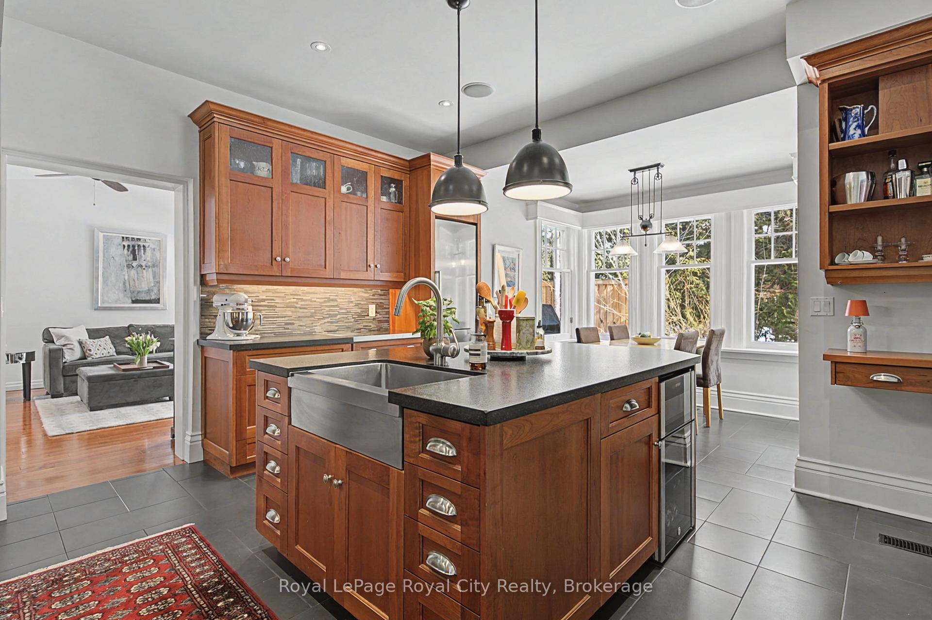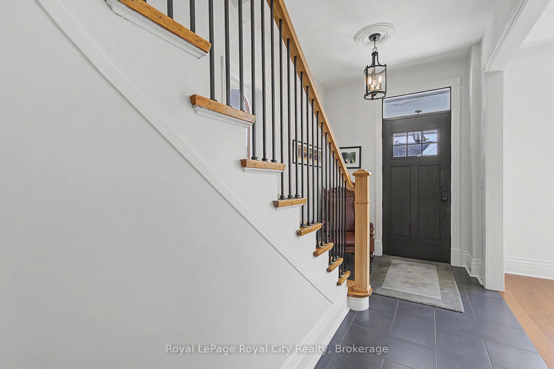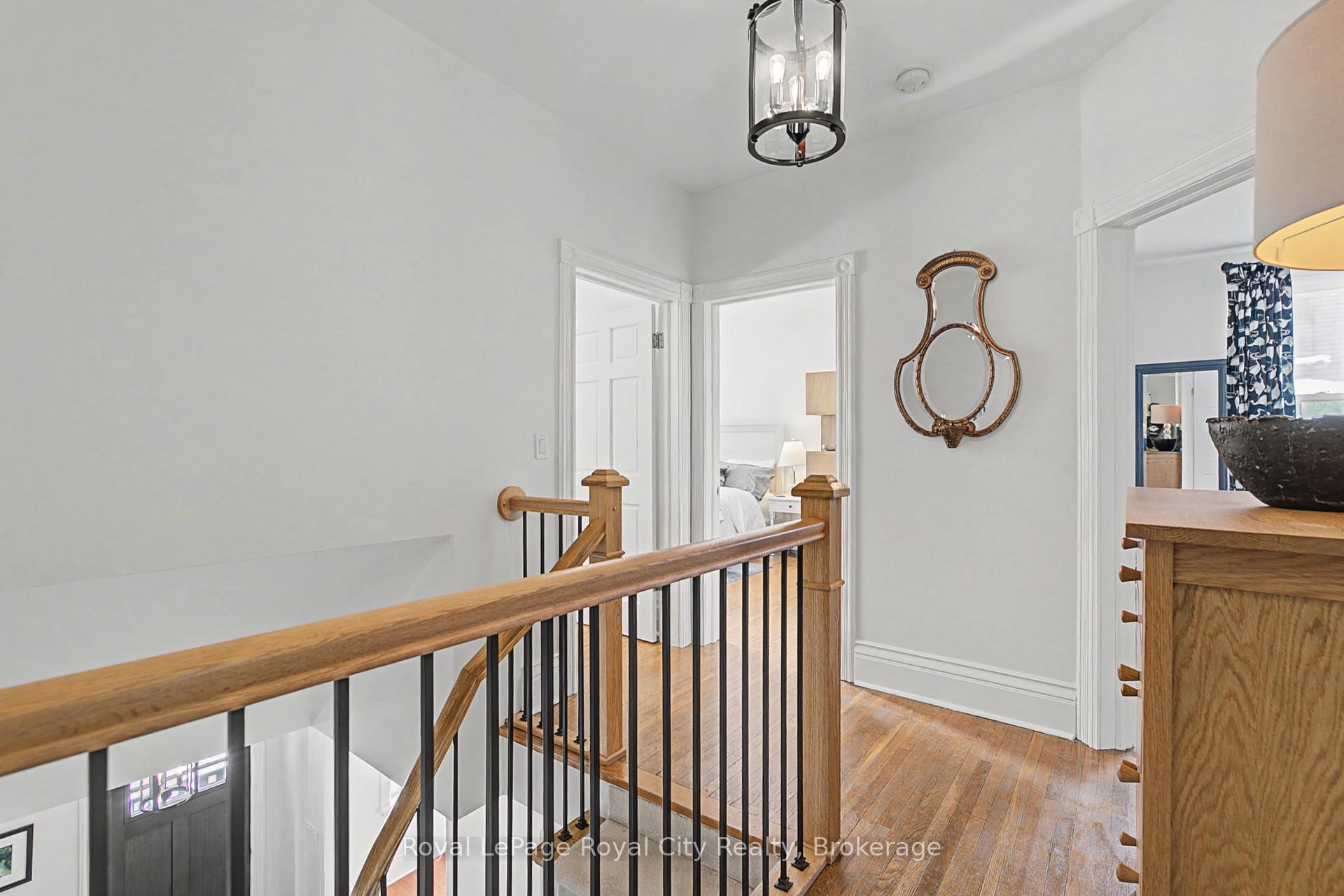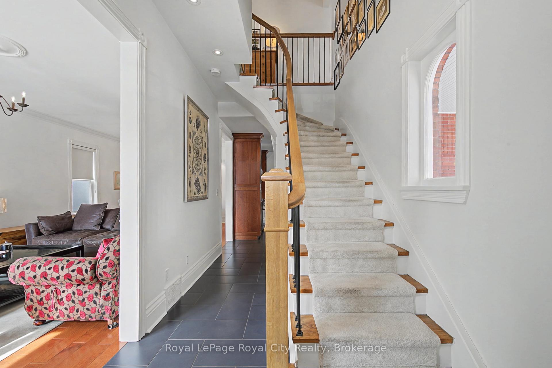 This exquisite century brick two-story home, set on one of Guelph’s most desirable streets, greets you with an immediate sense of charm. Ideally located within walking distance to downtown, the market, cafés, shopping, schools, parks and more, this gem offers an unbeatable lifestyle. Start your mornings or unwind in the evenings on the gorgeous wrap-around covered porch-perfect for coffee, a book, or a glass of wine. The mature landscaping and fenced yard provide privacy, whether you’re relaxing on the porch or enjoying the private deck off the family room. Inside, the main level welcomes you with a formal living room, a focal fireplace, formal dining room and a beautifully renovated kitchen featuring a large center island-perfect for entertaining with a walkout to the porch. At the rear, the family room is a standout, adorned with exquisite millwork and built-in cabinetry. Upstairs, you’ll find three spacious bedrooms, including a primary suite with a luxurious ensuite. The upper level also boasts a nicely finished four-piece bath and a bright, wrap-around window office-ideal for remote work. Every detail has been meticulously cared for-mechanicals, finishes, and updates-all ensuring this home is truly move-in ready. Pride of ownership is evident, and the sellers, who are returning to the UK, have loved this home. Soon, it will be yours to cherish. Homes like this are truly few and far between-don’t miss your chance!