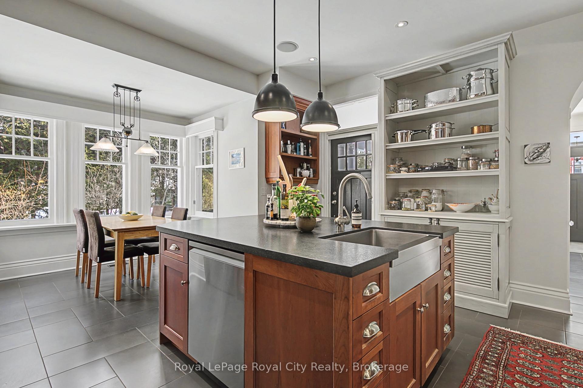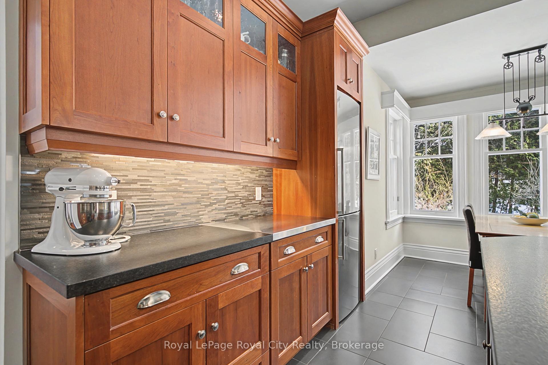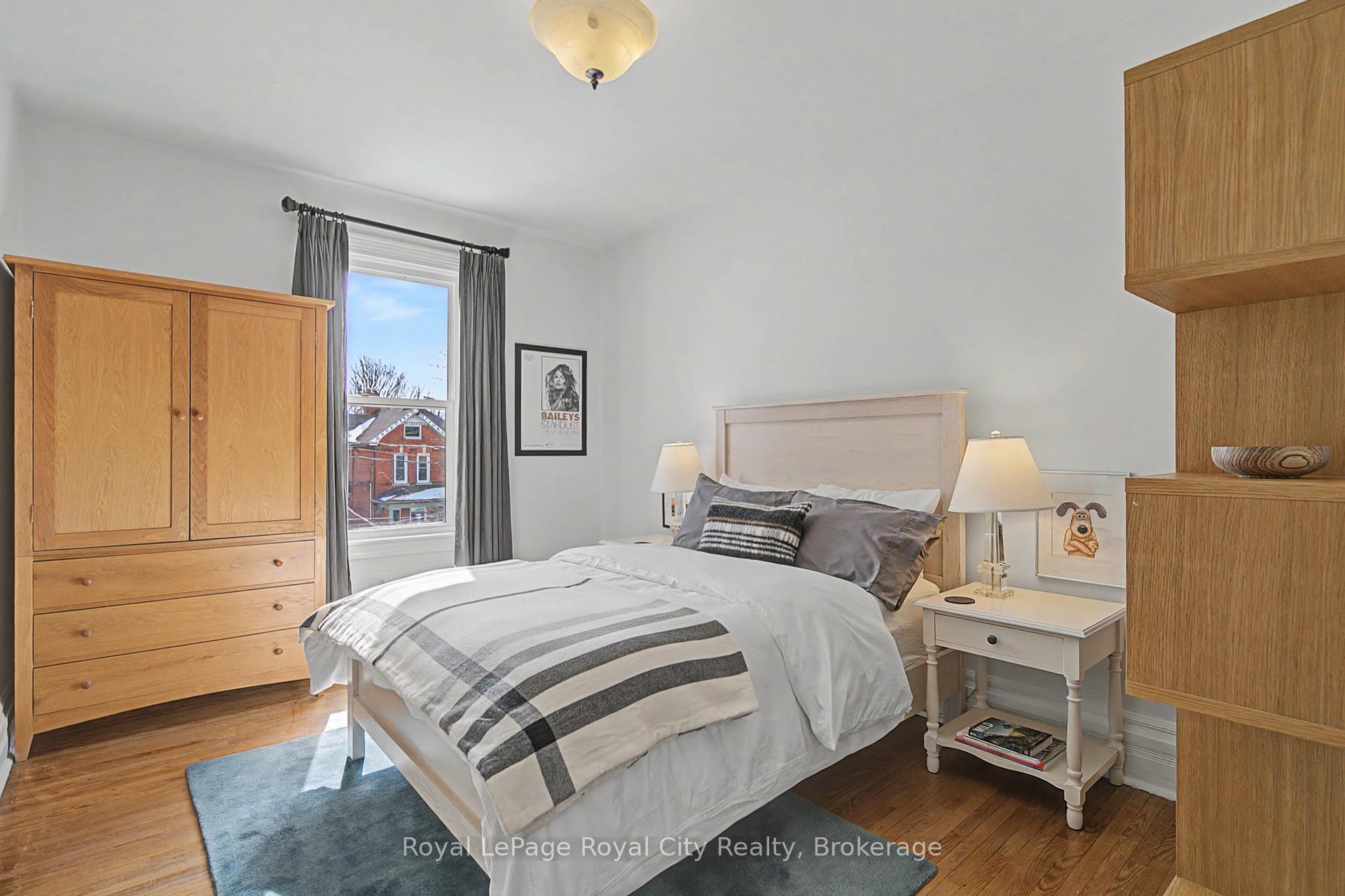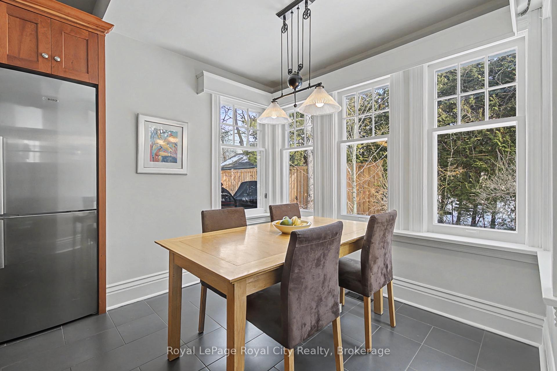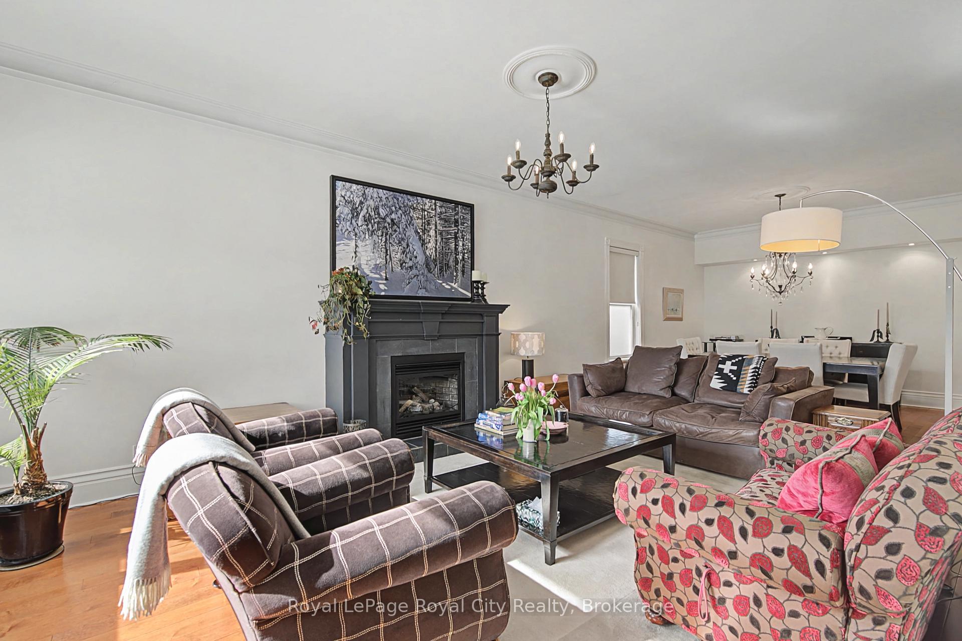 This exquisite century brick two-story home, set on one of Guelph’s most desirable streets, greets you with an immediate sense of charm. Ideally located within walking distance to downtown, the market, cafés, shopping, schools, parks and more, this gem offers an unbeatable lifestyle. Start your mornings or unwind in the evenings on the gorgeous wrap-around covered porch-perfect for coffee, a book, or a glass of wine. The mature landscaping and fenced yard provide privacy, whether you’re relaxing on the porch or enjoying the private deck off the family room. Inside, the main level welcomes you with a formal living room, a focal fireplace, formal dining room and a beautifully renovated kitchen featuring a large center island-perfect for entertaining with a walkout to the porch. At the rear, the family room is a standout, adorned with exquisite millwork and built-in cabinetry. Upstairs, you’ll find three spacious bedrooms, including a primary suite with a luxurious ensuite. The upper level also boasts a nicely finished four-piece bath and a bright, wrap-around window office-ideal for remote work. Every detail has been meticulously cared for-mechanicals, finishes, and updates-all ensuring this home is truly move-in ready. Pride of ownership is evident, and the sellers, who are returning to the UK, have loved this home. Soon, it will be yours to cherish. Homes like this are truly few and far between-don’t miss your chance!