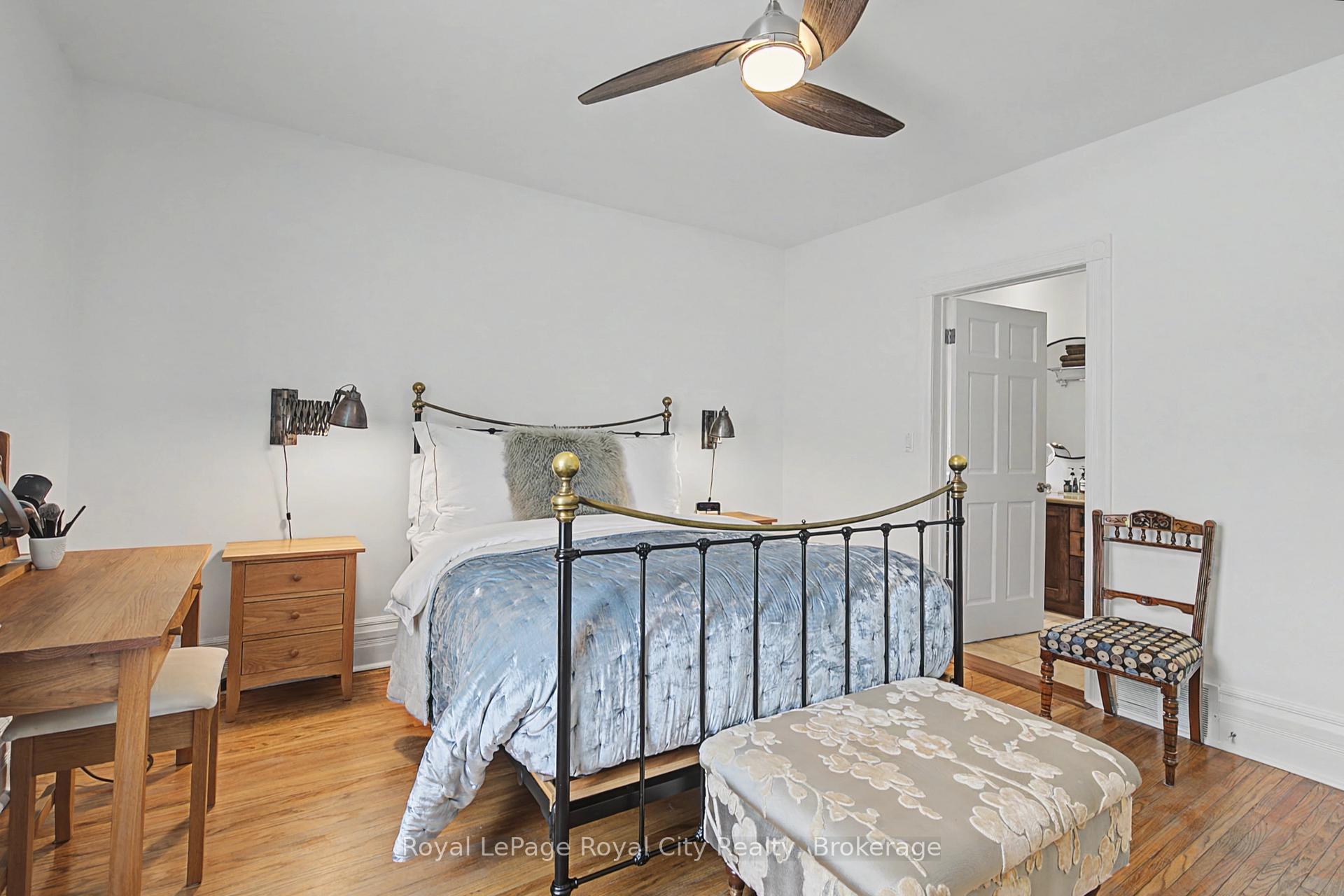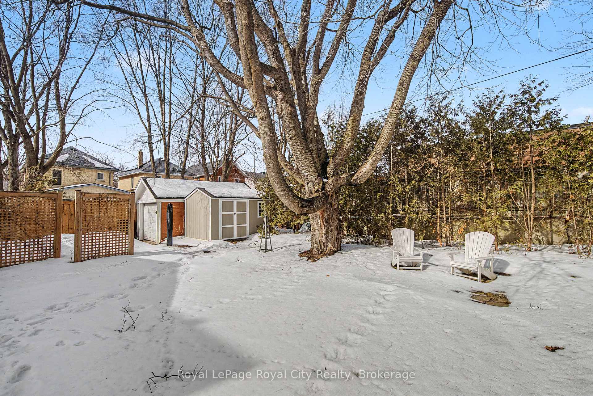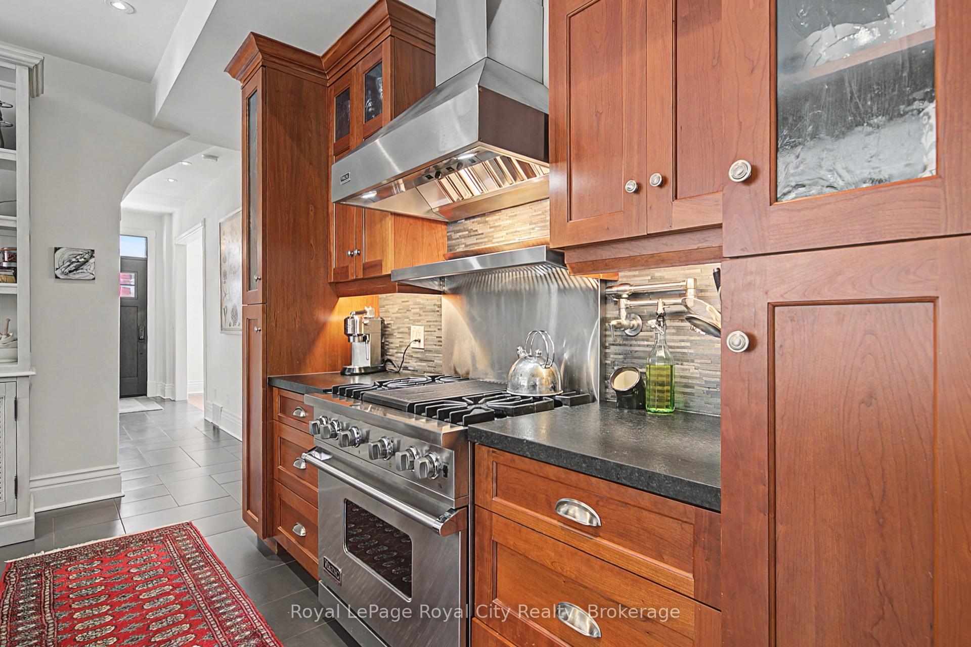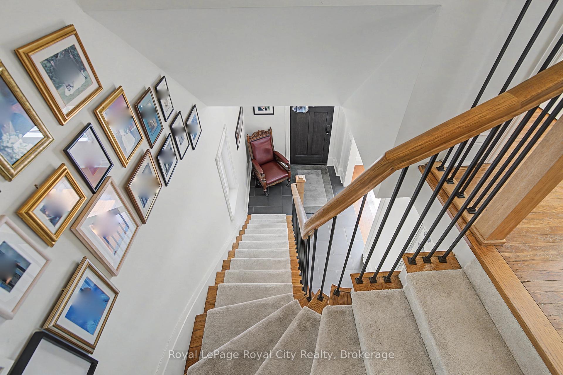 This exquisite century brick two-story home, set on one of Guelph’s most desirable streets, greets you with an immediate sense of charm. Ideally located within walking distance to downtown, the market, cafés, shopping, schools, parks and more, this gem offers an unbeatable lifestyle. Start your mornings or unwind in the evenings on the gorgeous wrap-around covered porch-perfect for coffee, a book, or a glass of wine. The mature landscaping and fenced yard provide privacy, whether you’re relaxing on the porch or enjoying the private deck off the family room. Inside, the main level welcomes you with a formal living room, a focal fireplace, formal dining room and a beautifully renovated kitchen featuring a large center island-perfect for entertaining with a walkout to the porch. At the rear, the family room is a standout, adorned with exquisite millwork and built-in cabinetry. Upstairs, you’ll find three spacious bedrooms, including a primary suite with a luxurious ensuite. The upper level also boasts a nicely finished four-piece bath and a bright, wrap-around window office-ideal for remote work. Every detail has been meticulously cared for-mechanicals, finishes, and updates-all ensuring this home is truly move-in ready. Pride of ownership is evident, and the sellers, who are returning to the UK, have loved this home. Soon, it will be yours to cherish. Homes like this are truly few and far between-don’t miss your chance!