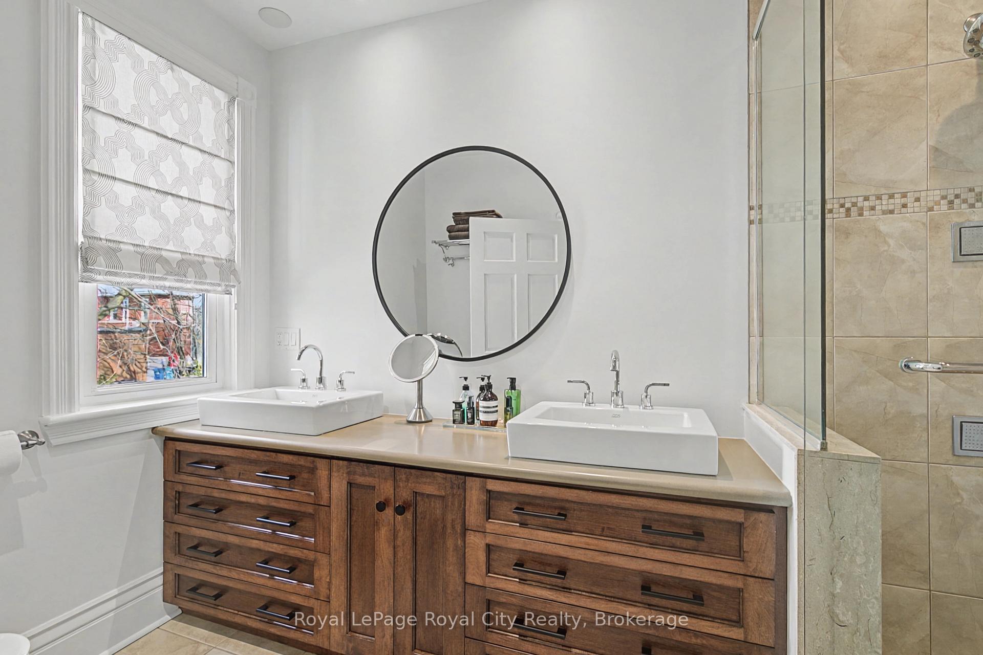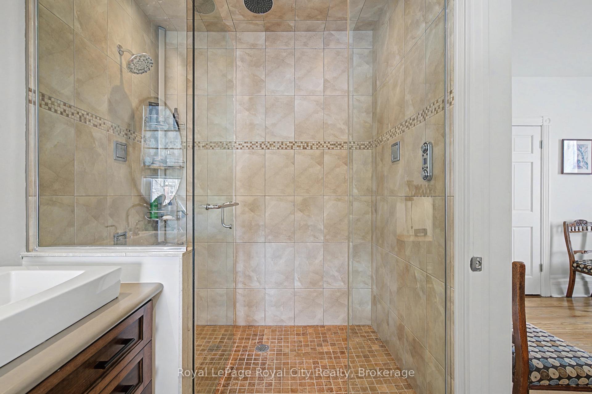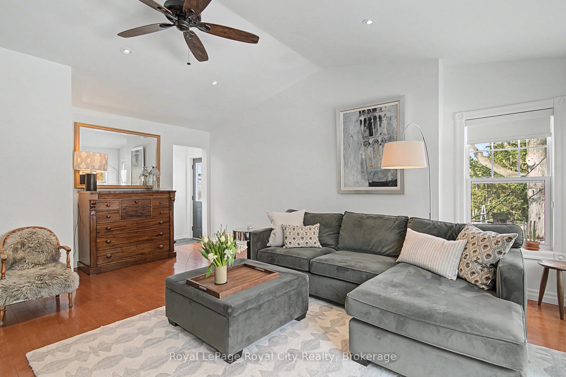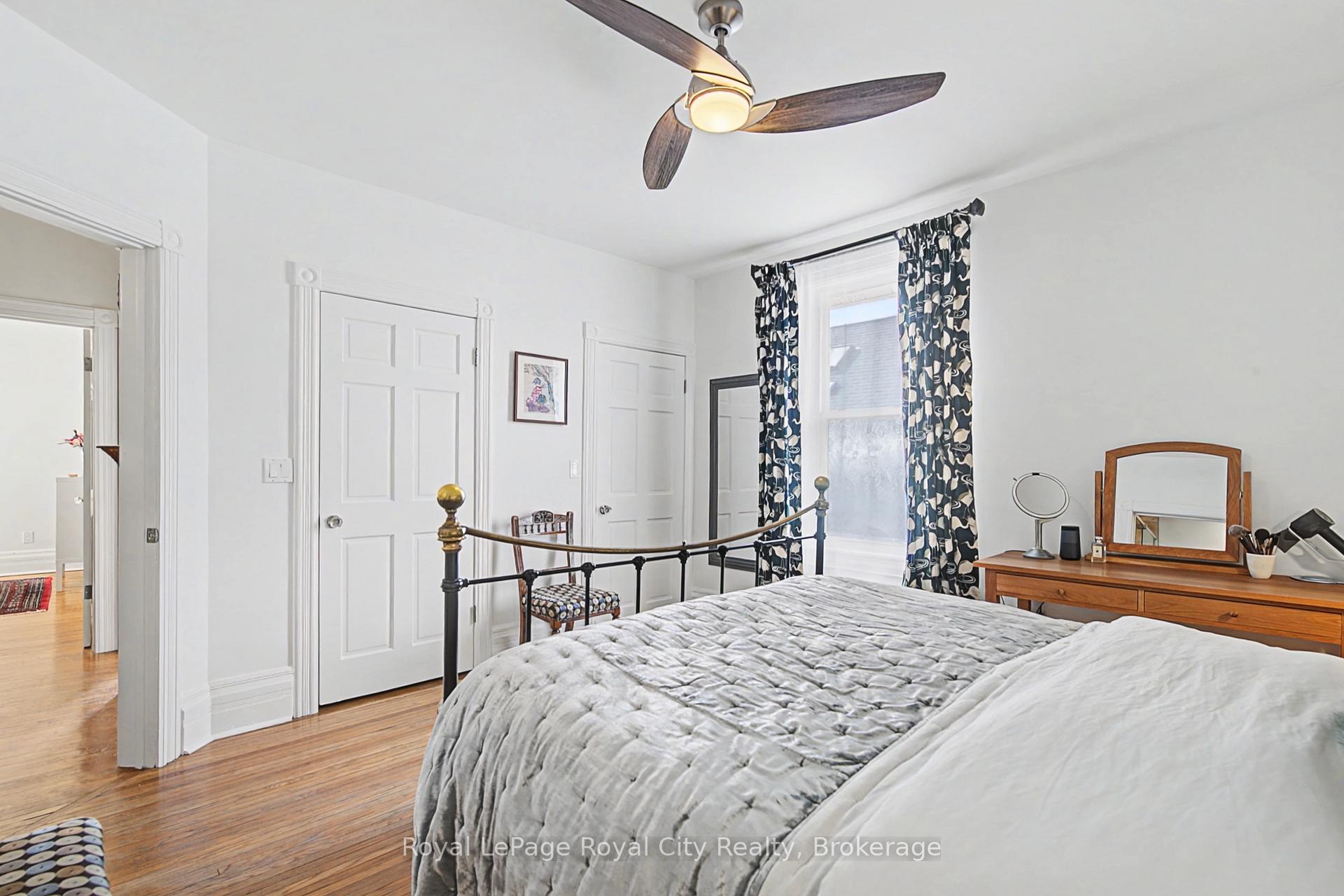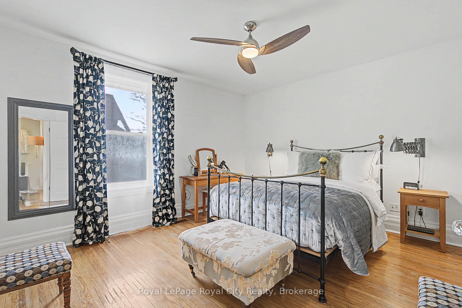 This exquisite century brick two-story home, set on one of Guelph’s most desirable streets, greets you with an immediate sense of charm. Ideally located within walking distance to downtown, the market, cafés, shopping, schools, parks and more, this gem offers an unbeatable lifestyle. Start your mornings or unwind in the evenings on the gorgeous wrap-around covered porch-perfect for coffee, a book, or a glass of wine. The mature landscaping and fenced yard provide privacy, whether you’re relaxing on the porch or enjoying the private deck off the family room. Inside, the main level welcomes you with a formal living room, a focal fireplace, formal dining room and a beautifully renovated kitchen featuring a large center island-perfect for entertaining with a walkout to the porch. At the rear, the family room is a standout, adorned with exquisite millwork and built-in cabinetry. Upstairs, you’ll find three spacious bedrooms, including a primary suite with a luxurious ensuite. The upper level also boasts a nicely finished four-piece bath and a bright, wrap-around window office-ideal for remote work. Every detail has been meticulously cared for-mechanicals, finishes, and updates-all ensuring this home is truly move-in ready. Pride of ownership is evident, and the sellers, who are returning to the UK, have loved this home. Soon, it will be yours to cherish. Homes like this are truly few and far between-don’t miss your chance!