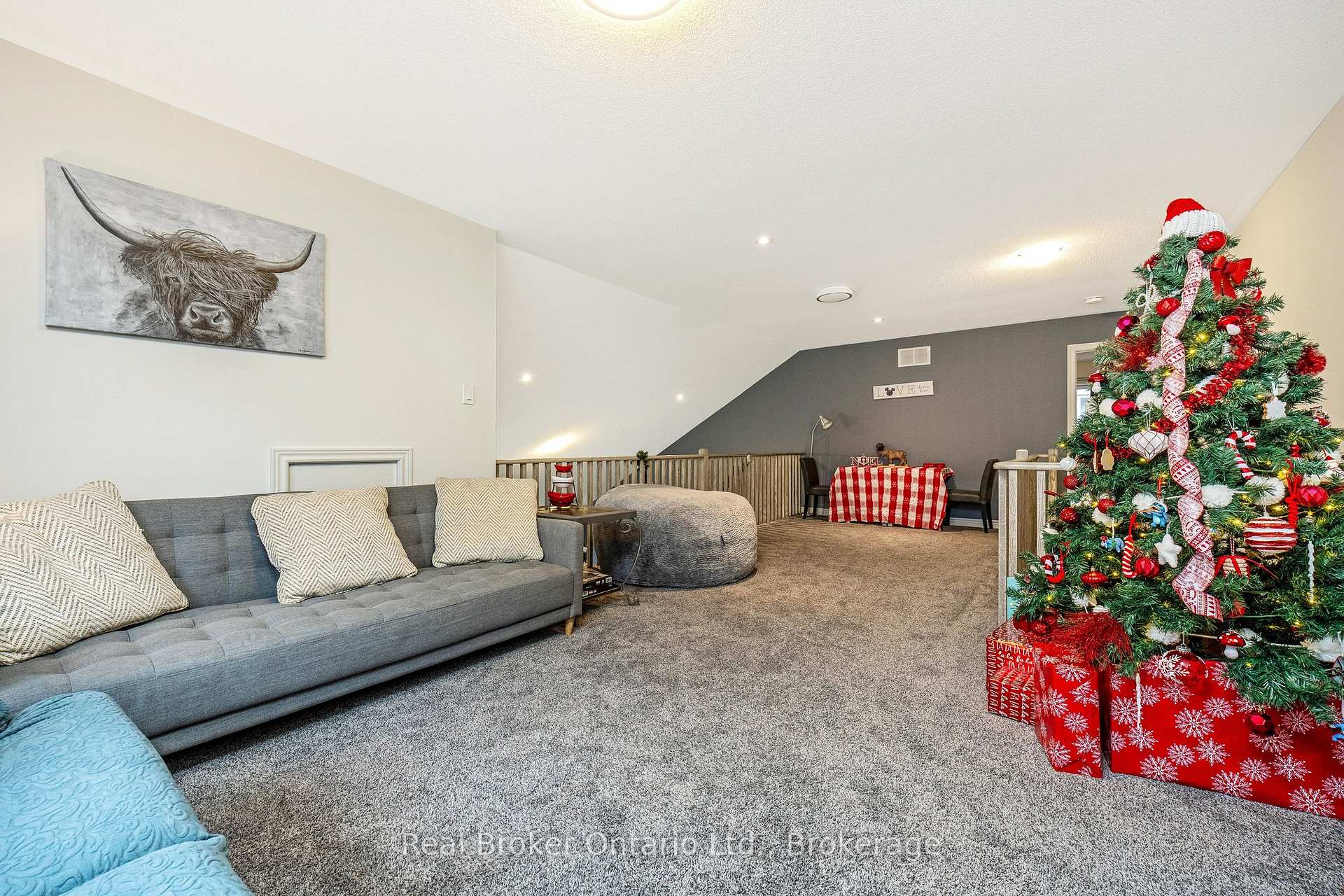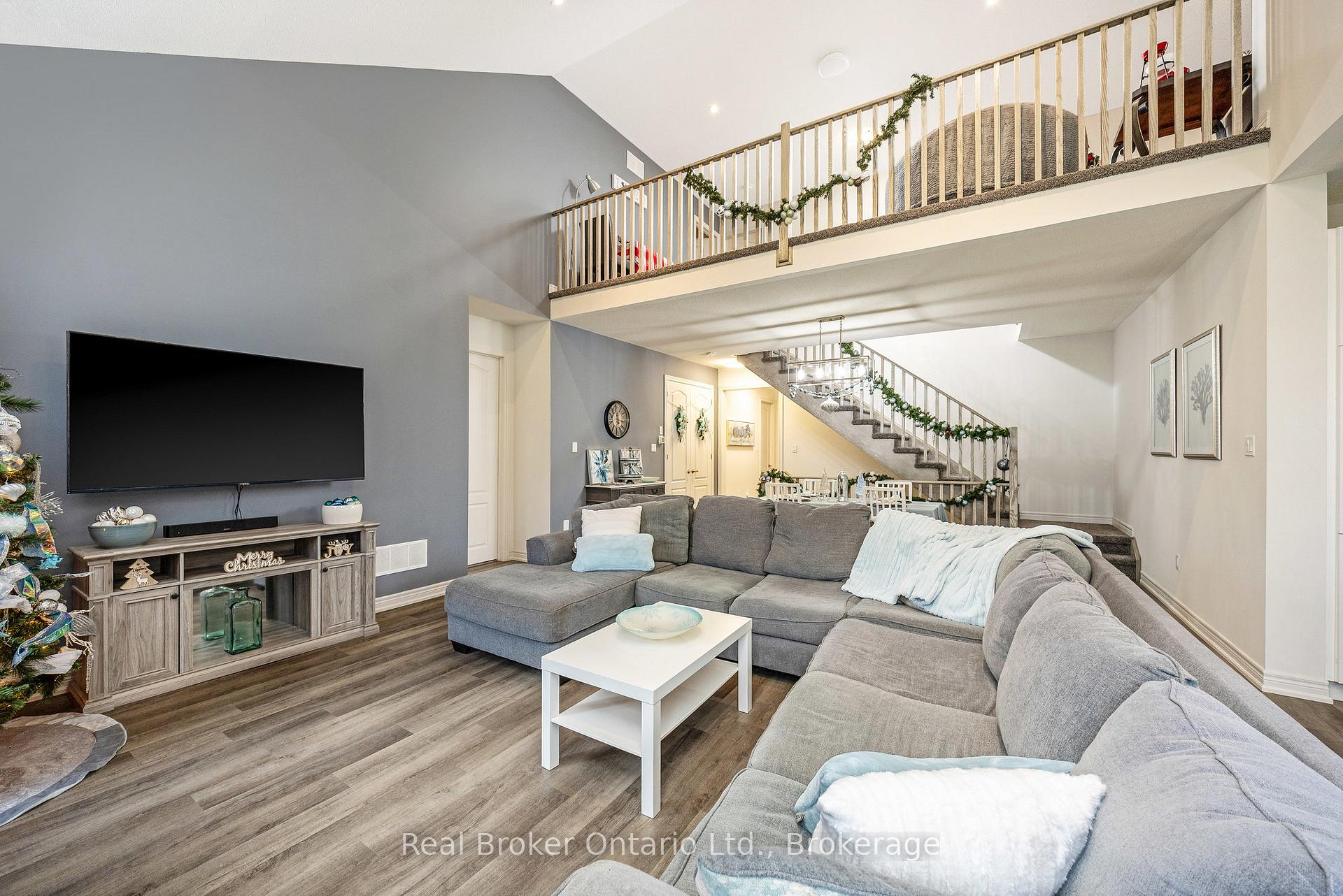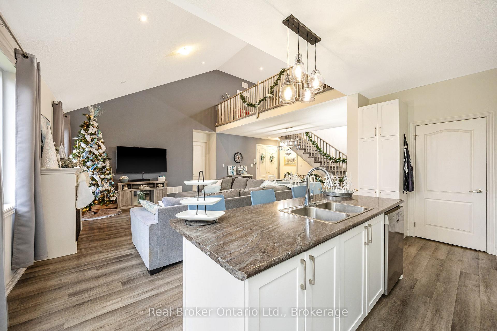 This spacious and versatile bungaloft offers modern living with a bright, open-concept main floor and a striking cathedral ceiling. The living area features a cozy gas fireplace and flows easily into the dining space – perfect for family meals or entertaining. The kitchen includes a large island, gas stove, pantry, garage access through laundry/mudroom and a walkout to the backyard. The main floor has two bedroom suites, including a primary with his & hers walk-in closets and a spa-inspired ensuite with a soaker tub and walk-in tiled shower. The second suite is ideal for guests, in-laws, or a home office. Upstairs, the loft provides a large bedroom, full bathroom, and open living area – great for teens or extra space. The finished basement adds even more flexibility, with a wet bar, additional living and office areas, a fourth bedroom with ensuite, gym space, and storage.This home combines comfort, space, and functionality on every level.