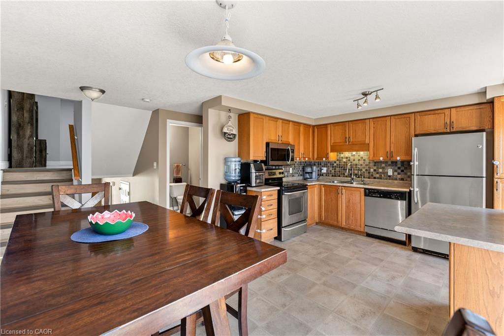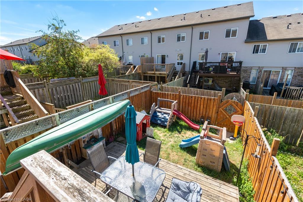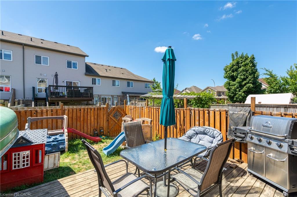 Welcome to 61 Madeleine Street — a beautifully maintained 3-bedroom, 3-bathroom freehold home (no condo fees) in Kitchener’s sought-after Huron Park community. This thoughtfully designed property offers a spacious layout perfect for modern family living. The main floor features convenient laundry with a utility sink, a bright open-concept kitchen with stainless steel appliances, tile backsplash, breakfast bar, and a generous dining area with direct access to a large deck — ideal for entertaining. The fully fenced backyard provides both privacy and security, making it a safe retreat for children and pets. Upstairs, a sun-filled family room creates the perfect gathering space, while the private primary bedroom level offers comfort and seclusion. Two additional bedrooms provide flexibility for family, guests, or a home office. The finished lower level, currently used as a fourth bedroom with ensuite, can easily function as a recreation room or guest suite. The unfinished basement level offers ample storage with the potential to customize into additional living space. Parking is convenient with a single-car garage, private driveway, and ample visitor parking on the street. Located close to schools, parks, shopping, public transit, the expressway, and Highway 401, this home combines comfort, convenience, and community. An excellent opportunity for first-time buyers, growing families, or anyone seeking a move-in ready home in a desirable neighborhood.