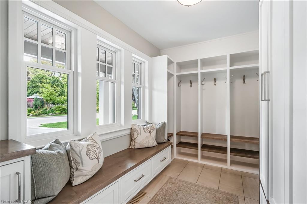 a separate entrance to a covered porch, a spacious mudroom with heated floors, custom cabinetry & direct access from the tandem double-car