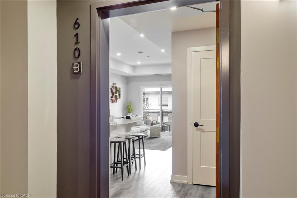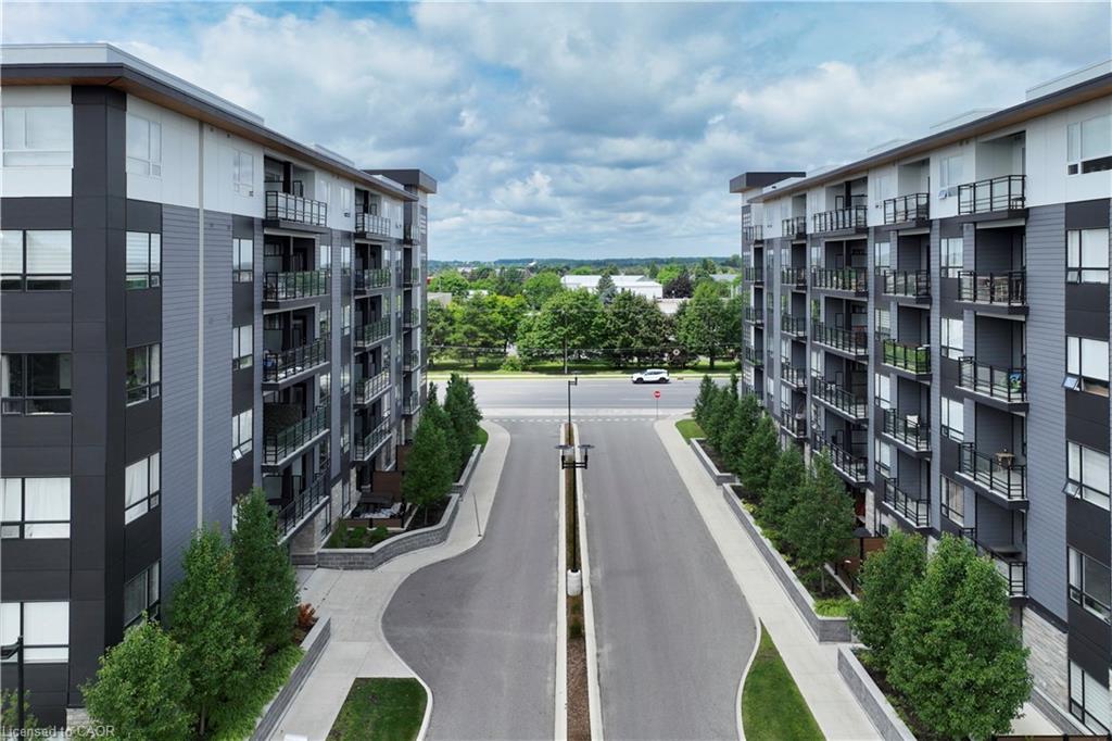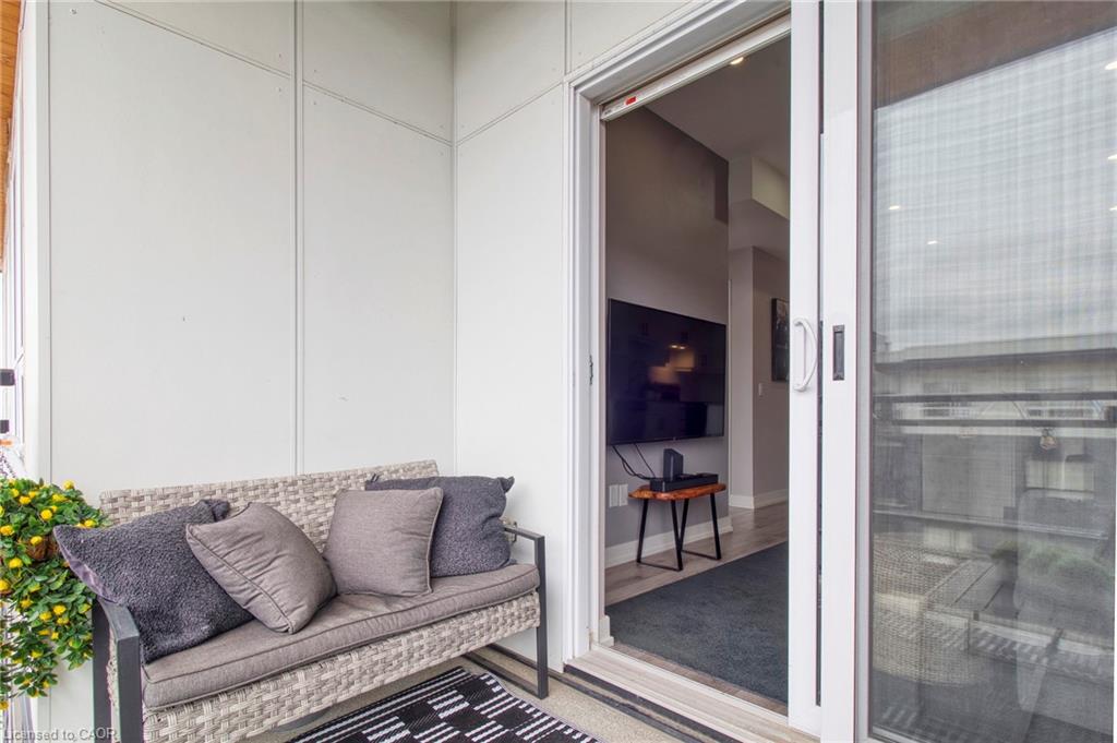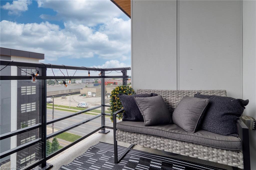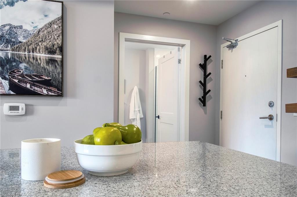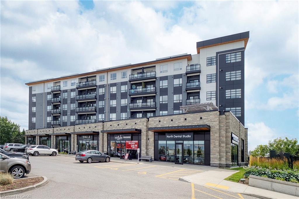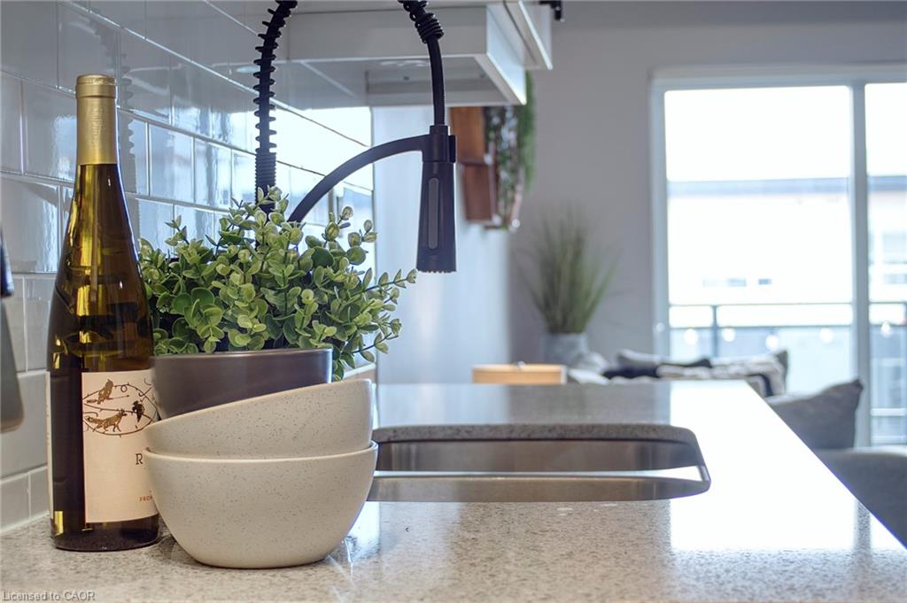 Make this penthouse-level condo your own! Sitting on the top floor of the modern and stylish Blackstone Condos building, this condo delivers the space, view, finishes, amenities, and location that make it an exceptional place to call home. As one of the largest 1-bedroom layouts in the building and only offered on the 6th floor, this condo provides 581 interior, and 62 exterior, square footage. Notice sky views from inside the condo, or step onto the balcony to enjoy the 180-degree sky view. Inside the unit, enjoy a list of upgrades that include a custom kitchen with extended upper cabinets, quartz countertops, subway tile backsplash, undermount double sink with pull-down chef’s faucet, stylish black handles and pulls, stainless-steel appliances, and kitchen island with built-in microwave, breakfast bar, and storage. Discover upgrades to the bathroom including walk-in shower, matte black fixtures, custom shower door, drawers in the vanity, and additional storage feature. Set the mood with dimmable main-area potlights and dimmable overhead lighting in the bedroom, and gain privacy with custom window blinds. Keep organized and tidy with a walk-in closet provided in the bedroom, stacked laundry insuite, and front-hall closet. Notice that this unit is carpet-free! Make use of the stunning lounge room for work meetups, social hangouts, or quiet work time. Offering bar and prep area, fireplace, board-room tables, and conversation cubicles, the lounge is versatile and impressive. Also provided: fitness and study rooms, bike storage with repair station, dog wash, and two outdoor lounges with bbq and hot tub. On the ground level, find bakery, beauty salon, restaurants, pub, and dental at your convenience. Just a short drive, bike, or bus to RIM Park, this location allows close proximity to the Region of Waterloo’s top recreation facility with its nearby ball diamonds, soccer fields, indoor turf, basketball courts, beach volleyball courts, skating rinks, and fitness centre.