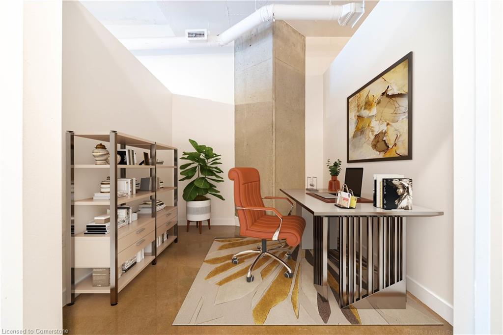 Experience urban living at its finest at the Core Lofts! Right in the heart of downtown Hamilton, this prime location offers unparalleled convenience access to the city’s best attractions. Large open concept one bedroom plus den unit. 10+ ft ceilings, over 800 sq ft living. Floor to ceiling windows with Juliette balcony. Large eat-in kitchen with granite counters, stainless steel appliances. Den could be used as an office or potential second bedroom. In-suite laundry. Locker included. Building amenities include rooftop patio with BBQ, Gym and Party Room. Steps away from shopping and entertainment. A diverse array of dining options, many within walking distance. Highlights include: Hamilton Waterfront & Pier 4, beloved Locke St hotspots, growing and eclectic James St N known for art galleries and cultural festivals, discover the lively nightlife and unique bars of Hess Village, attend events at the AGO, Convention Centre or First Ontario Place. Don’t miss this opportunity to live in a vibrant and convenient downtown location, surrounded by all the best Hamilton has to offer.