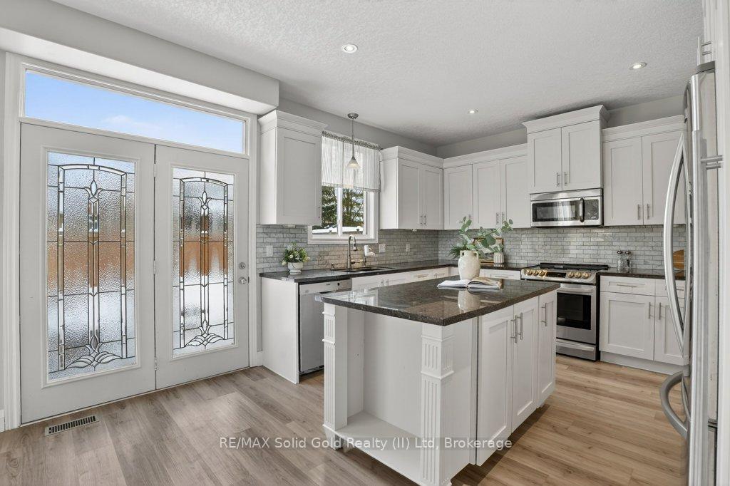 Nestled in the highly sought-after Laurelwood neighborhood of Waterloo, this beautifully updated residence offers an exceptional blend of style, comfort, and versatility. Meticulously maintained and thoughtfully updated in the areas that truly matter, this is a home best experienced in person. The main floor showcases a sophisticated open-concept design, ideal for everyday living & effortless entertaining. The elegant living room flows seamlessly into the dining area & an expansive chef inspired kitchen, complete with a generous island, granite countertops, ceramic tile backsplash, undermount sink, recently refinished cabinetry, newer stainless appliances, & a sleek induction cooktop delivering both function & timeless appeal. Upstairs, three generously sized bedrooms are complemented by a beautifully appointed four-piece family bath. Privately positioned at the rear of the home, the serene primary suite is a true retreat, overlooking tranquil greenspace & offering the perfect space for a home office or reading haven. The newly renovated ensuite features a modern spa inspired wet-room style shower, a luxurious soaker tub, & a stunning walk-in closet. Sliding doors from the kitchen lead to a partially fenced backyard with peaceful greenspace views, perfect for relaxing or entertaining. The yard also provides access to a newly constructed stairwell leading to the lower level DUPLEX entrance. This bright & spacious studio apartment includes a full kitchen with full size appliances, a large living area, laundry, & a three piece bath ideal for extended family, a teenager, or an excellent mortgage helper. Situated on a quiet, family friendly crescent, the home is just moments from Laurel Creek, St. Jacobs Market, scenic trails, top rated schools, & all the amenities that make Laurelwood so desirable. This is the home you’ve been waiting for! Your search ends here!