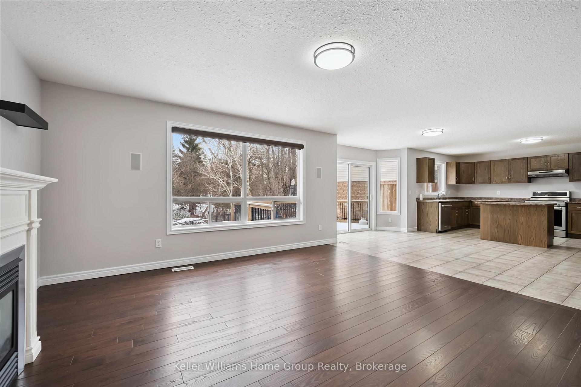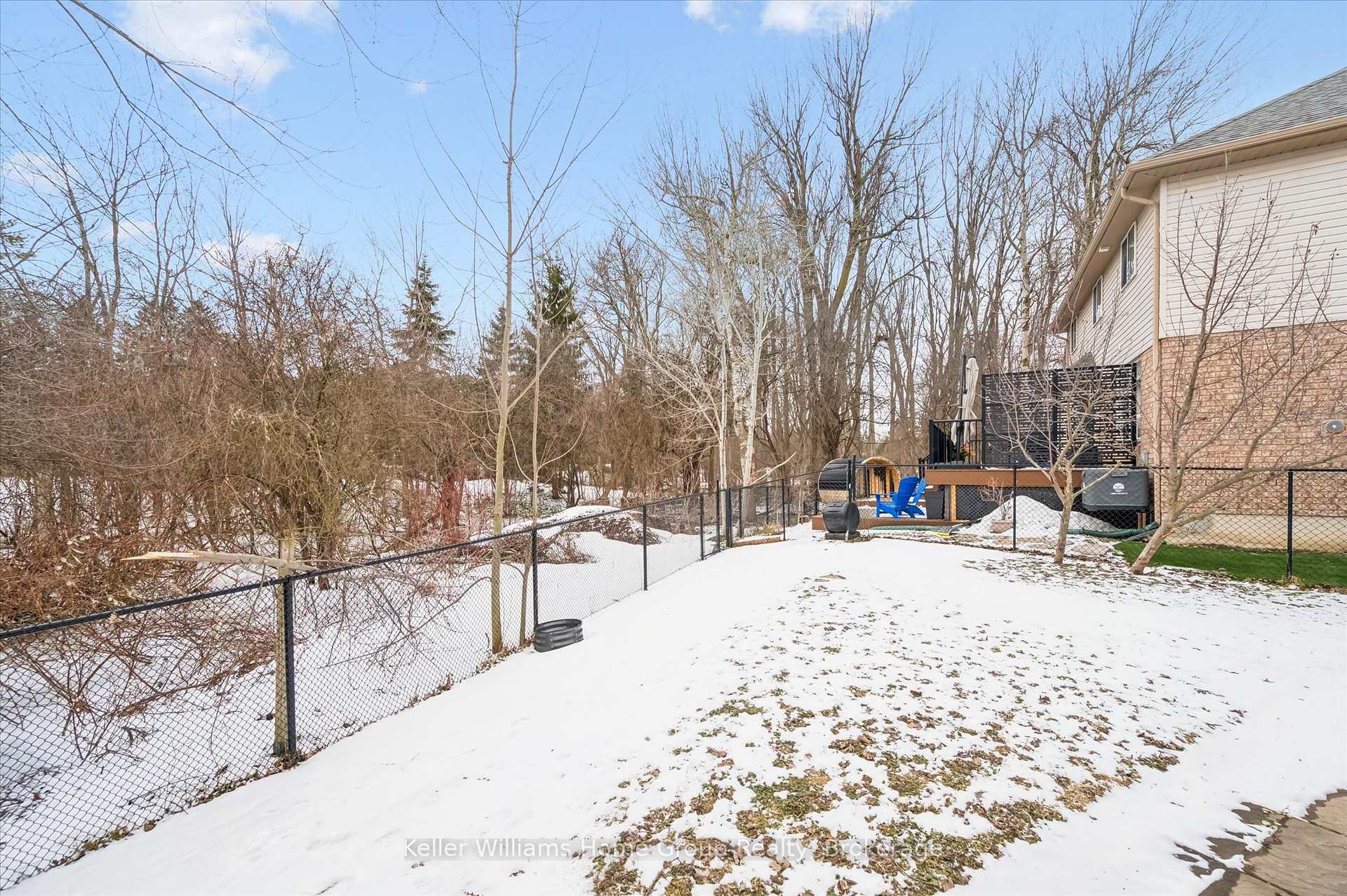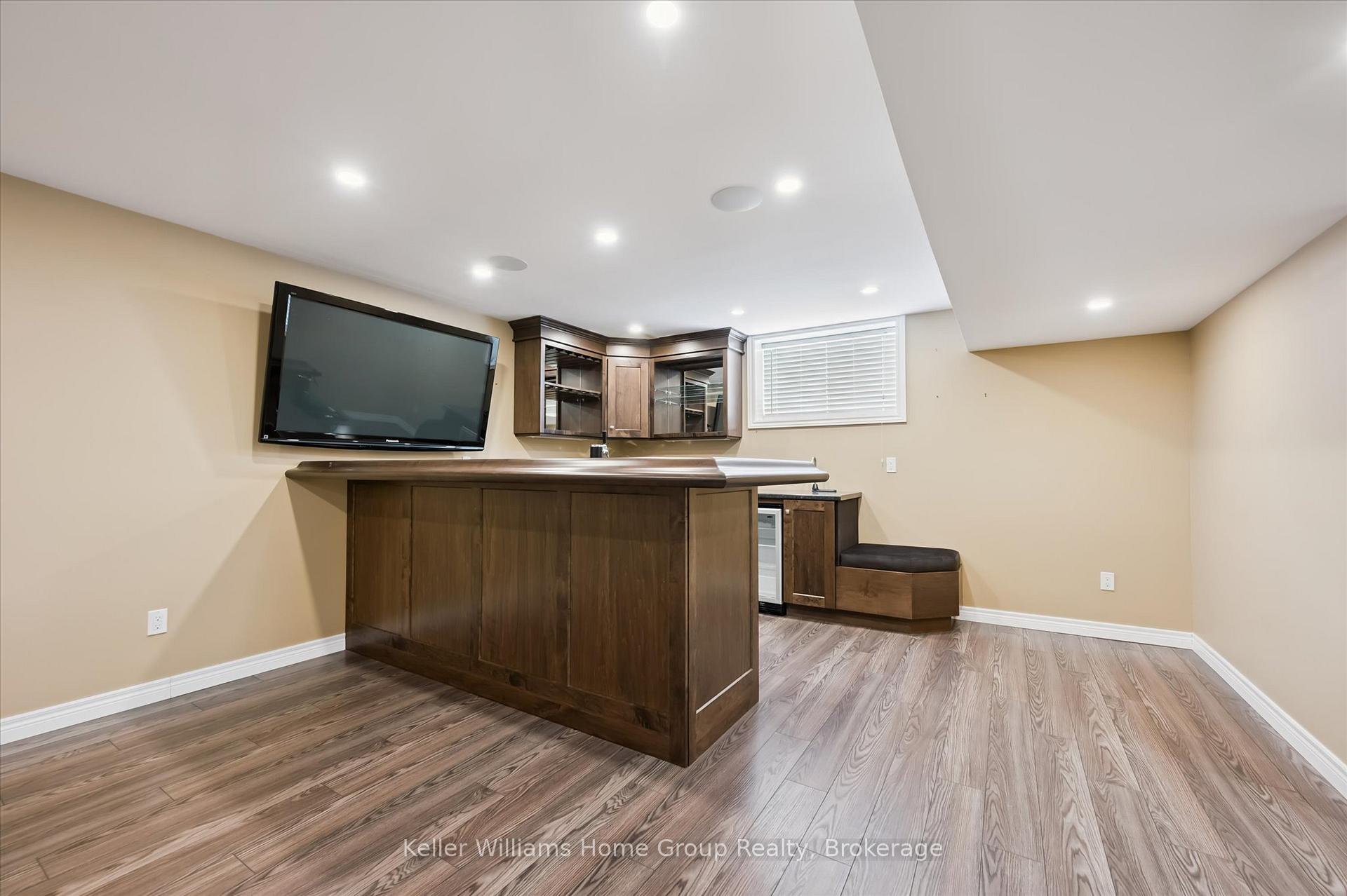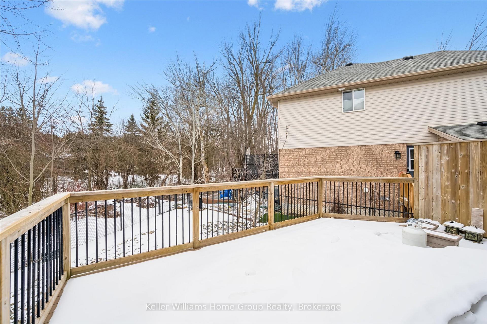 Exceptional 4-Bedroom Family Home Backing Onto Green Space in Fergus. Welcome to this beautifully maintained 2,240 sq ft two-storey home, ideally situated on a premium lot backing onto green space for added privacy and serene views. The fully fenced backyard features a deck prepped for a hot tub, along with a garden shed for convenient outdoor storage. Inside, you’ll find a well-designed layout offering formal living and dining areas, along with a spacious open-concept kitchen, breakfast area, and family room. The family room includes a cozy gas fireplace and walkout to the backyard deck, perfect for entertaining or relaxing year-round. Upstairs, the home boasts four generous bedrooms and hardwood and tile flooring throughout – with carpet only on the staircase for added comfort and safety. The lower level isa true entertainer’s space, featuring a custom bar, built-ins, bookshelves, and projector setup – ideal for movie nights or game day gatherings. Additional features include a double car attached garage with heat and extra storage, main floor laundry and a great location close to parks, trails, schools, and amenities.