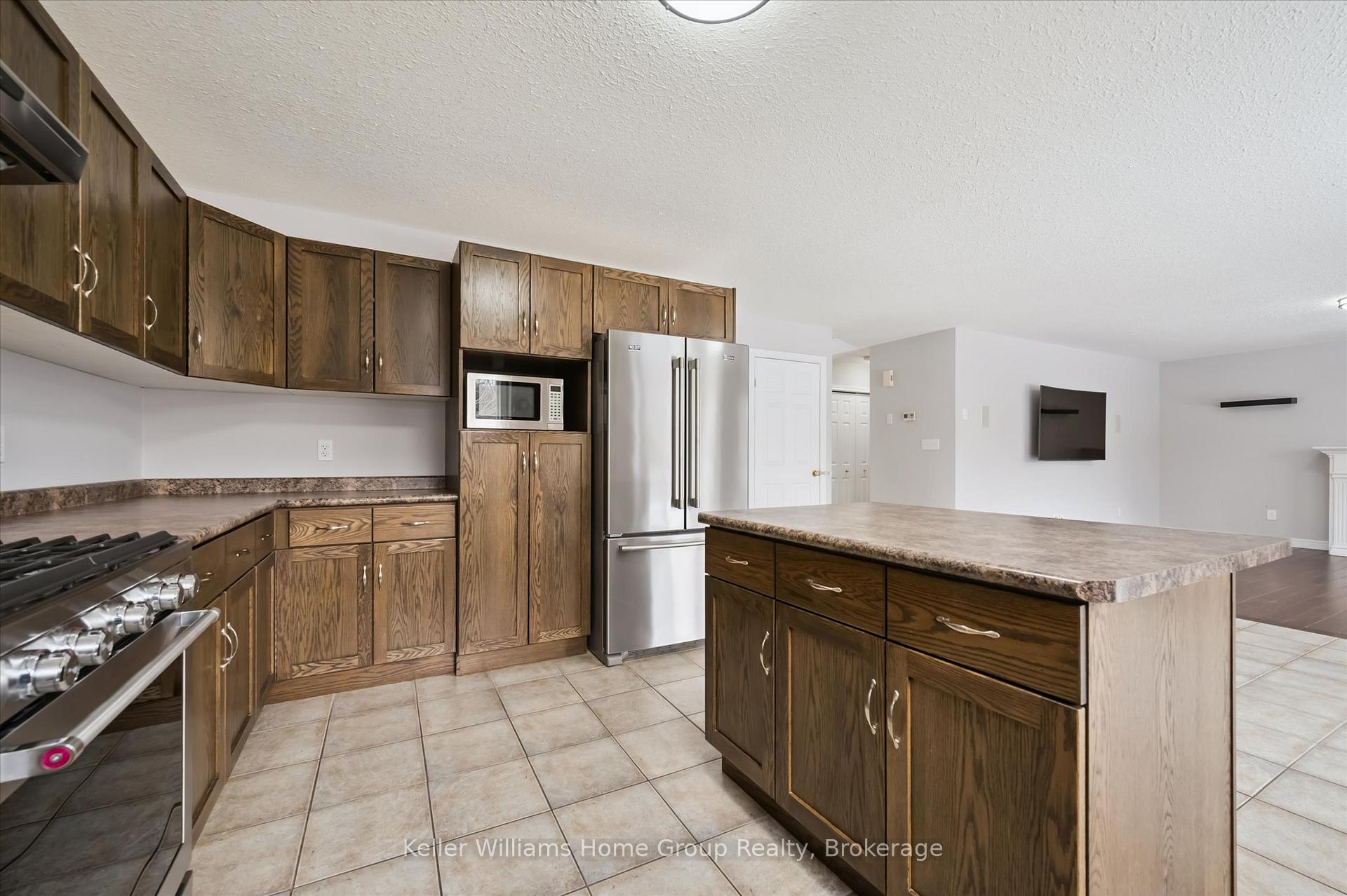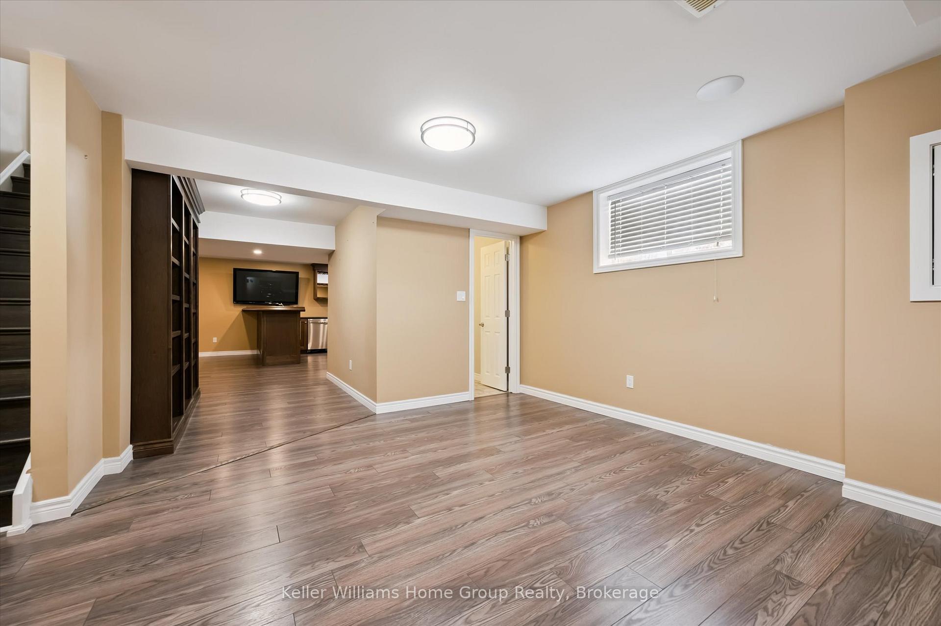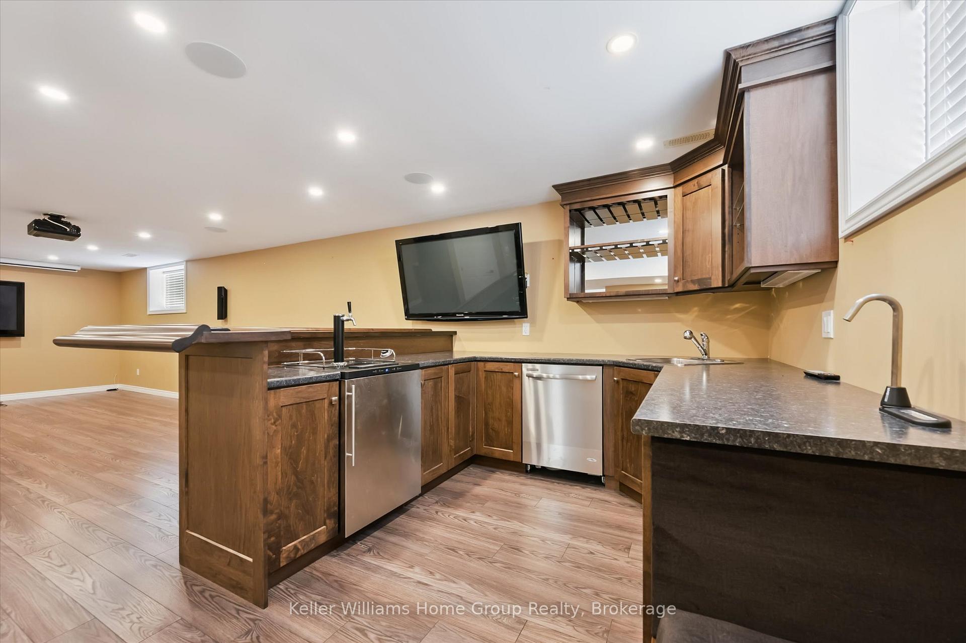 Exceptional 4-Bedroom Family Home Backing Onto Green Space in Fergus. Welcome to this beautifully maintained 2,240 sq ft two-storey home, ideally situated on a premium lot backing onto green space for added privacy and serene views. The fully fenced backyard features a deck prepped for a hot tub, along with a garden shed for convenient outdoor storage. Inside, you’ll find a well-designed layout offering formal living and dining areas, along with a spacious open-concept kitchen, breakfast area, and family room. The family room includes a cozy gas fireplace and walkout to the backyard deck, perfect for entertaining or relaxing year-round. Upstairs, the home boasts four generous bedrooms and hardwood and tile flooring throughout – with carpet only on the staircase for added comfort and safety. The lower level isa true entertainer’s space, featuring a custom bar, built-ins, bookshelves, and projector setup – ideal for movie nights or game day gatherings. Additional features include a double car attached garage with heat and extra storage, main floor laundry and a great location close to parks, trails, schools, and amenities.