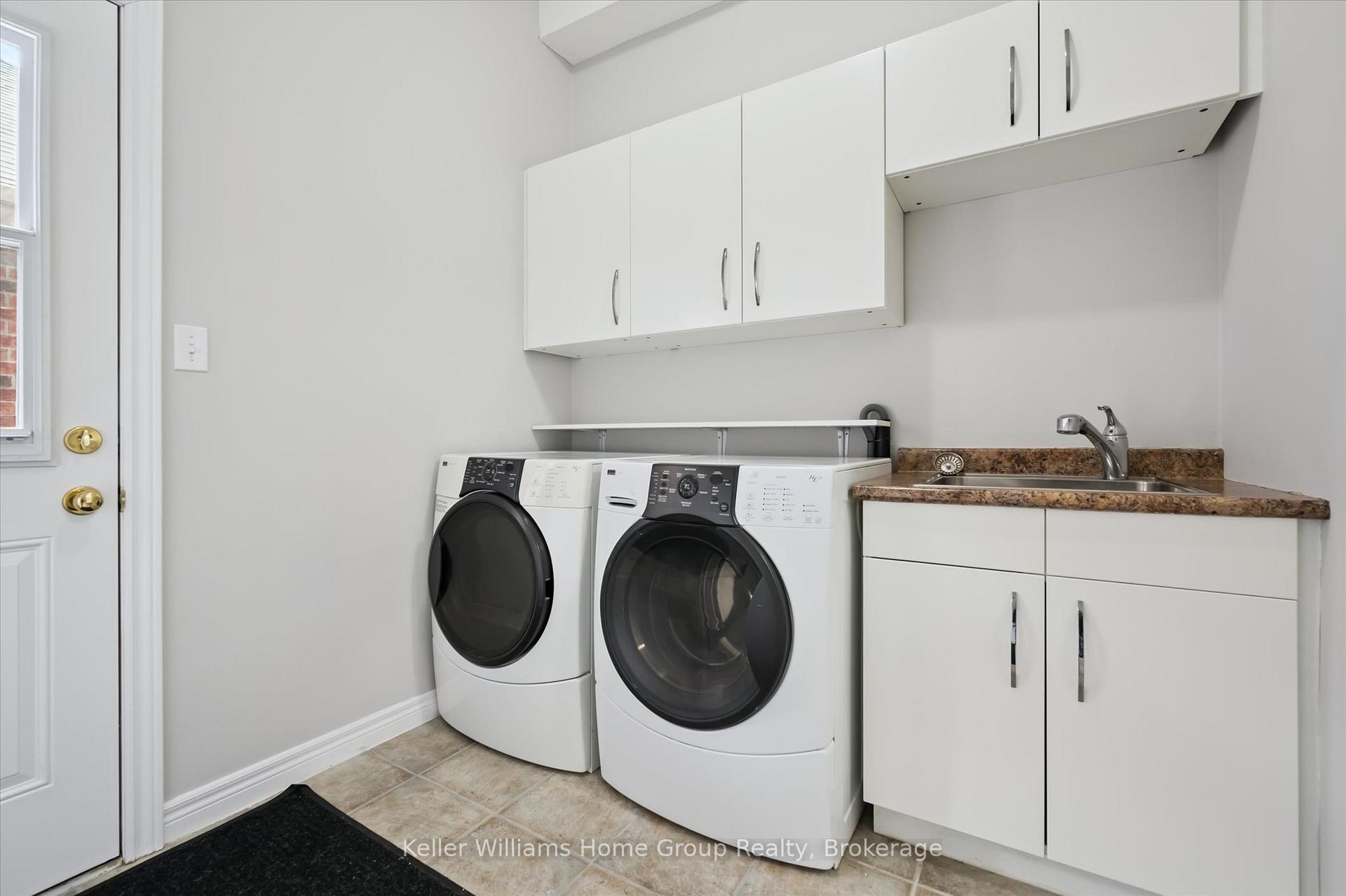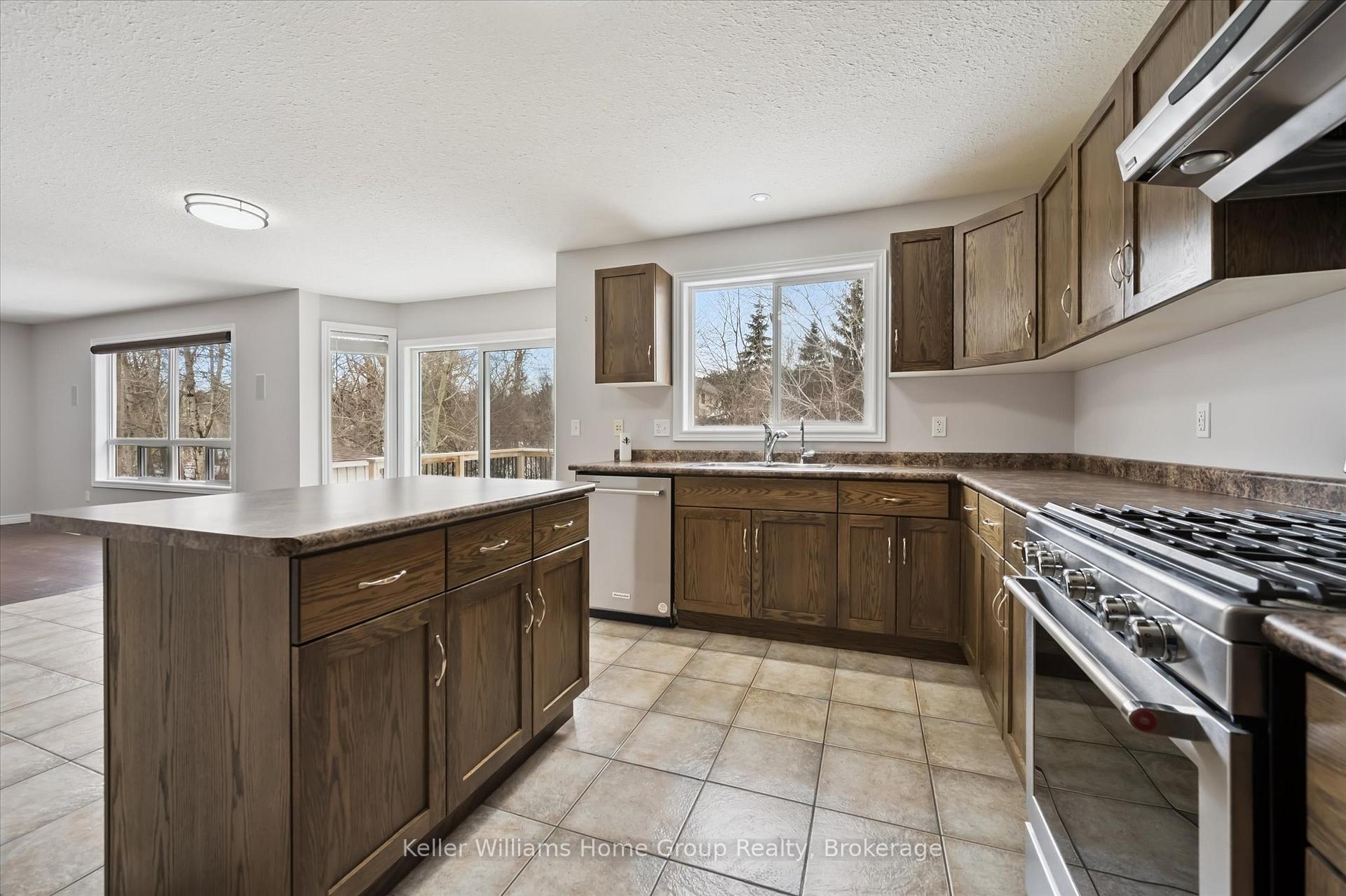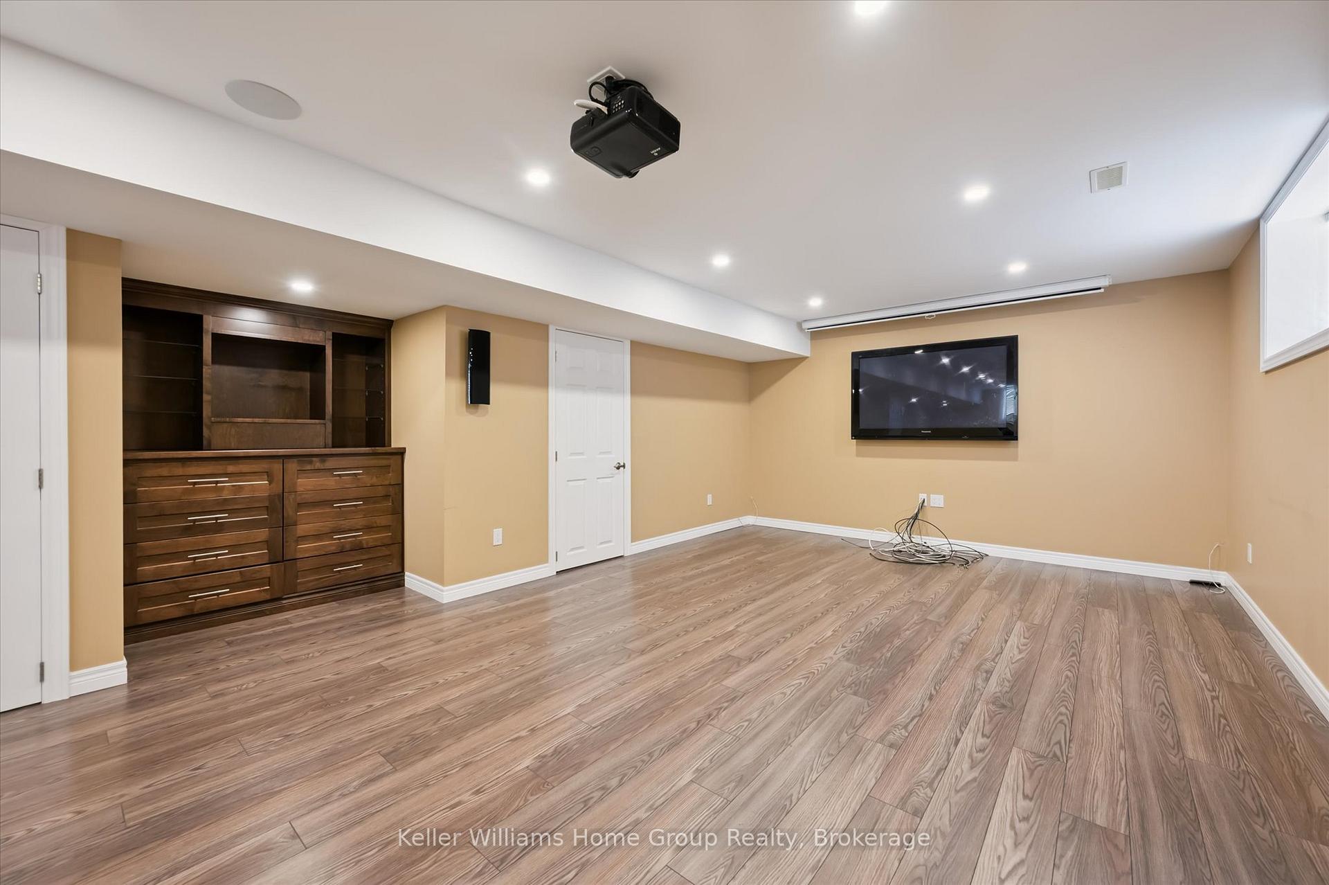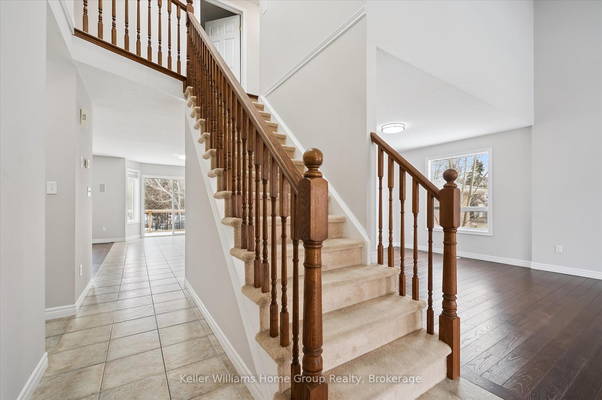 Exceptional 4-Bedroom Family Home Backing Onto Green Space in Fergus. Welcome to this beautifully maintained 2,240 sq ft two-storey home, ideally situated on a premium lot backing onto green space for added privacy and serene views. The fully fenced backyard features a deck prepped for a hot tub, along with a garden shed for convenient outdoor storage. Inside, you’ll find a well-designed layout offering formal living and dining areas, along with a spacious open-concept kitchen, breakfast area, and family room. The family room includes a cozy gas fireplace and walkout to the backyard deck, perfect for entertaining or relaxing year-round. Upstairs, the home boasts four generous bedrooms and hardwood and tile flooring throughout – with carpet only on the staircase for added comfort and safety. The lower level isa true entertainer’s space, featuring a custom bar, built-ins, bookshelves, and projector setup – ideal for movie nights or game day gatherings. Additional features include a double car attached garage with heat and extra storage, main floor laundry and a great location close to parks, trails, schools, and amenities.