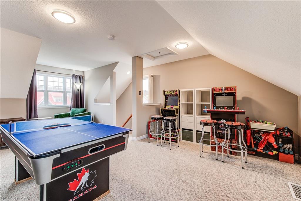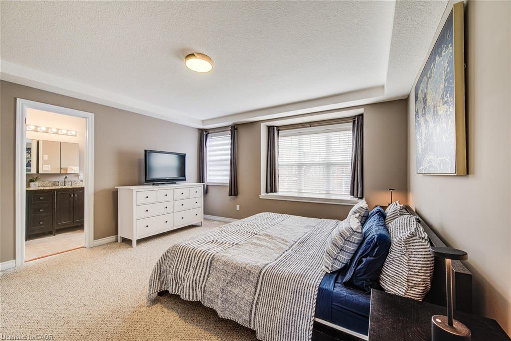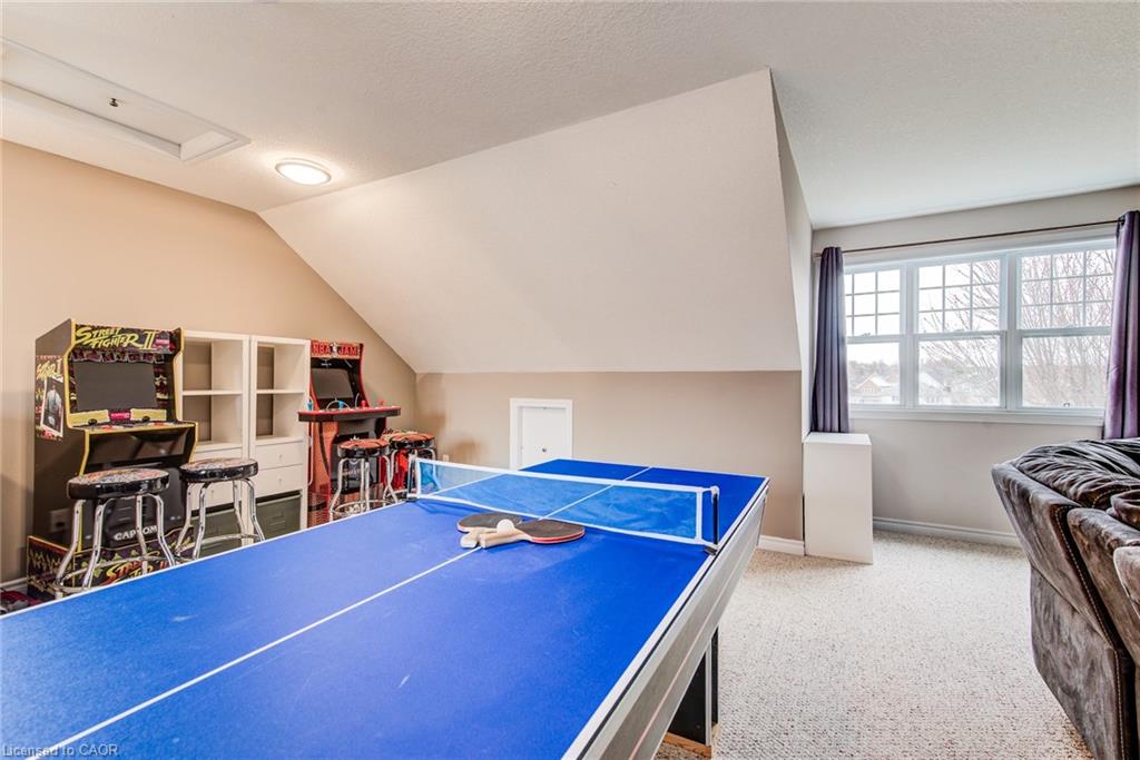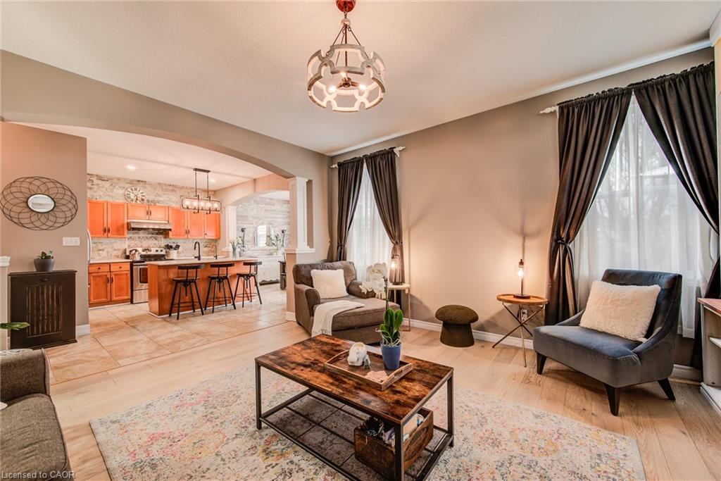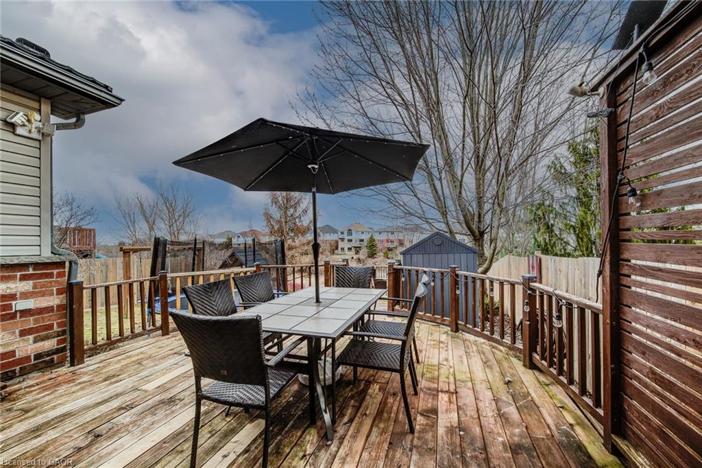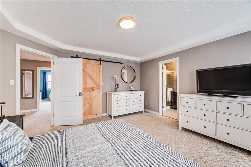 Stunning light filled home with 3,600 sq ft of living space, finished LOFT on third floor and backing onto a ravine! 9 foot ceilings on main level! Beautiful kitchen with maple cabinetry, oversized island with sink, quartz counters, new backsplash, spacious dining area all open to a huge family room with electric fireplace, built-ins with lighting & new zebra blinds. Hardwood stairs leading to three spacious bedrooms on second level, master bedroom has a walk-in closet and a spa like 5 pc ensuite bath with a large jetted tub, separate shower and 2 sinks, second bedroom also has a walk-in closet and the main bath has 2 sinks as well for your comfort. Laundry conveniently located on the second floor. On the third level you’ll find an all open concept cozy loft with an electric fireplace for family entertainment and weekend gatherings, HDMI wiring & electrical for projector included. Fully finished basement with a separate entrance and vinyl flooring offers a spacious rec room, 2 extra bedrooms, and a full bath with glass shower for guests or a potential rental income. Enjoy the morning and sunset on your wooden deck facing the ravine. Second deck lower in the yard for extra space to entertain. Shed & play structure are included. Grow your vegetables in your own garden, ready to plant! Kilometers of trails ideal for walking and cycling. Quiet and safe family neighborhood within the school district to St. Nicholas Catholic School (JK-8) or Edna Staebler Elementary School, Sir John A MacDonald Secondary school or Resurrection Catholic Secondary School and U of Waterloo. 5 minute drive to Costco, Walmart and shops at the Boardwalk. Steps away from public transit. A truly special home with a new Metal roof (2021), RO, all new paint, well maintained, loved and tastefully decorated. A heater fan in the garage for added comfort. Outdoor sensor lights, Digital door locks for extra security & convenience.