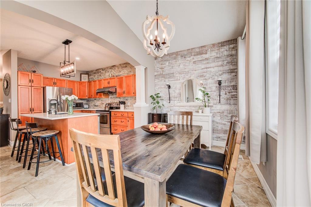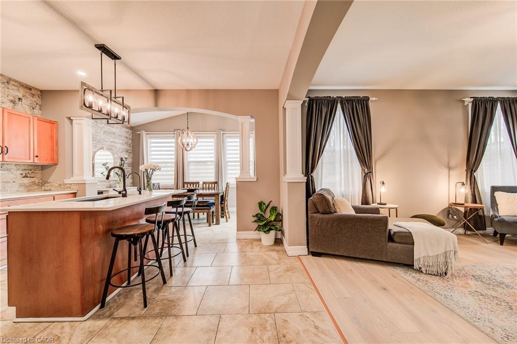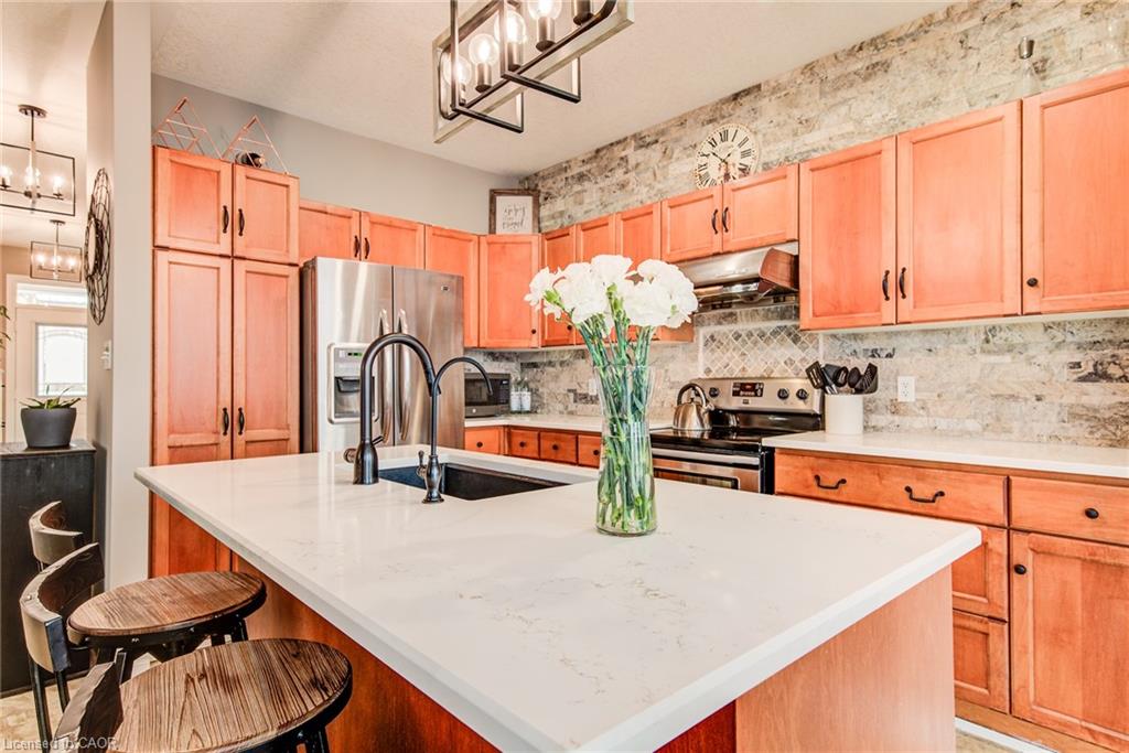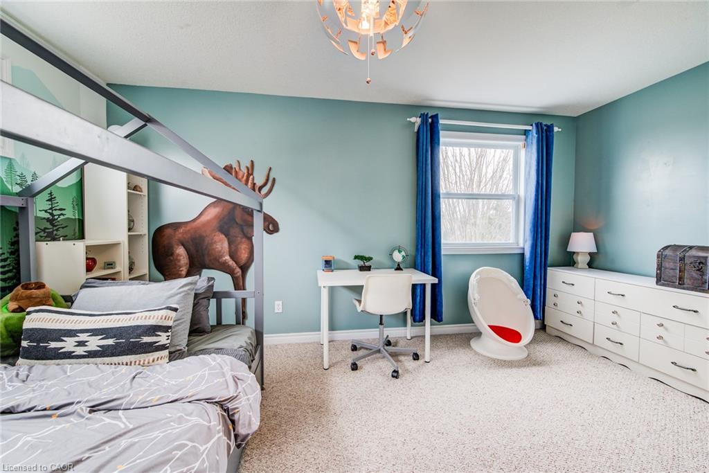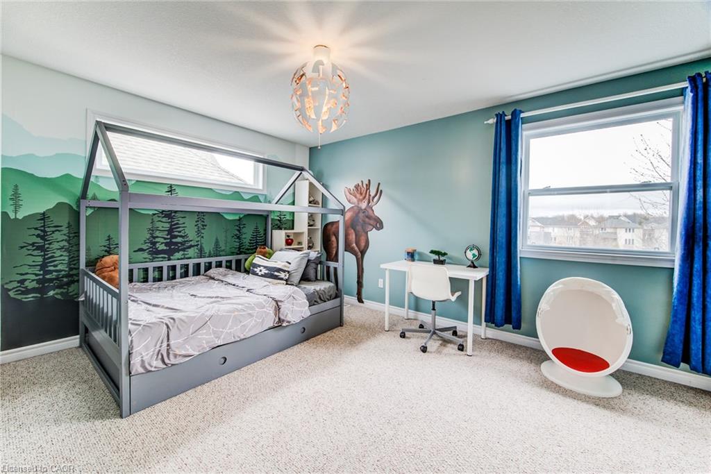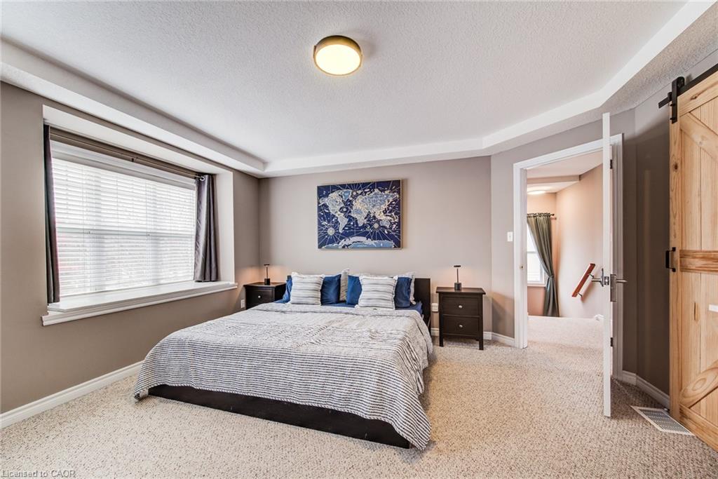 Stunning light filled home with 3,600 sq ft of living space, finished LOFT on third floor and backing onto a ravine! 9 foot ceilings on main level! Beautiful kitchen with maple cabinetry, oversized island with sink, quartz counters, new backsplash, spacious dining area all open to a huge family room with electric fireplace, built-ins with lighting & new zebra blinds. Hardwood stairs leading to three spacious bedrooms on second level, master bedroom has a walk-in closet and a spa like 5 pc ensuite bath with a large jetted tub, separate shower and 2 sinks, second bedroom also has a walk-in closet and the main bath has 2 sinks as well for your comfort. Laundry conveniently located on the second floor. On the third level you’ll find an all open concept cozy loft with an electric fireplace for family entertainment and weekend gatherings, HDMI wiring & electrical for projector included. Fully finished basement with a separate entrance and vinyl flooring offers a spacious rec room, 2 extra bedrooms, and a full bath with glass shower for guests or a potential rental income. Enjoy the morning and sunset on your wooden deck facing the ravine. Second deck lower in the yard for extra space to entertain. Shed & play structure are included. Grow your vegetables in your own garden, ready to plant! Kilometers of trails ideal for walking and cycling. Quiet and safe family neighborhood within the school district to St. Nicholas Catholic School (JK-8) or Edna Staebler Elementary School, Sir John A MacDonald Secondary school or Resurrection Catholic Secondary School and U of Waterloo. 5 minute drive to Costco, Walmart and shops at the Boardwalk. Steps away from public transit. A truly special home with a new Metal roof (2021), RO, all new paint, well maintained, loved and tastefully decorated. A heater fan in the garage for added comfort. Outdoor sensor lights, Digital door locks for extra security & convenience.