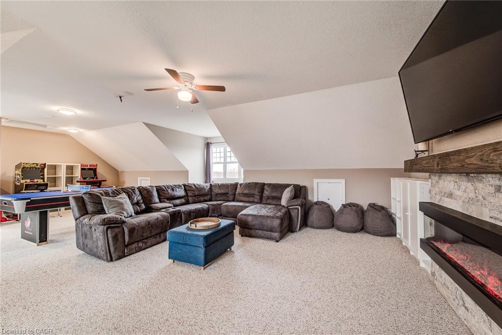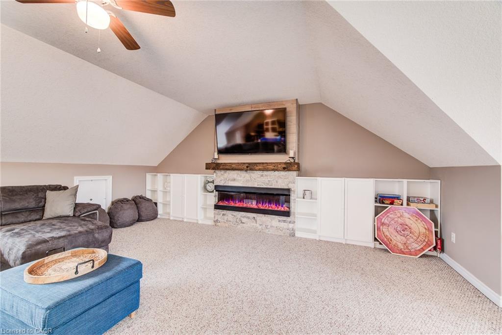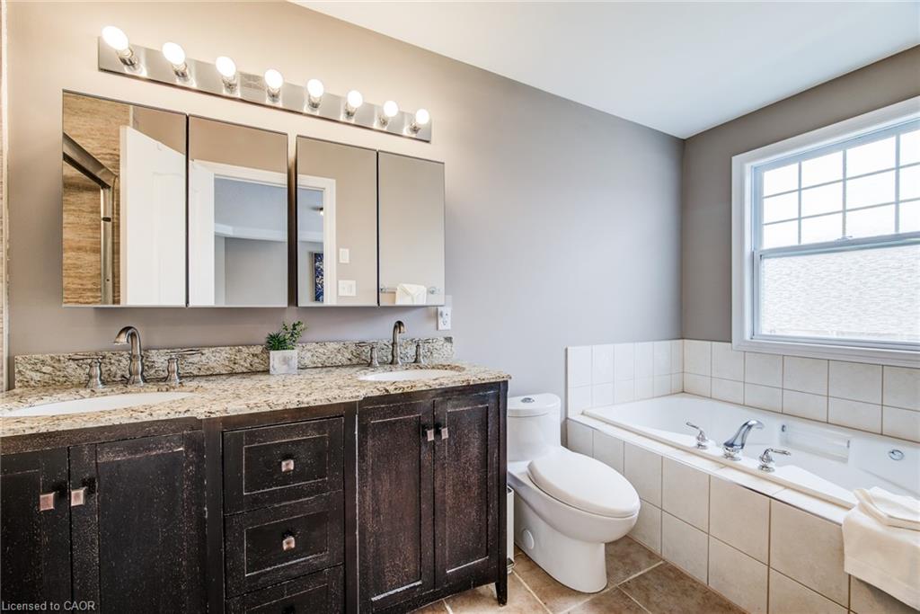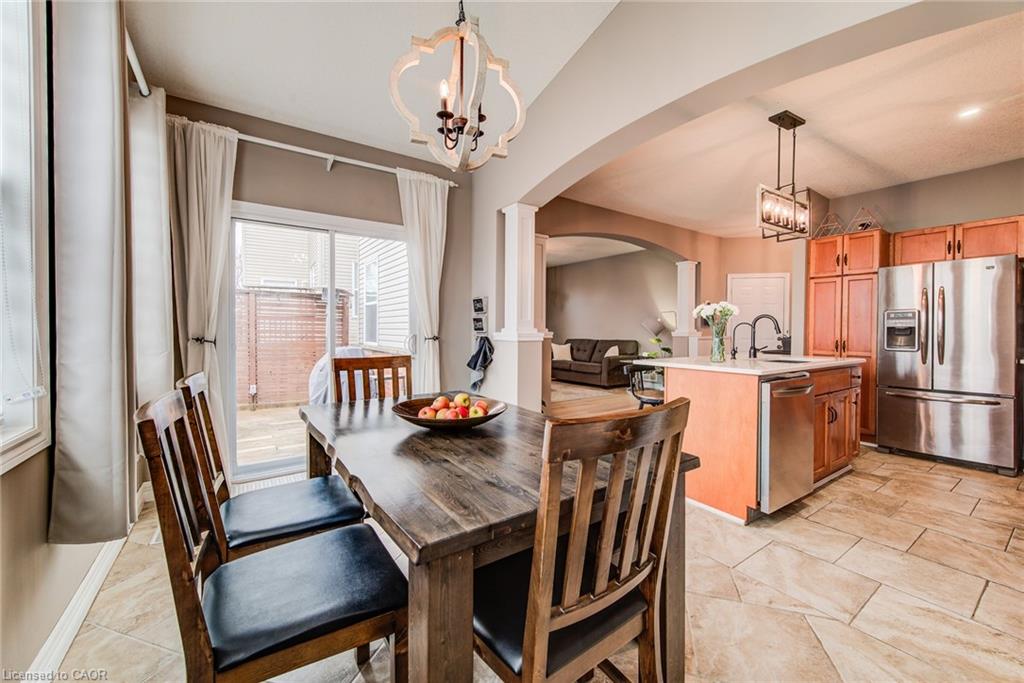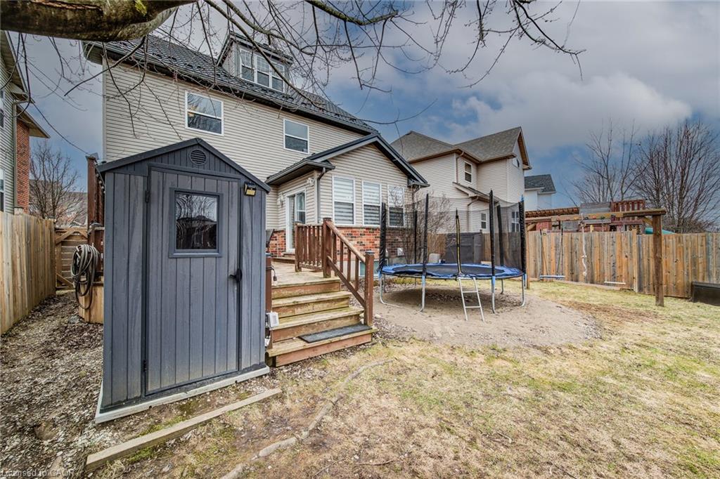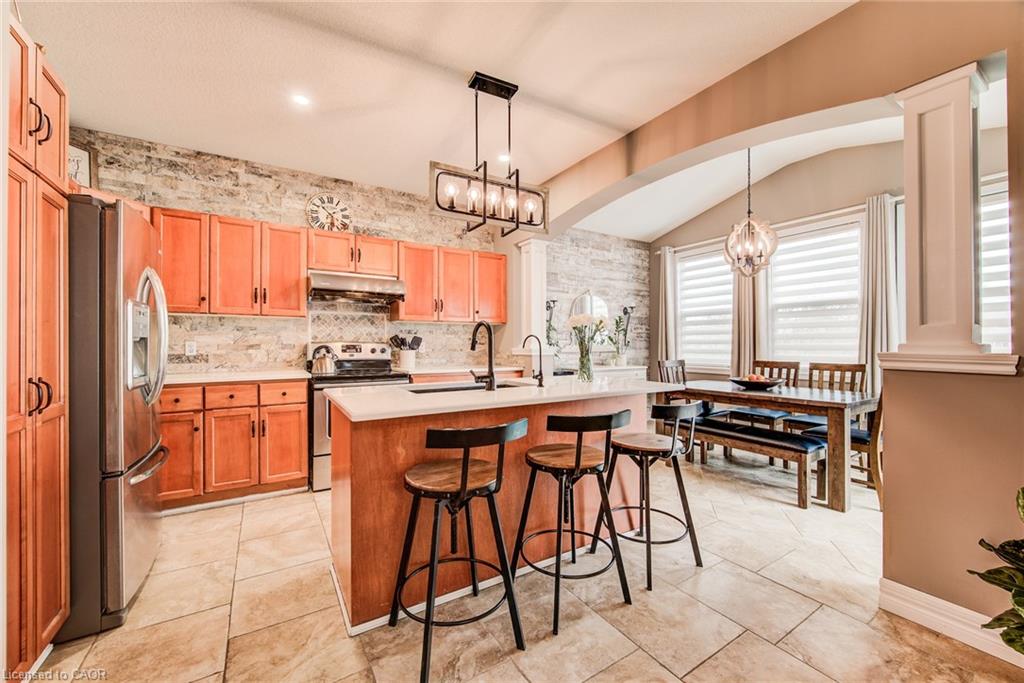 Stunning light filled home with 3,600 sq ft of living space, finished LOFT on third floor and backing onto a ravine! 9 foot ceilings on main level! Beautiful kitchen with maple cabinetry, oversized island with sink, quartz counters, new backsplash, spacious dining area all open to a huge family room with electric fireplace, built-ins with lighting & new zebra blinds. Hardwood stairs leading to three spacious bedrooms on second level, master bedroom has a walk-in closet and a spa like 5 pc ensuite bath with a large jetted tub, separate shower and 2 sinks, second bedroom also has a walk-in closet and the main bath has 2 sinks as well for your comfort. Laundry conveniently located on the second floor. On the third level you’ll find an all open concept cozy loft with an electric fireplace for family entertainment and weekend gatherings, HDMI wiring & electrical for projector included. Fully finished basement with a separate entrance and vinyl flooring offers a spacious rec room, 2 extra bedrooms, and a full bath with glass shower for guests or a potential rental income. Enjoy the morning and sunset on your wooden deck facing the ravine. Second deck lower in the yard for extra space to entertain. Shed & play structure are included. Grow your vegetables in your own garden, ready to plant! Kilometers of trails ideal for walking and cycling. Quiet and safe family neighborhood within the school district to St. Nicholas Catholic School (JK-8) or Edna Staebler Elementary School, Sir John A MacDonald Secondary school or Resurrection Catholic Secondary School and U of Waterloo. 5 minute drive to Costco, Walmart and shops at the Boardwalk. Steps away from public transit. A truly special home with a new Metal roof (2021), RO, all new paint, well maintained, loved and tastefully decorated. A heater fan in the garage for added comfort. Outdoor sensor lights, Digital door locks for extra security & convenience.