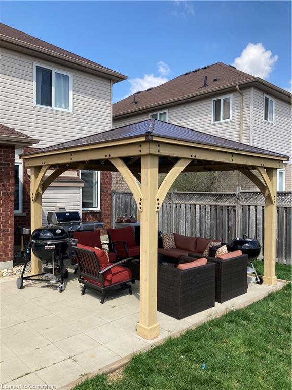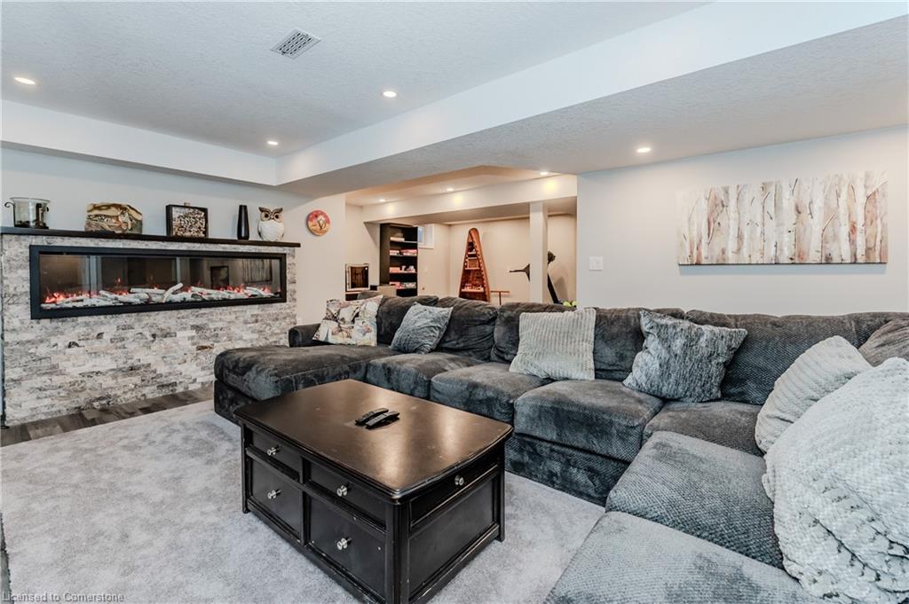 Built by Ridgeview Homes, this impressive 4+1 bed, 3.5-bath home offers the perfect blend of modern updates & timeless design. The ENTRANCE FOYER is flanked by a 20ft soaring ceiling with sightlines of the formal living room & dining room laced in laminate flooring. The hallway leads you to the main floor family room, a cozy area for you to unwind with a gas fireplace. The UPDATED KITCHEN features 2 tone shaker SOFT CLOSE CABINETRY & DRAWERS; subway tile backsplash, stainless appliances, quartz countertops and a moveable center island all overlooking the dinette area with sliding glass doors leading to the large stone patio and 12’x12’ covered gazebo with steel roof. This DEEP FENCED YARD creates the ideal space for relaxation and entertaining. Ascend to the upper floor where double doors lead to the primary bedroom with vaulted ceiling, a walk-in closet and Ensuite with corner tub, double vanity & shower. This floor also offers 3 additional bedrooms and a full 4pc family bathroom. The professional finished lower level boasts a rec room with a 65-INCH NAPOLEON ELECTRIC FIREPLACE AND FEATURE WALL. Extensive space for a future kitchen/bar with plumbing in plumbing. A 5th bedroom/office and new 3pc bathroom (2025) not to mention ample storage space are found here, providing huge potential for an in-law suite. This home also features walk-up access with stairs leading to the garage, ideal for rental potential. Complete with a 2 car garage and large driveway, this home has been meticulously maintained with many new updates including New Furnace (2024), New Roof (2021), New Front Belmont Oak Front Door w/Berkley Side Lights (2020), just to name a few. A prime location with an incredible layout and high-end finishes throughout.