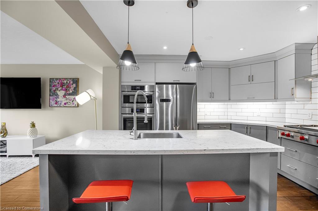 FIRE SALE RARE RAVINE-BACKING LUXURY TOWNHOME! Unrepeatable opportunity in the prestigious Doon South community! This fully renovated, move-in-ready luxury condo townhome is one of the few to back directly onto a private ravine, offering unmatched privacy, stunning year-round views, and tranquil living. Inside, you’ll find a bright, open-concept layout with modern designer finishes, premium flooring, and walls of windows bringing in natural light. The chef-inspired kitchen features custom cabinetry, quartz countertops, a massive island, and a high-end Wolf stove perfect for both everyday cooking and gourmet entertaining. The spa-like bathrooms are a true retreat, with quartz finishes, elegant vanities, and upscale fixtures. The fully finished walkout basement extends your living space and offers direct access to nature, ideal for hosting guests or enjoying quiet evenings. Location is unbeatable minutes to Hwy 401, top-rated schools, scenic trails, parks, and shopping. Perfect for commuters, professionals, families, looking for a high-demand rental. Meticulously maintained, tastefully updated, simply move in and enjoy! This is a once-in-a-lifetime find. Act now before someone else seizes it. Homes like this don’t come up often, and when they do, they SELL FAST!