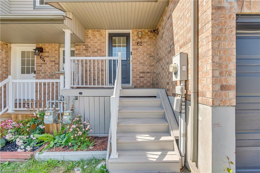 Welcome to 62 Foxglove Crescent: A Beautifully Renovated Freehold Townhome in One of Kitchener’s Most Sought-After Neighborhoods! Step into this immaculate 2-storey FREEHOLD townhouse, meaning NO condo fees, nestled in a prime family-friendly community. Recently renovated & freshly painted throughout, this move-in-ready home is a true gem. As you enter, you’re greeted by a bright & open-concept main floor boasting a thoughtfully designed layout. The freshly Renovated kitchen, 2025, featuring quartz countertops, stylish cabinetry & new stylish faucet. Adjacent to the kitchen, the dining room & sunlit living room create a seamless flow, filled with natural light & adorned with carpet-free flooring for a clean, contemporary feel. Upstairs, discover 3 generously sized bedrooms, each offering comfort, along with a freshly updated full bathroom. The primary bedroom includes a spacious closet space, making it the perfect retreat with outside views. A fully finished basement, Renovated in 2023, featuring two additional bedrooms, a modern 3-piece bathroom, and abundant storage space, offering incredible flexibility whether you need guest rooms, home offices, or extra family living space. Outside, enjoy your private, fully fenced backyard with a deck ideal for summer BBQs, morning coffee, or peaceful evening relaxation. The extended driveway easily fits two cars, adding even more convenience. This well-maintained home is packed with upgrades, including: Roof (2016); New kitchen (2025); Water softener (2024), Basement renovation (2023); Fresh paint (2025); Situated in a highly accessible location, you’re just minutes from top-tier amenities including the Sunrise Shopping Centre, The Boardwalk, Highway 7/8, 401 access, schools, trails, public transit, restaurants & parks. Everything your family needs is right at your doorstep! Whether you’re a first-time homebuyer, investor, or growing family, this house offers an unbeatable blend of space & location. Book your showing today!